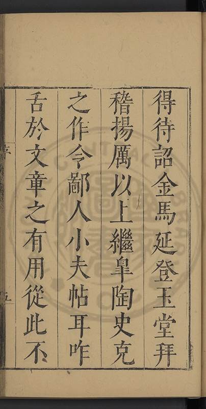 得待詔金馬延登玉堂拜稽揚厲以上繼臯陶史克之作令鄙人小夫帖耳咋舌於文章之有用從此不