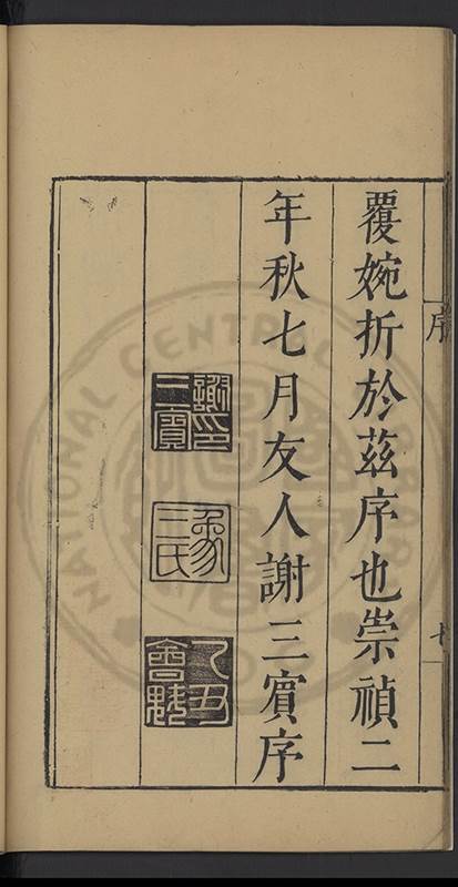 覆婉折於兹序也崇禎二年秋七月友人謝三賔序