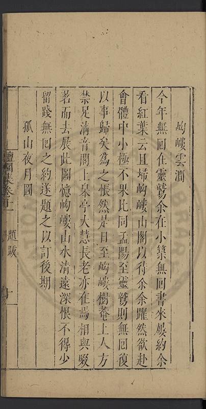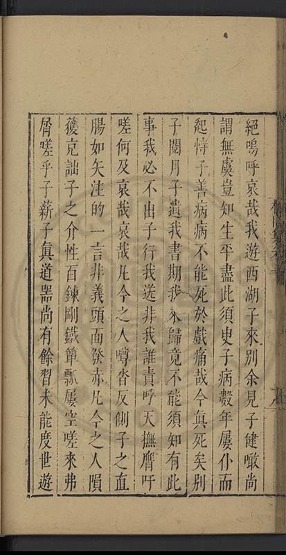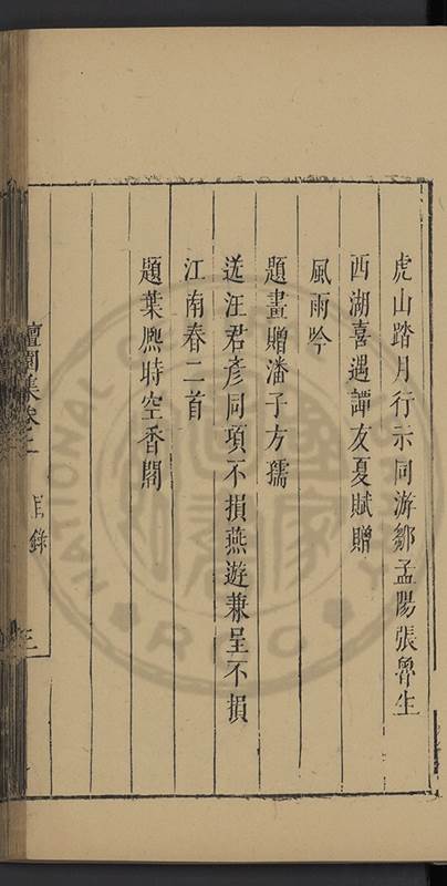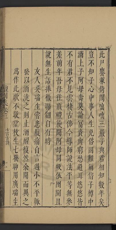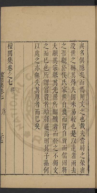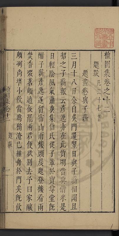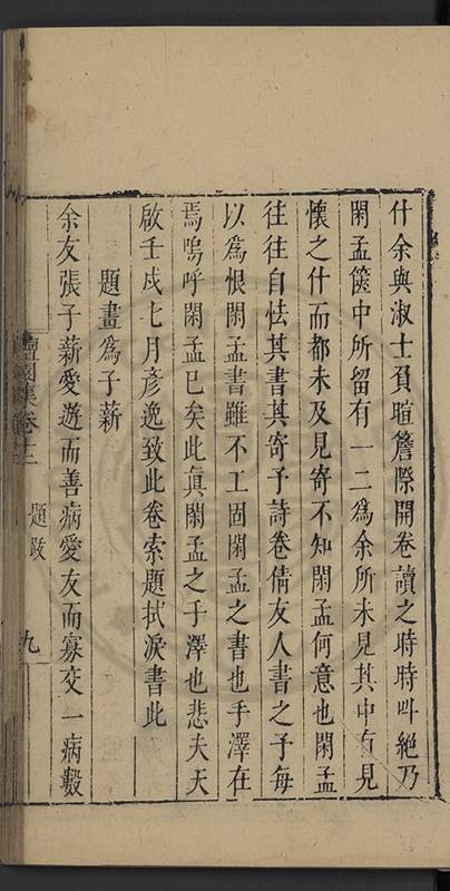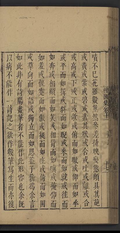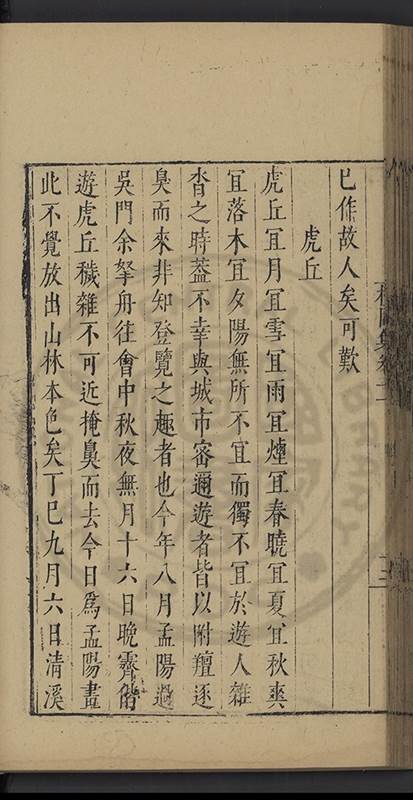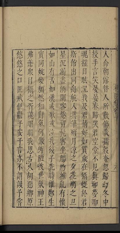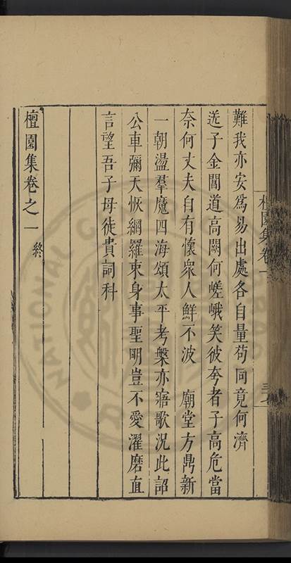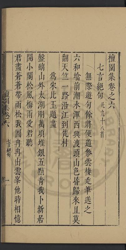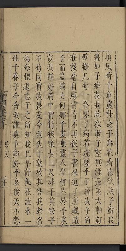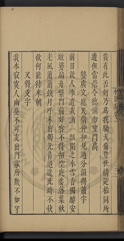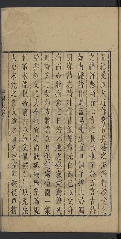 而絕愛叔父近作𡮢言長蘅之澄澹精緻受之之綿密彪炳皆七言之長城也至於五言古詩如南歸諸什則孟陽先生直口諷手抄比於淵朙靡詰之詩非僅徒鮑謝輩元白而已叔父身病而心壯病愈之日若不逃之空寂焚棄筆硯則詩文之斐灼方將與歲月俱無窮檀園一集殆非叔父之大全也宜之尚欲砥礪舉業晞覘科第未能根蒂前古承叔父通經之訓以究先太史未竟之業文章之道茫然望涯縱復覃精