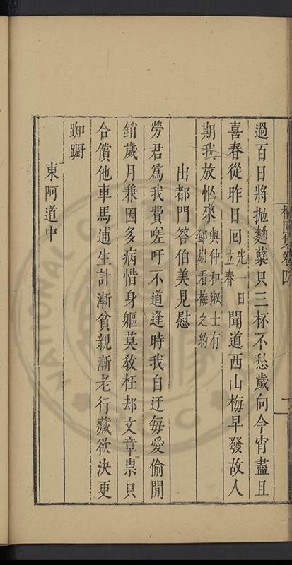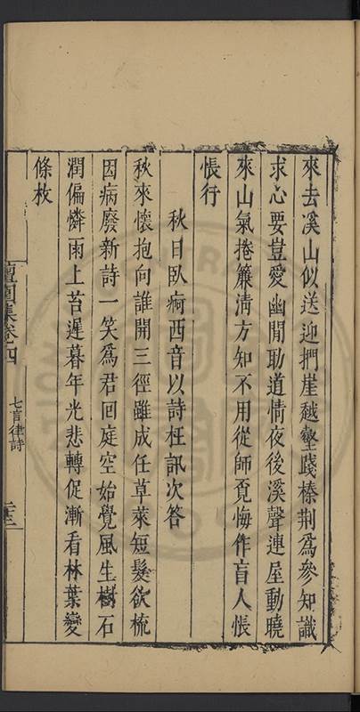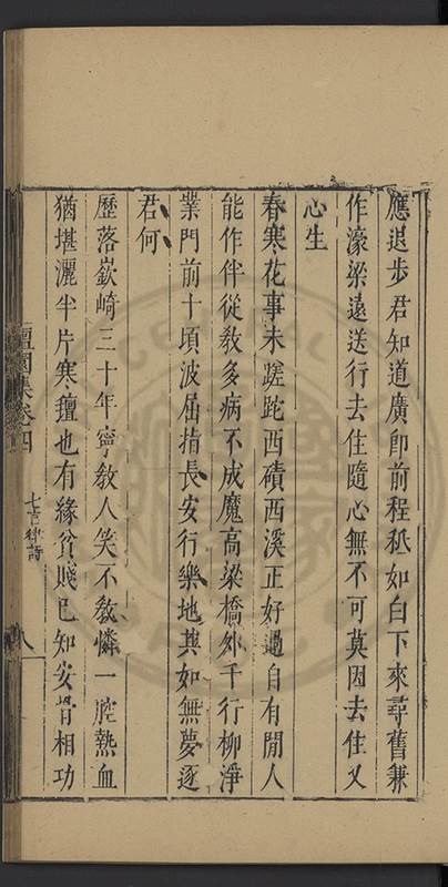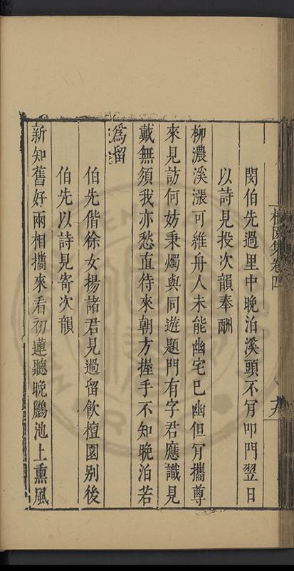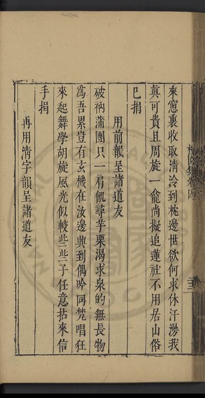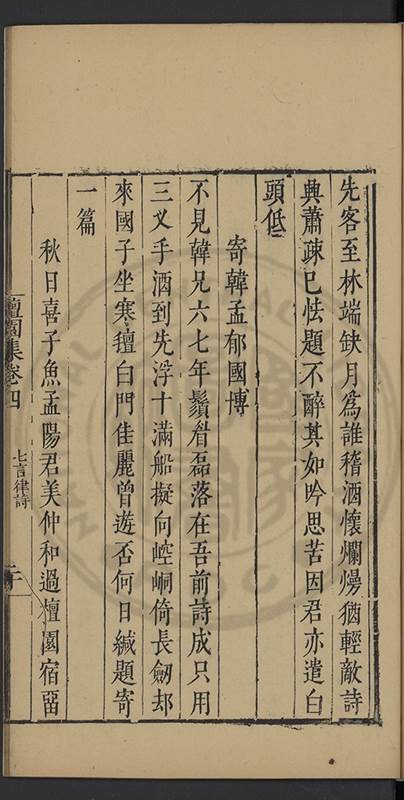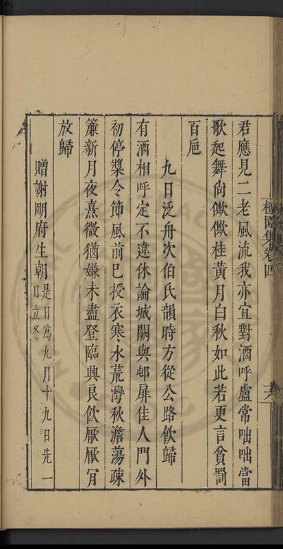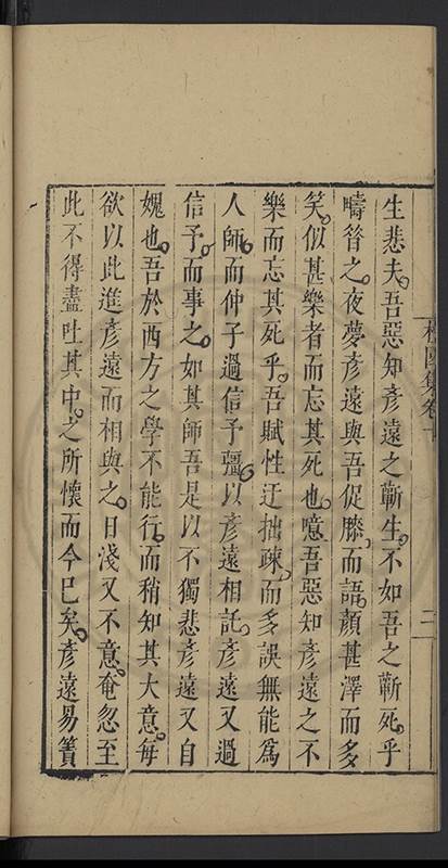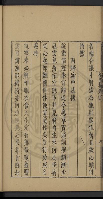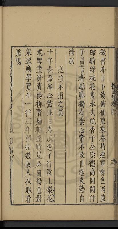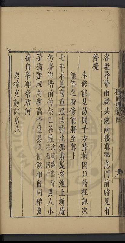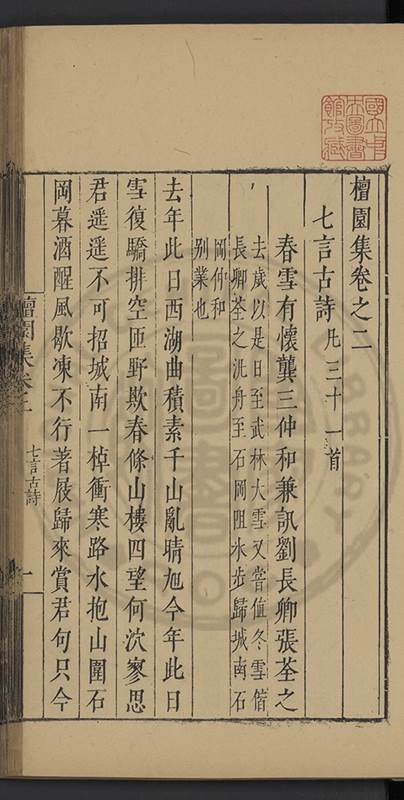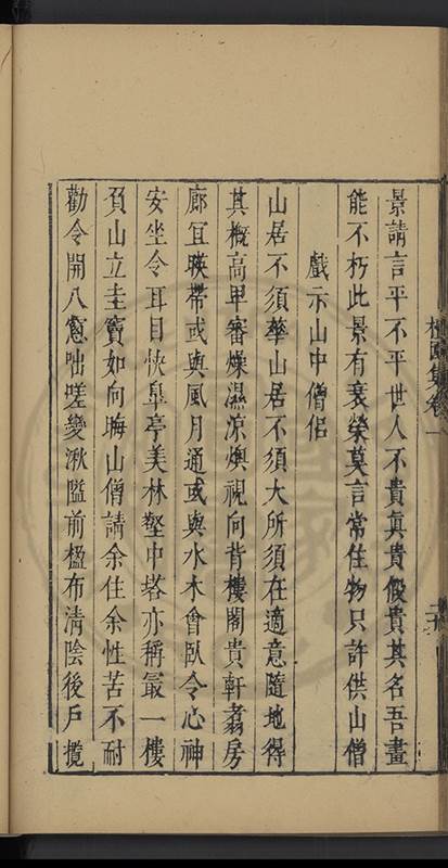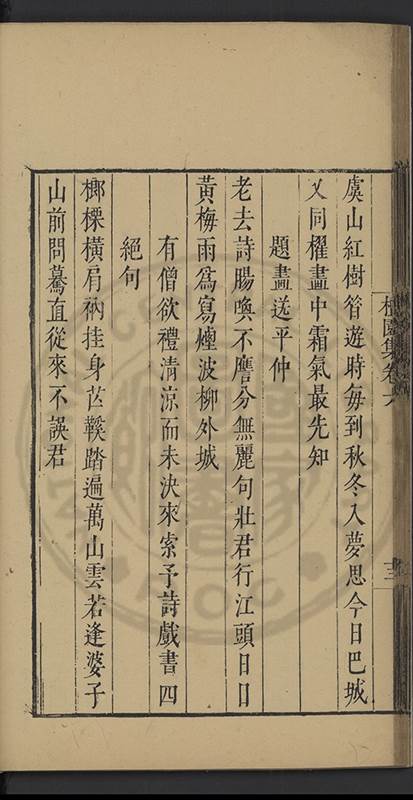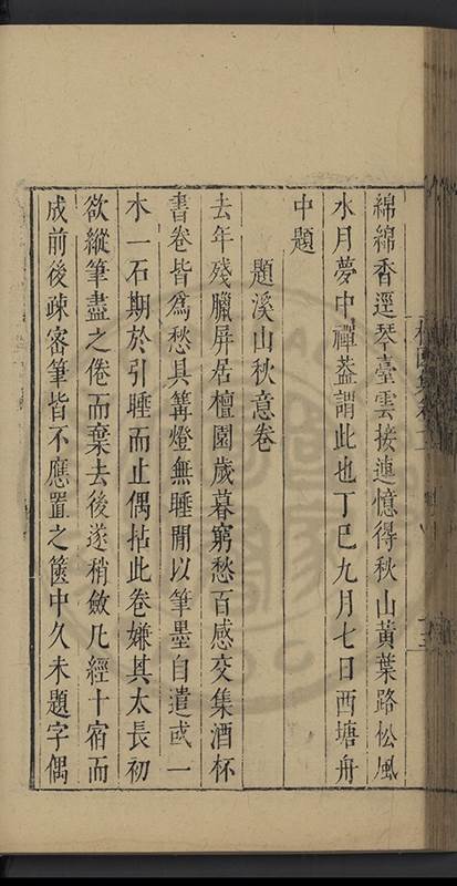 而絕愛叔父近作𡮢言長蘅之澄澹精緻受之之綿密彪炳皆七言之長城也至於五言古詩如南歸諸什則孟陽先生直口諷手抄比於淵朙靡詰之詩非僅徒鮑謝輩元白而已叔父身病而心壯病愈之日若不逃之空寂焚棄筆硯則詩文之斐灼方將與歲月俱無窮檀園一集殆非叔父之大全也宜之尚欲砥礪舉業晞覘科第未能根蒂前古承叔父通經之訓以究先太史未竟之業文章之道茫然望涯縱復覃精