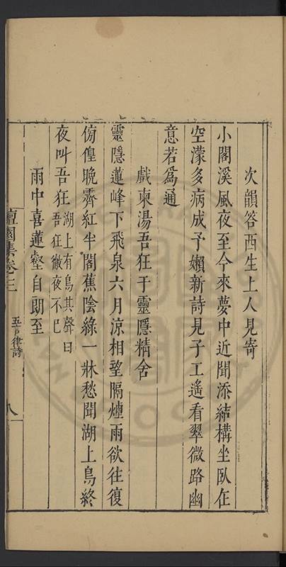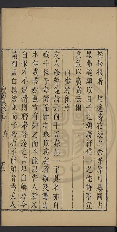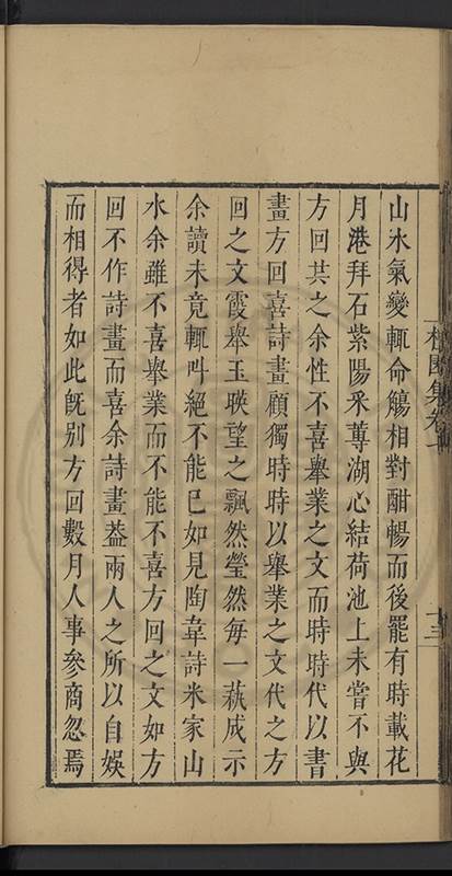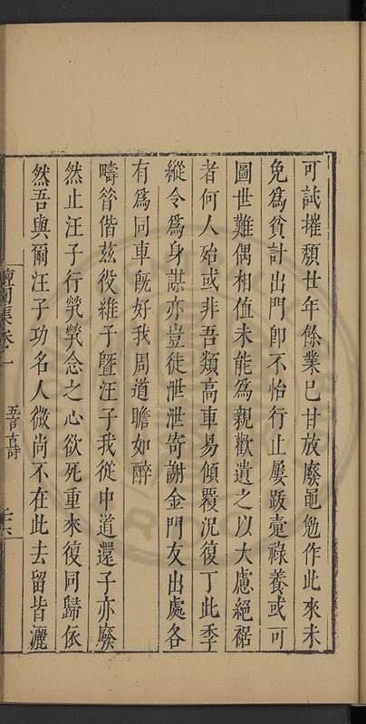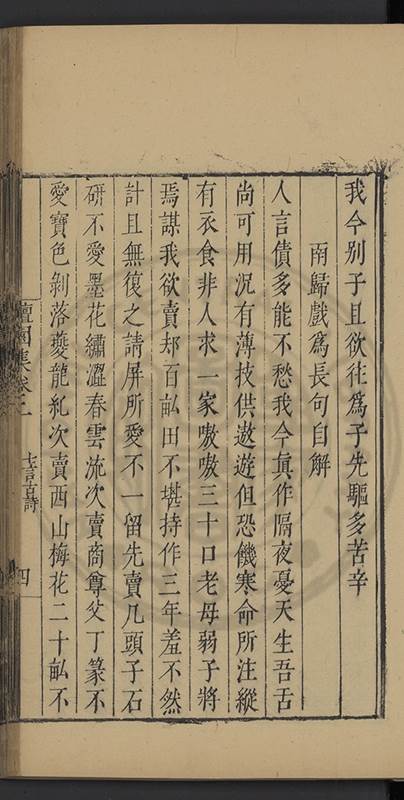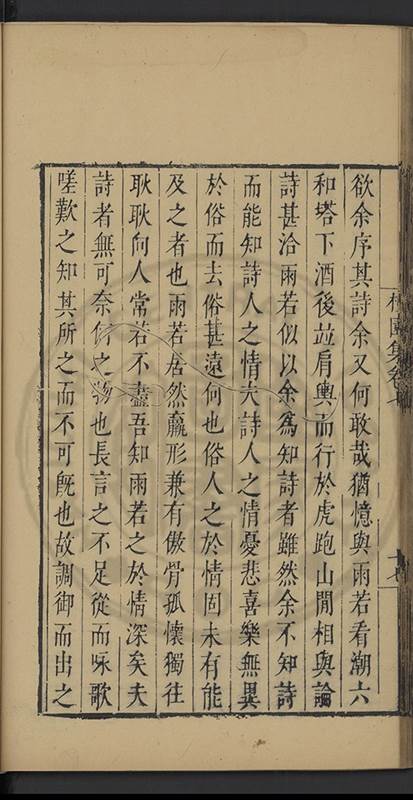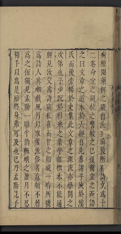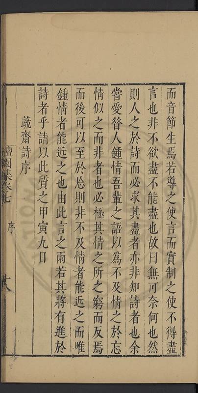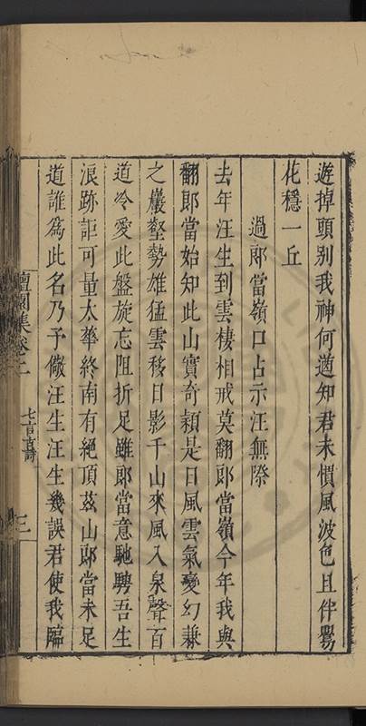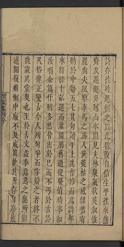 詩亦徃徃過稱之以此稍復自信生平徃來燕齊及遨遊吳越山水閒見夫林泉氣狀英淑恠麗與夫風塵車馬之跡人世菀枯之感雜然有動於中每五七其句讀平上其音節而為詩年來將母十畆退而灌園朋舊過從發憤時事和汝唱余篇什稍多然皆出於已而不丐於古於凡格律正變古今人所句爭而字辯之者終不能窺其堂奧也至於古文益率意為之無所祖述閒復癖懶中廢不及成篇故其所存自序述