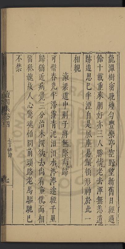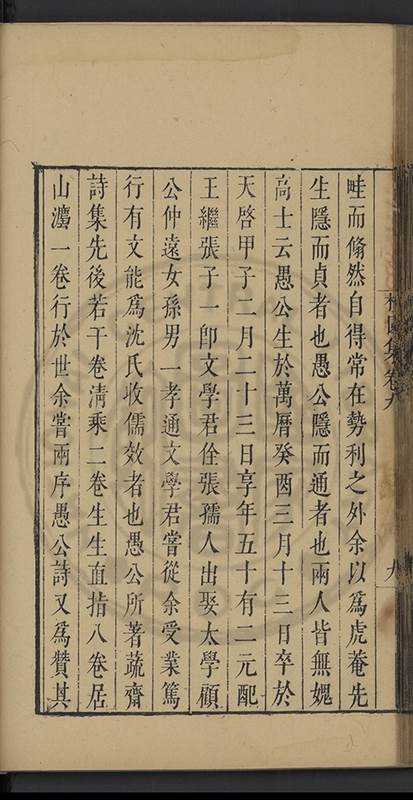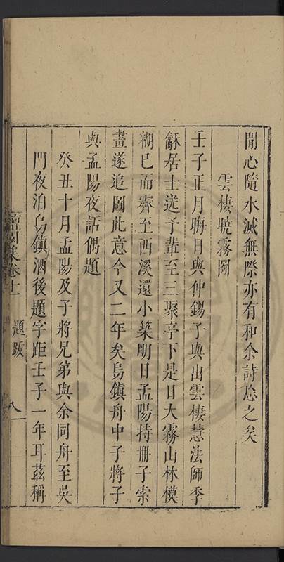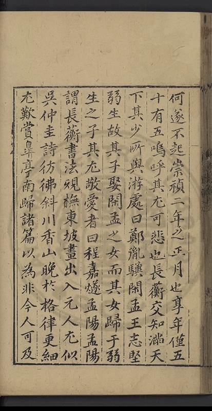 何遂不起崇禎二年之正月也享年僅五十有五嗚呼其尢可悲也長蘅交知滿天下其少所與游處曰鄭胤驥閑孟王志堅弱生故其子娶閑孟之女而其女歸于弱生之子其尢敬愛者曰程嘉燧孟陽孟陽謂長蘅書法硯橅東坡畫出入元人尢似吳仲圭詩彷佛斜川香山晚扵格律更細尢歎賞皐亭南歸諸篇以為非今人可及
