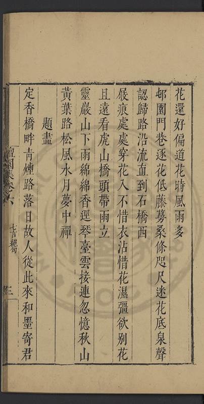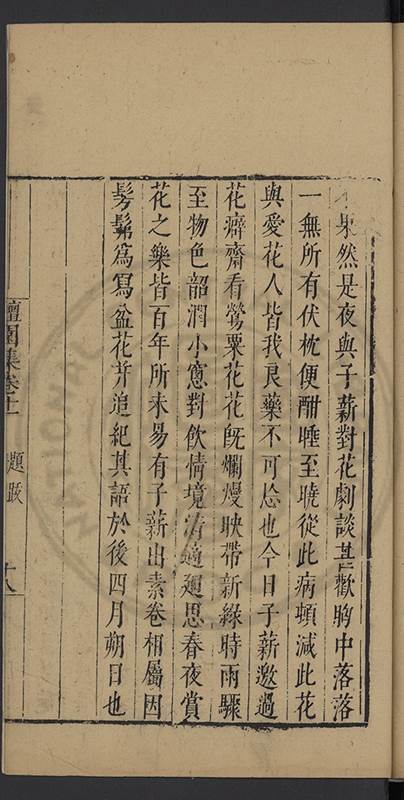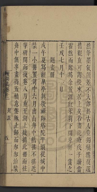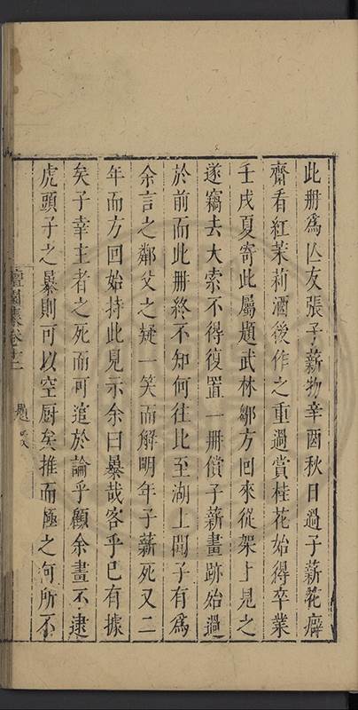 此冊為亾友張子薪物辛酉秋日過子薪花癖齋看紅茉莉酒後作之重過賞桂花始得卒業壬戌夏寄此屬題武林鄒方囘來從架上見之遂竊去大索不得復置一冊償子薪畫跡殆過於前而此冊終不知何往比至湖上聞子有為余言之鄰父之疑一笑而解朙年子薪死又二年而方囘始持此見示余曰暴哉客乎已有據矣子幸主者之死而可逭於論乎顧余畫不逮虎頭子之暴則可以空厨矣推而極之何所不