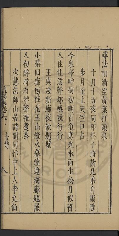 靈鷲看紅葉期沈無囘不至同吳伯霖鄒孟陽方囘嚴印持聞子與小飲冷泉亭解后邵古菴江邦申分韵得山字