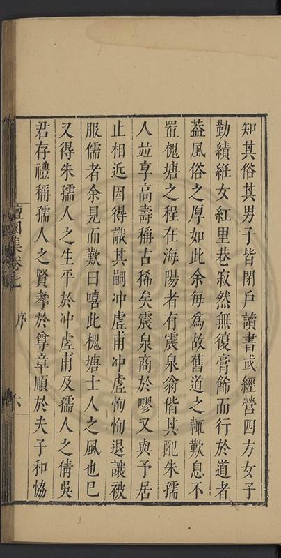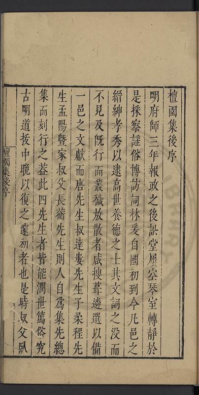 朙府師三年報政之後訟堂屢空琴室轉靜於是採察謠俗博訪詞林爰自國初到今凡邑之縉紳孝秀以逮高世養德之士其文詞之沒而不見及既行而叢穢放散者咸搜葺遴選以備一邑之文獻而唐先生叔達婁先生子柔程先生孟陽暨家叔父長蘅先生則人自為集先總集而刻行之葢此四先生者皆能潤世篤俗究古朙道㧞中晚以復之邃初者也是時叔父臥