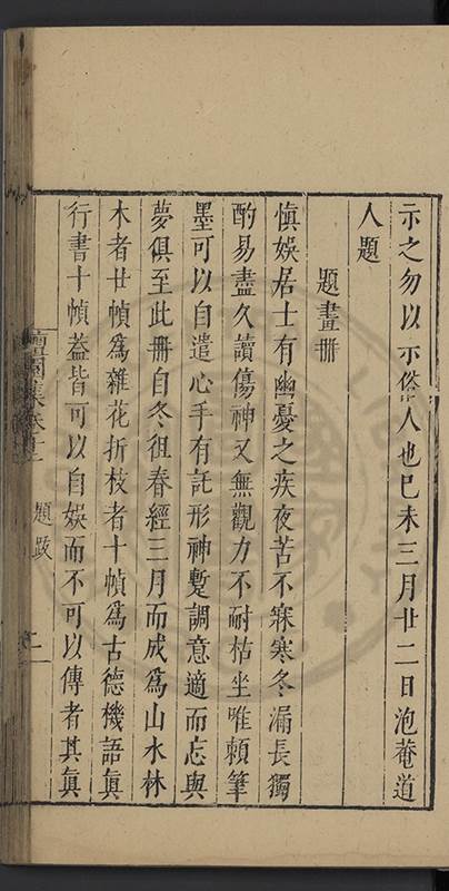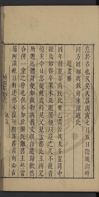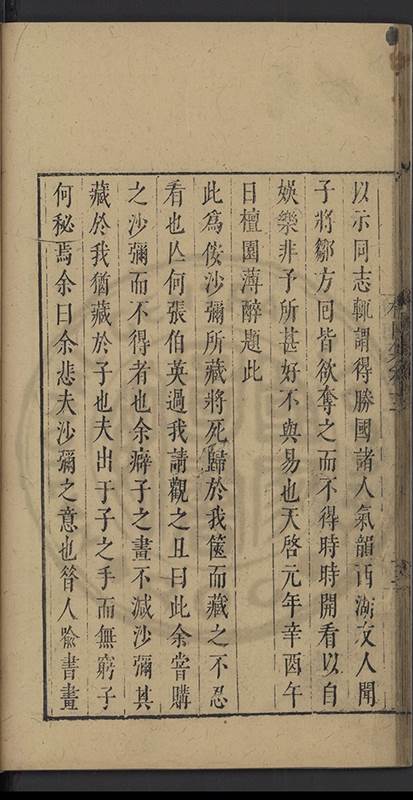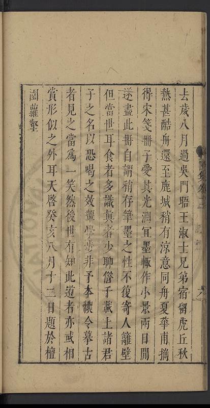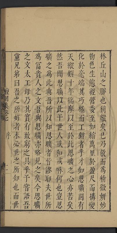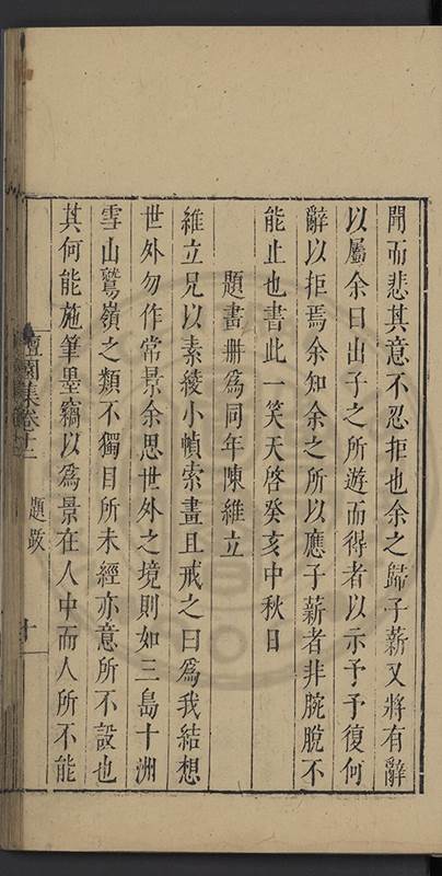竭慮亦何能繪畫日月之萬一雖然此叔父意也其何敢辭秉筆硯縷亦𦖂以伸叔父之意云爾崇禎二年歲已已元夕後五日猶子宜之僅序