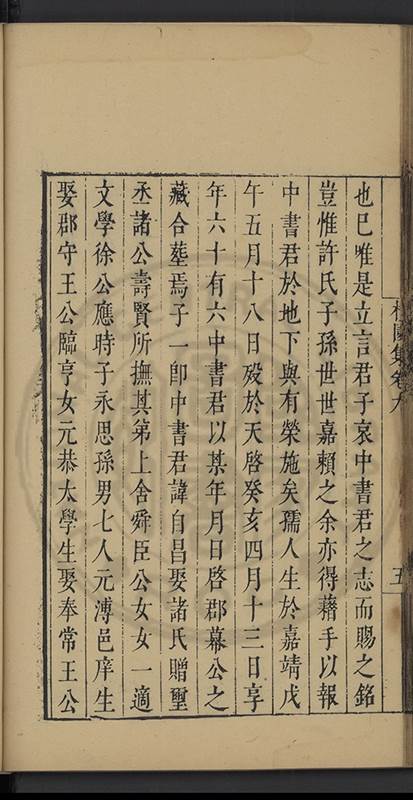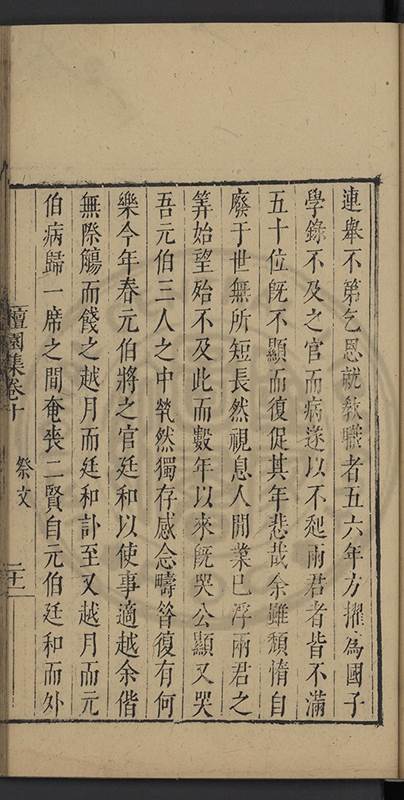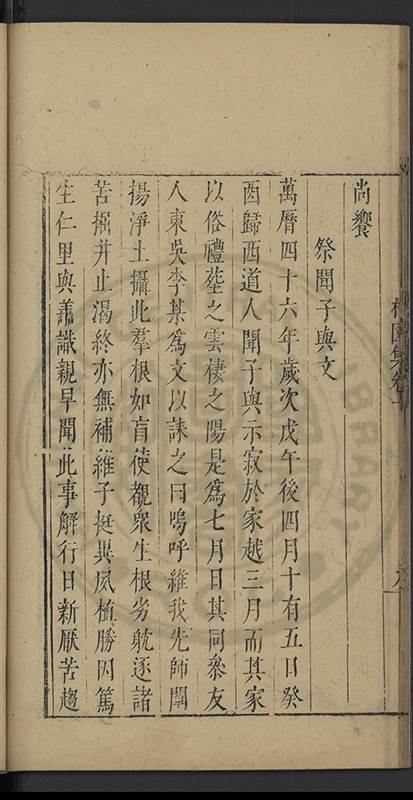 賢 治亂之際一飯未𡮢忘君也逆 擅栢 獄屢與三吳同志如繆當時周季矦顧伯欽輩皆掠立瘦死而起東文起孟長受之韶賔輩亦相繼削籍無一人立朝者叔父慨然傷君子之道消而又懼夫宗社之危若累卯然而不能須臾也憂天憫人之思徃徃見之於歌詠乙丑公車之役不樂而罷以高㝠自期偶從客坐閒䛕璫之言必裂眦扼腕若聞父母之仇憂憤所蘊遂發錮疾嘔血數升伏枕經歲葢其至徃所鐘