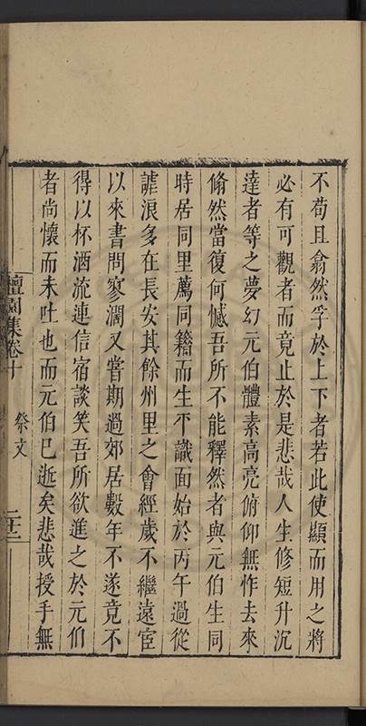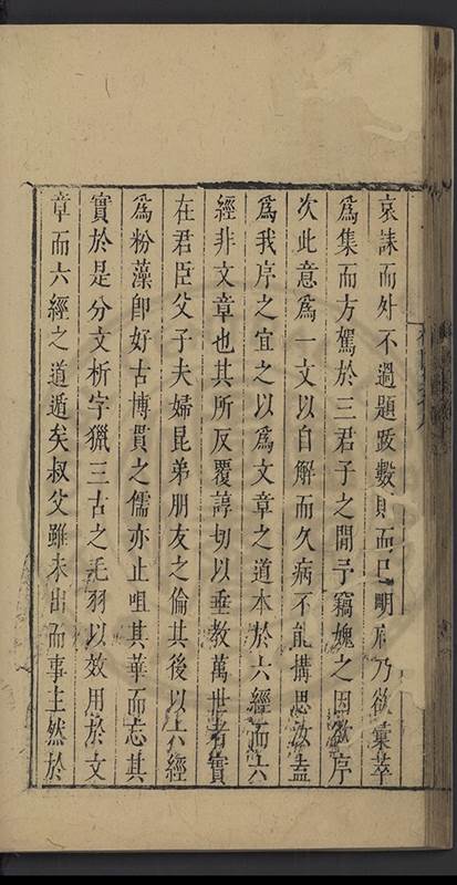 哀誄而外不過題跋數剛而已朙府乃欲彚萃為集而方駕於三君子之閒予竊媿之因 序次此意為一文以自解而久病不能捕思汝盍為我序之宜之以為文章之道本於六經而六經非文章也其所反覆諄切以垂教萬世者實在君臣父子夫婦昆弟朋友之倫其後以六經為粉藻即好古博貫之儒亦止咀其華而忘其實於是分文析字獵三古之毛羽以效用於文章而六經之道遁矣叔父雖未出而事主然於