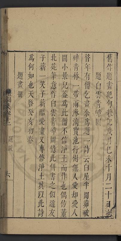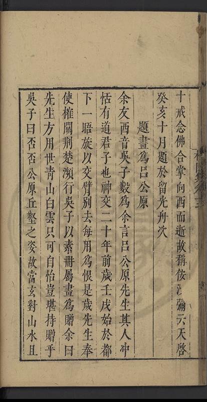 十戒念佛合掌向西而逝故稱侒沙彌云天啓癸亥十月題於留光舟次
