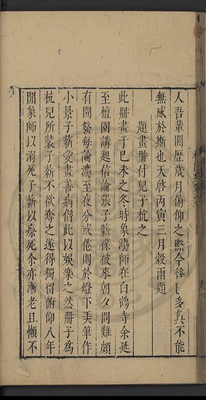 人吾輩閲歷歲月俯仰之際今㫺已多眞不能無感於斯也天啟丙寅三月穀雨題