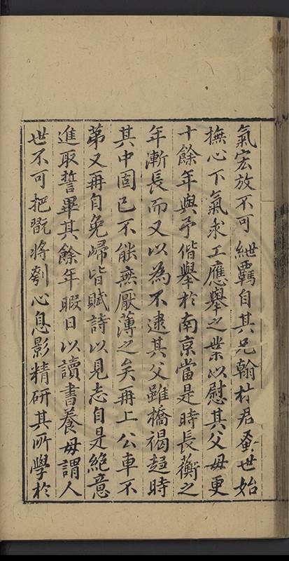 氣宏放不可绁覊自其兄翰材君蚤世始撫心下氣求工應舉之業以慰其父母更十餘年與予偕舉扵南京當是時長蘅之年漸長而又以為不逮其父雖橋褐超時其中固已不能無厭薄之矣再上公車不苐又再自免㱕皆賦詩以見志自是絕意進取誓畢其餘年暇日以讀書養母謂人世不可把翫將刳心息影精研其所學扵