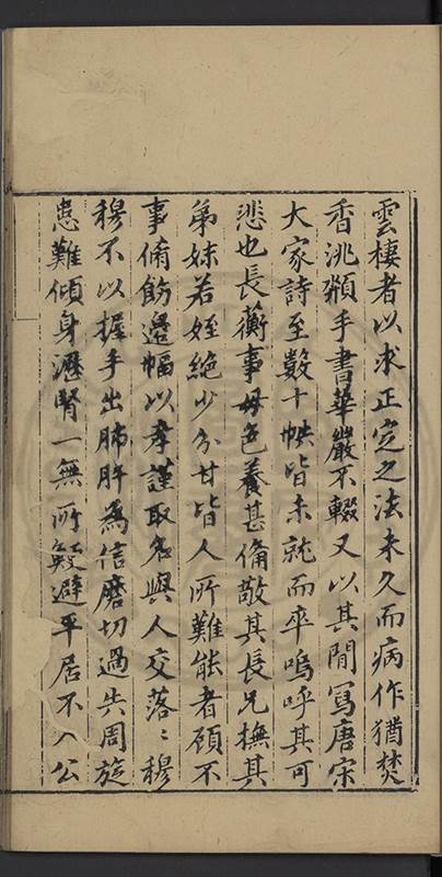 雲棲者以求正 之法未久而病作猶焚香洮頮手書華巖不輟又以其閒冩唐宋大家詩至數十帙皆未就而卒嗚呼其可悲也長蘅事毋色養甚備敬其長兄撫其弟妹𠰥姪絕少分甘皆人所難能者碩不輸倄飭透幅以孝謹派名與人交落落穆穆不以握手出肺肝為信磨切過共周旋患難傾身瀝腎一無所 避平居不 公