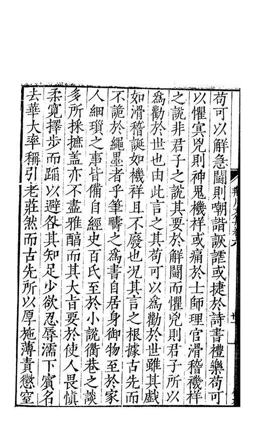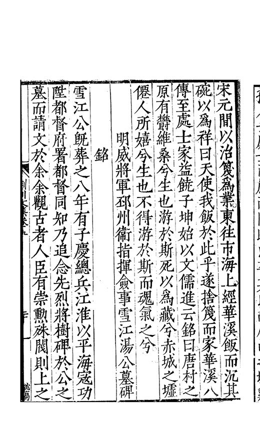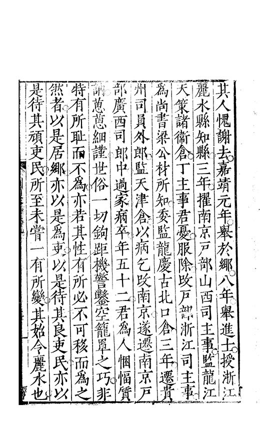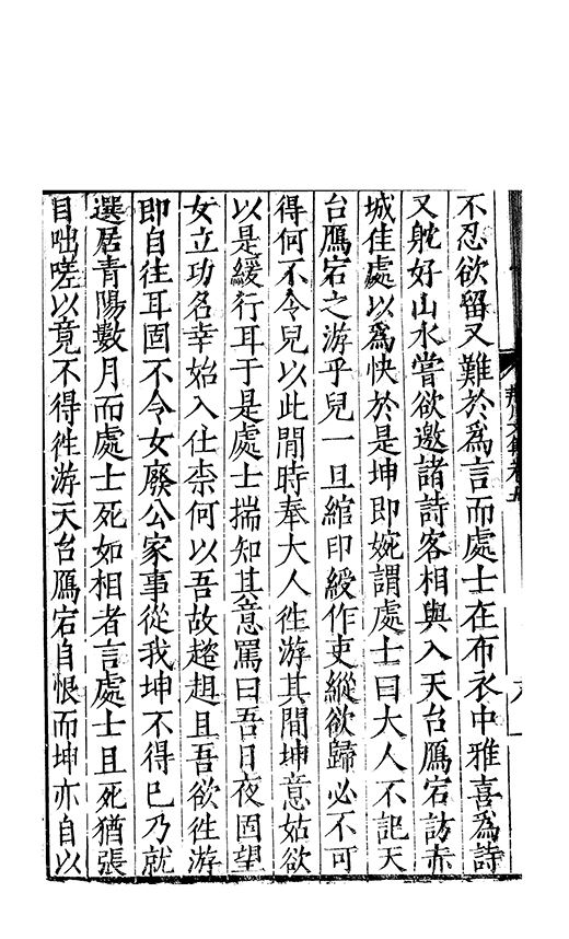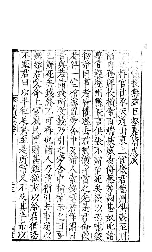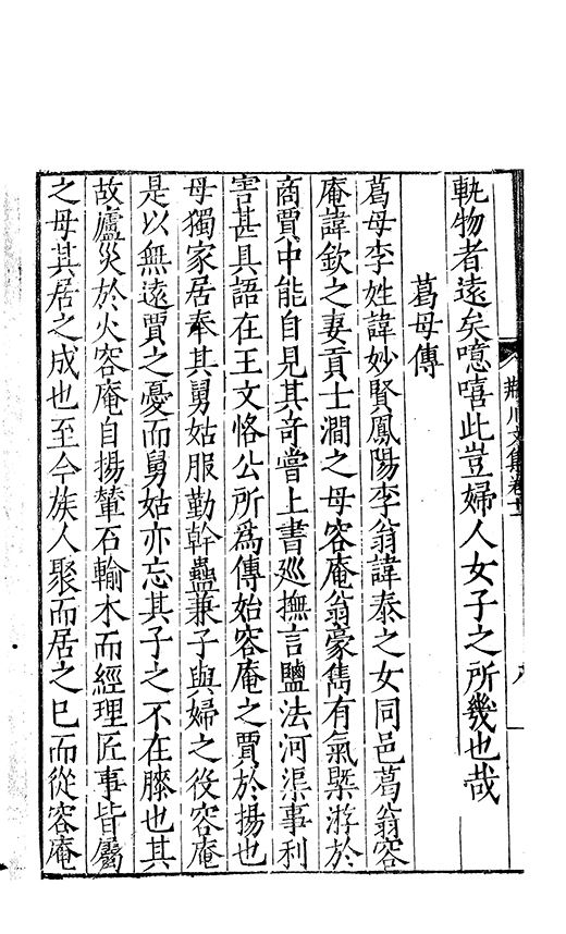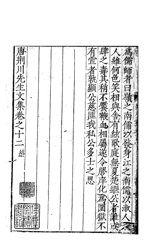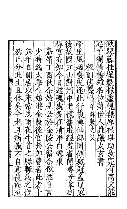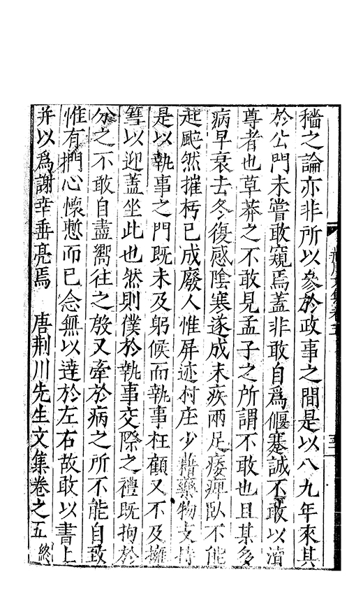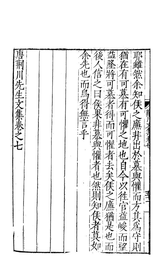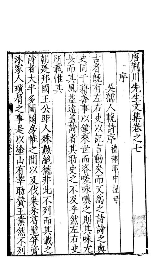不治經然不輟文墨其間時則作爲草書遂窮極竒變闔闢閃縮上逼懷素詩歌有唐人風骨是時翁伯兄既以文雄於當世而季弟竹窓翁善畫尤以草蟲名一時言文章字畫歸唐氏云伯兄爲給事中值敬皇帝在位言官甚見親幸有權給事公素小心慎事屢爲書與翁大要教之謙下母輙入州縣門即入必傴僂不得騎閭巷徃來戢族屬僮奴不得閙街市中翁遵其說而行之是以唐氏雖世宦然未嘗有子弟爲鄉里所苦者後三十餘年嘉靖某甲子翁年七十餘郡太守請與蜡賔後若干年 詔賜天下老人