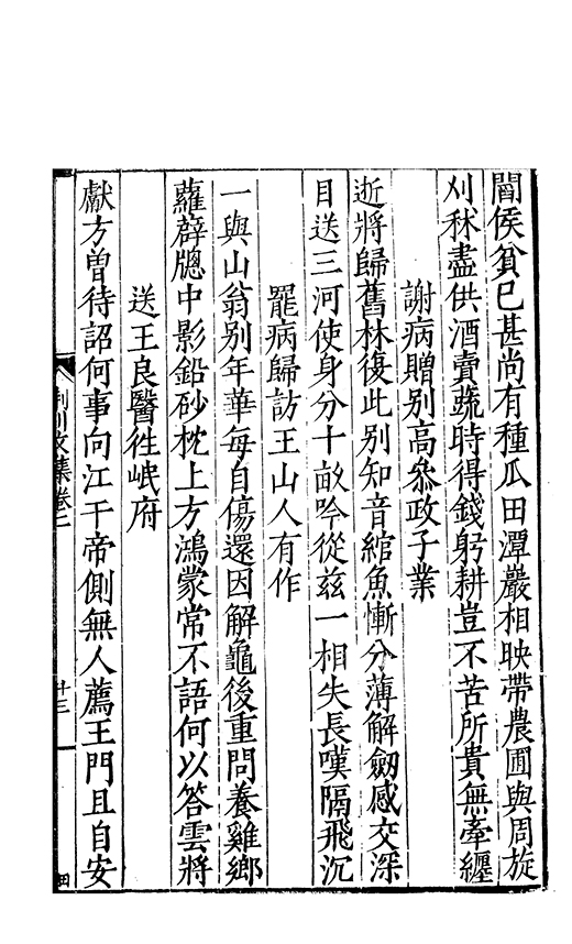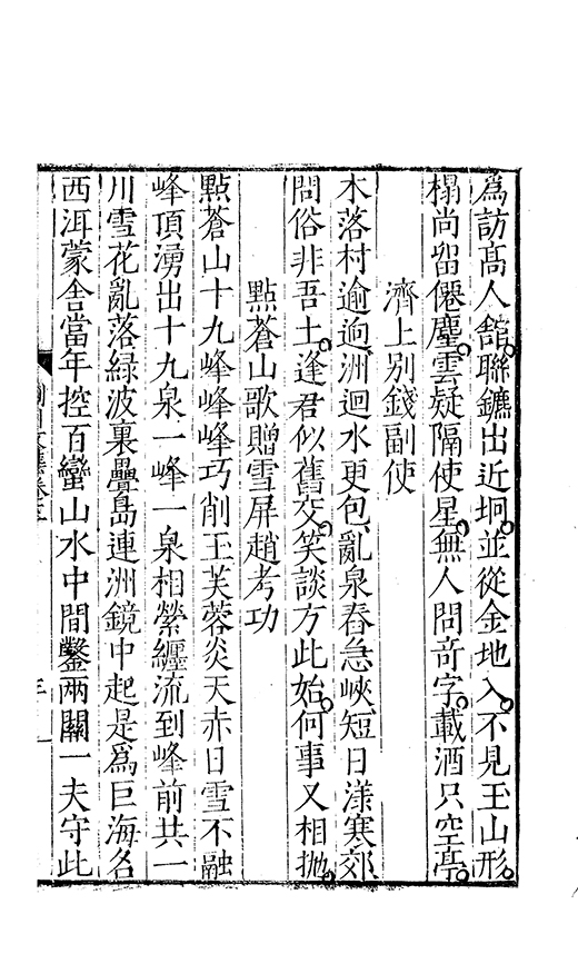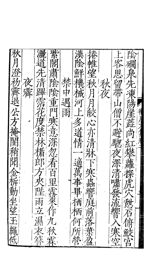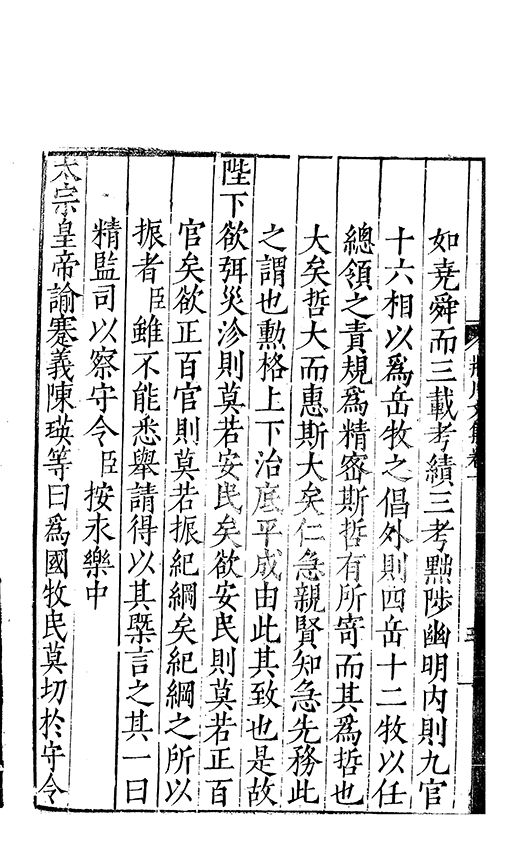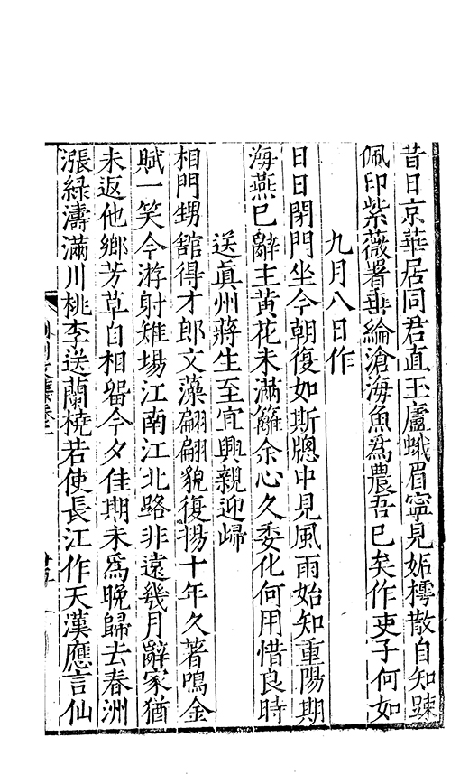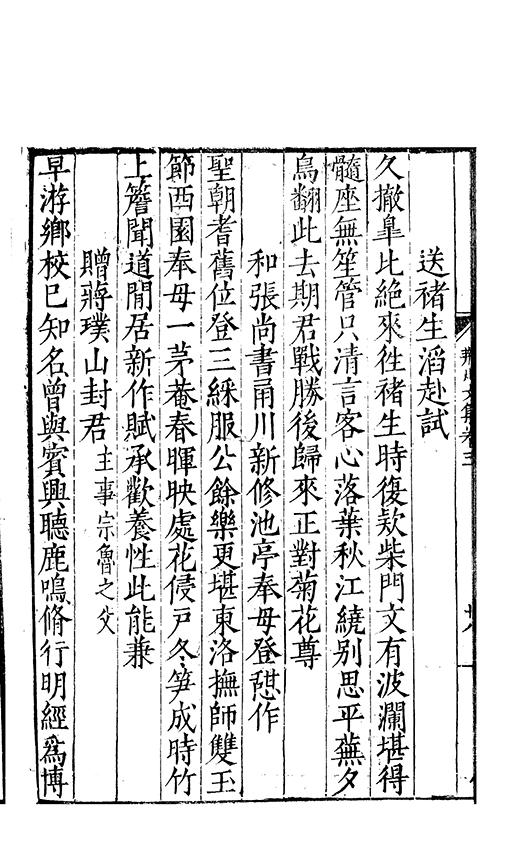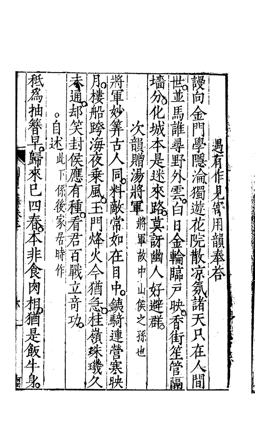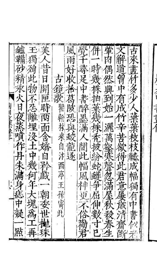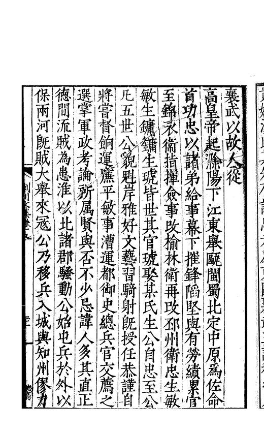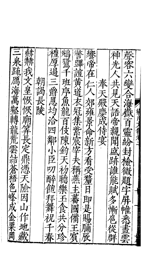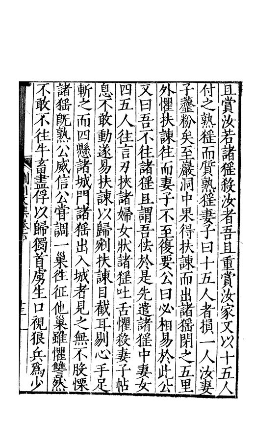 不治經然不輟文墨其間時則作爲草書遂窮極竒變闔闢閃縮上逼懷素詩歌有唐人風骨是時翁伯兄既以文雄於當世而季弟竹窓翁善畫尤以草蟲名一時言文章字畫歸唐氏云伯兄爲給事中值敬皇帝在位言官甚見親幸有權給事公素小心慎事屢爲書與翁大要教之謙下母輙入州縣門即入必傴僂不得騎閭巷徃來戢族屬僮奴不得閙街市中翁遵其說而行之是以唐氏雖世宦然未嘗有子弟爲鄉里所苦者後三十餘年嘉靖某甲子翁年七十餘郡太守請與蜡賔後若干年 詔賜天下老人