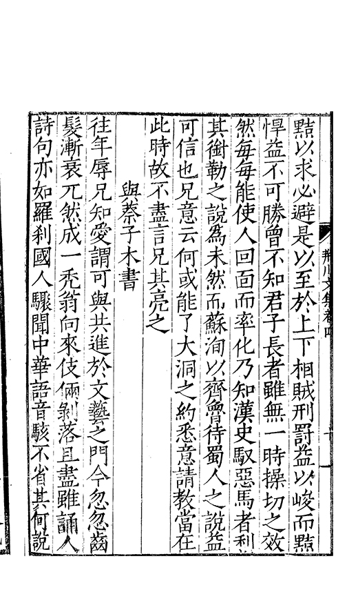 文人正不少以爲僕盖過二千年吳下詞人而直接札游之文統旣使兄爲私於所好又若使僕與人争名争先然者非兄之所以愛僕也使兄今日爲僕作序則亦宜道兄與僕昔以文相切磋以才弱志隳幾成而罷之意句句道却實事庶使兄爲不誣而吾亦可以不愧耳至於兄之雄文則千百年自有定價倘吾文稍進乃敢爲兄作序今且不欲羔袖於狐裘也刻板事旣已力止兄序遂亦寳藏之未敢示人也不具