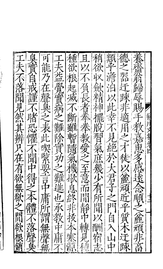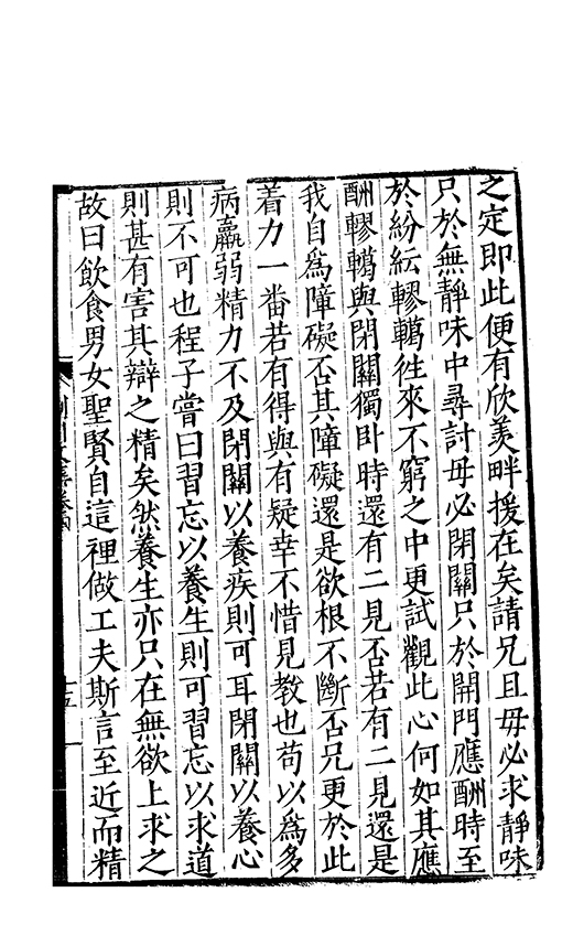 道者絶嘆其難也好仁者無以尚之此眞消息也終日如愚終日忘食此眞工夫也無以尚之則有一物可尚便不是此物矣忘食則於閒事有不暇者矣如愚則於才技有不使者矣孔顔一生工夫所以完養收攝此寳藏也僕近稍悟得此意而深恨年已過時雖知其無成然本是自家寳藏不得不有冀於萬一也是以痛爲掃抹閒事收斂精神之計則不得不簡于應接欲簡于應接不得不托於病不可支以謝客是以人知吾之病甚而不知吾之别有意也此意更不敢露於人以兄念我太厚憂我太深故特披露之