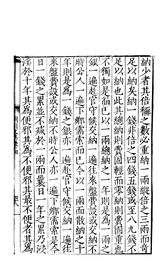 法之一定不可易者也背徑求矢矢背求徑諸法消息管於是矣至於徑積求矢一法古法以倍截積自乗為實四因截積為上廉四因直徑為下廉五為負隅與矢相乗以减下廉而以上下廉與矢除實今立一法但以截積自乗為實而遂以截積為上廉直徑為下廉每一寸矢帶二分五釐二寸矢則帶五分四分而增其一以减徑其倍積四因之法悉去不用頗為簡捷盖徑積求矢凖於矢徑之差矢徑差者矢徑互為升降也矢一寸則該减徑一寸二分五釐矢二寸則該减徑二寸五分而矢徑之差起於積數之不
