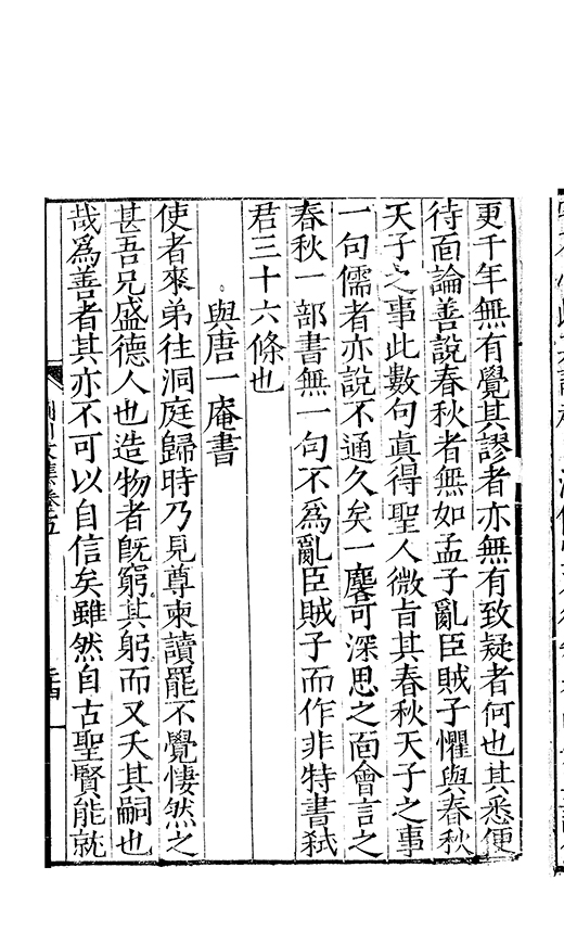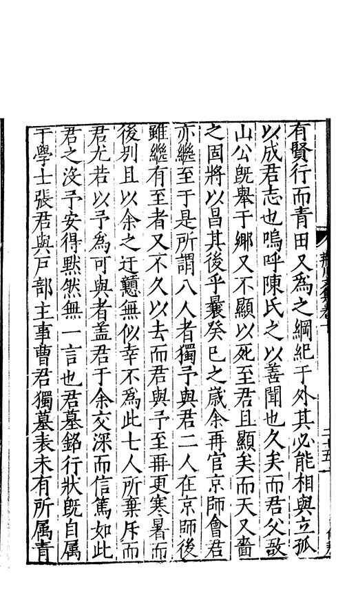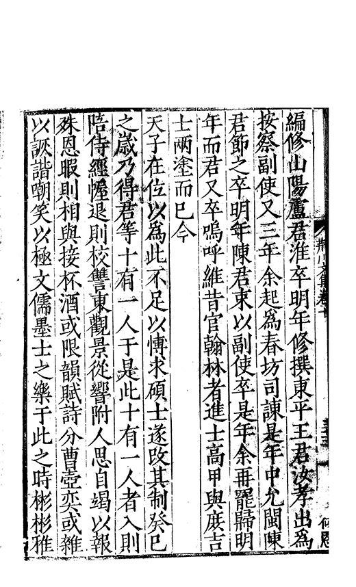 而及與之為友又得一人焉毗陵唐應徳也君扵學盖所謂得其精華其扵言可謂有文而必行扵逺者也其文具在學者苟讀焉而思思焉而有以得之則知其心之所通扵季札孰為淺深言之所成扵子游孰為先後有不可得而辨者矣君仕為翰林編修復為