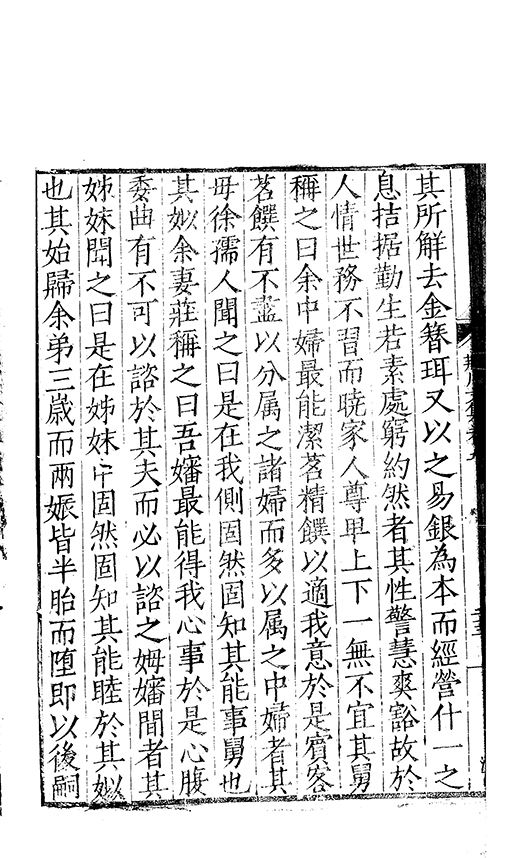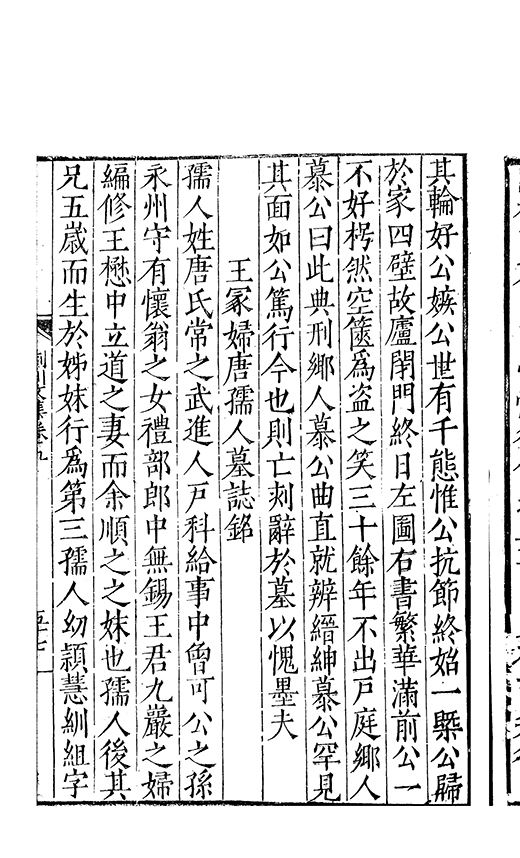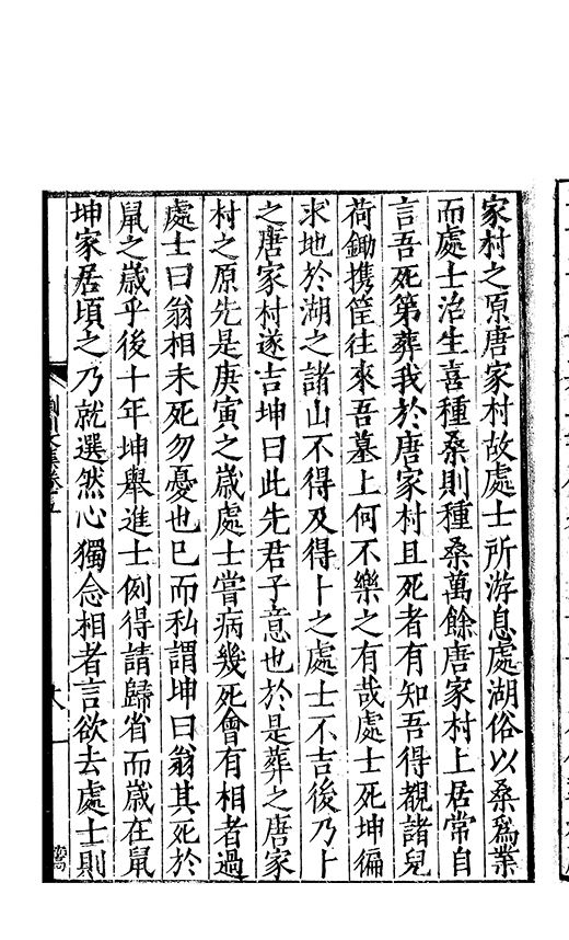 月樓唐翁武進人也諱某字某月樓其號大父封寺副諱某者生五子仲子復爲大理寺副後守平樂有宦績載在國志封寺副之少子贈給事中諱某號友蘭翁生四子長子爲給事中翁其第三子翁貌魁岸爲人倜儻負氣嘗從伯兄給事公指受章句能渉獵記誦然家故産薄而友蘭翁又病癱臥米鹽毉藥婚嫁百費叢於伯兄伯兄又方日夜治經史聚徒而教之其勢不相給也翁以故廢其學而營於家翁雖已