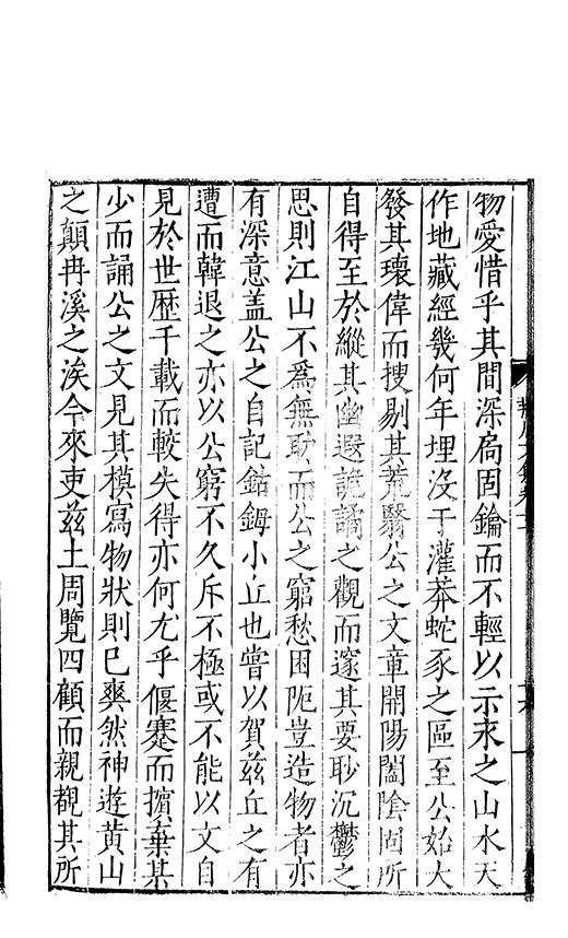 明開霽則河水増高四五尺矣余與禇生泛小舠如陳渡臨流歌嘯渺然有千里江湖之思因詠秦風蒹葭三章則宛如目前風景而所謂伊人者猶庶幾見之且秦時風俗不雄心於戈矛戰闘則癢技於獫歇射獵至其聲利所驅雖豪傑亦且側足於寺人媚子之間方以爲榮而不知愧其義士亦且沉酣豢養與君爲殉而不可贖盖靡然矜俠趨勢之甚矣而乃有遺世獨立澹乎埃□之外若豈所謂一國之人皆若狂而此其獨醒者歟抑亦以秦之不足與而優游肥遁若後來鑿坏羊裘之徒者在當時固已有人歟余