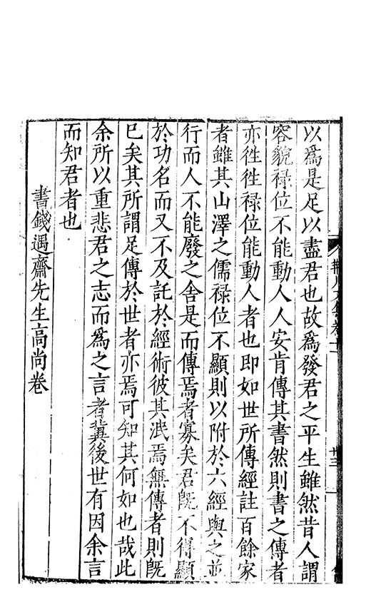 獨惜其風可聞而姓名不著不得與鑿坏羊裘之徒並列隱逸傳然鑿坏羊裘之徒以其身而逃之蒹葭伊人者乃并其姓名而逃之此又其所以爲至也噫嘻士固有不慕乎當世之榮而亦何心於後世之名也哉因慨然爲之一笑遂書以示褚生