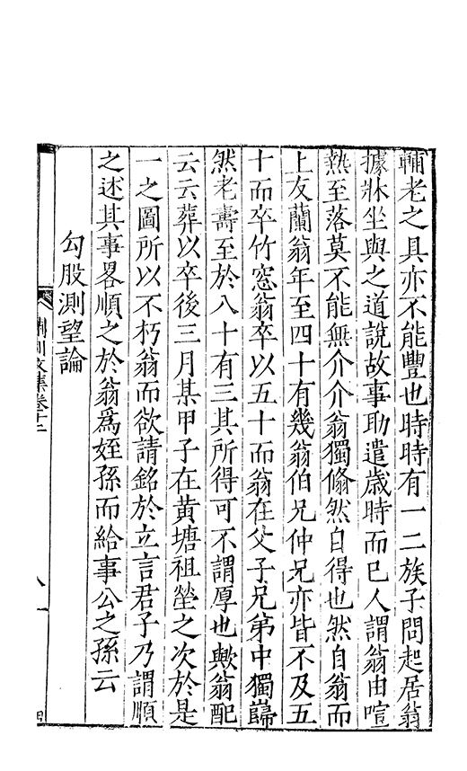 輔老之具亦不能豐也時時有一二族子問起居翁據牀坐與之道說故事助遣歳時而已人謂翁由喧熱至落莫不能無介介翁獨翛然自得也然自翁而上友蘭翁年至四十有幾翁伯兄仲兄亦皆不及五十而卒竹窓翁卒以五十而翁在父子兄弟中獨巋然老壽至於八十有三其所得可不謂厚也歟翁配云云葬以卒後三月某甲子在黄塘祖塋之次於是一之圖所以不朽翁而欲請銘於立言君子乃謂順之述其事畧順之於翁爲姪孫而給事公之孫云