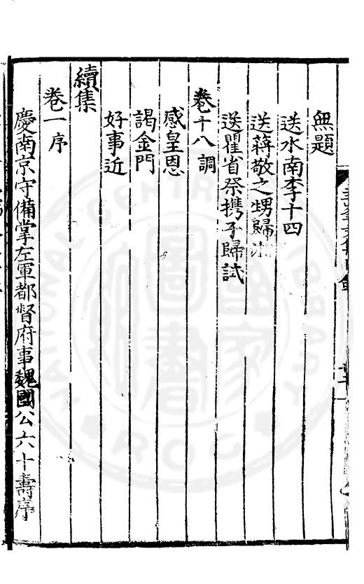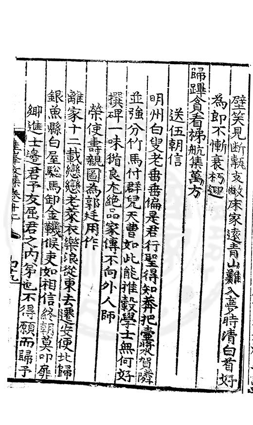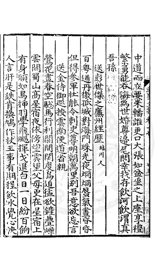 老於離别倍傷神珍重單車赴召身喜見王師□赤幟免逢黎庻逐黄巾重縻好爵周班舊却厭刑書鄭鑄新瀛海東邉幾隣竝依然相迓笑公貧