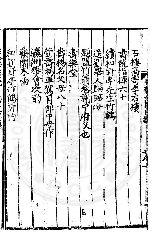 三月鶯華江不寒歸船如馬坐來安眼觀城郭人民舊心覺形骸禮數寛翁試抱孫忘老去飲初留令喜盃乾羹墻爼豆常常見自是他年易作官