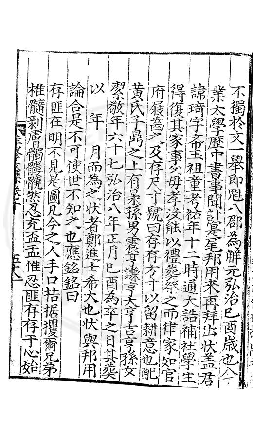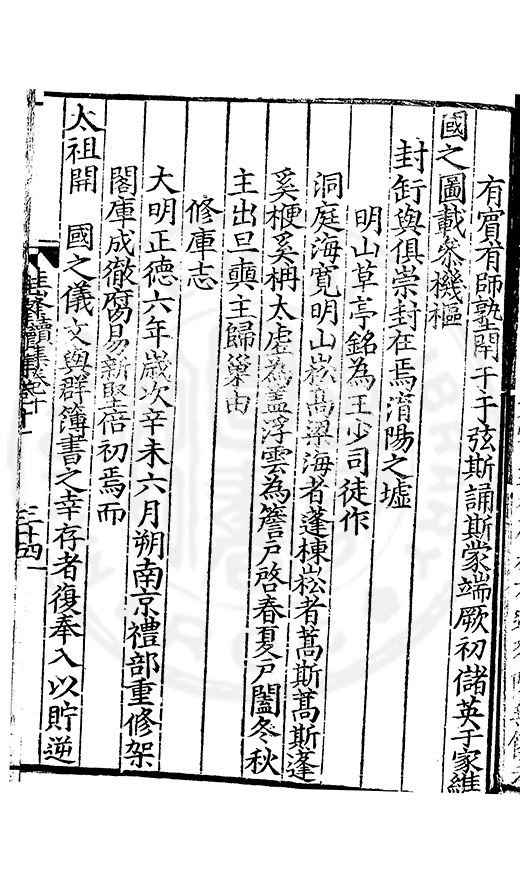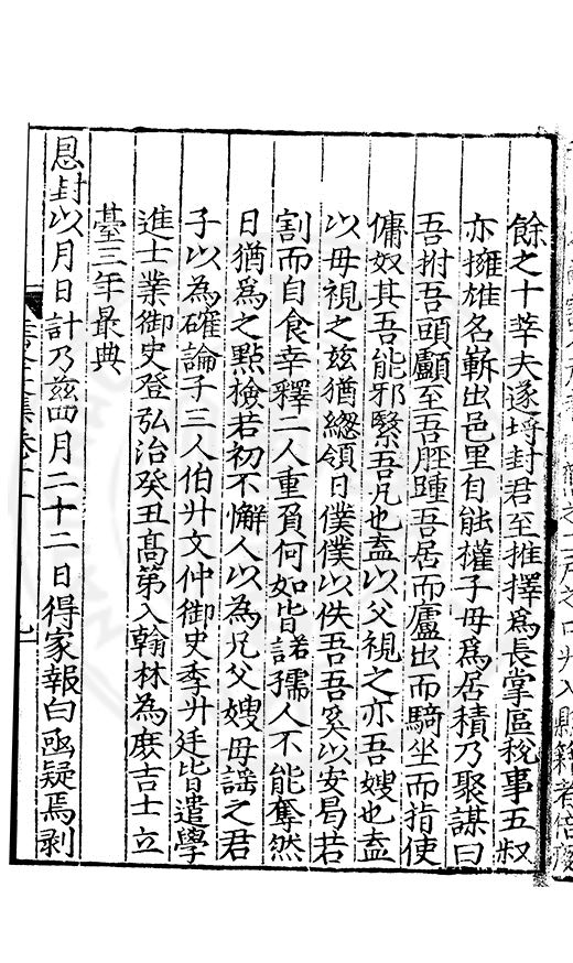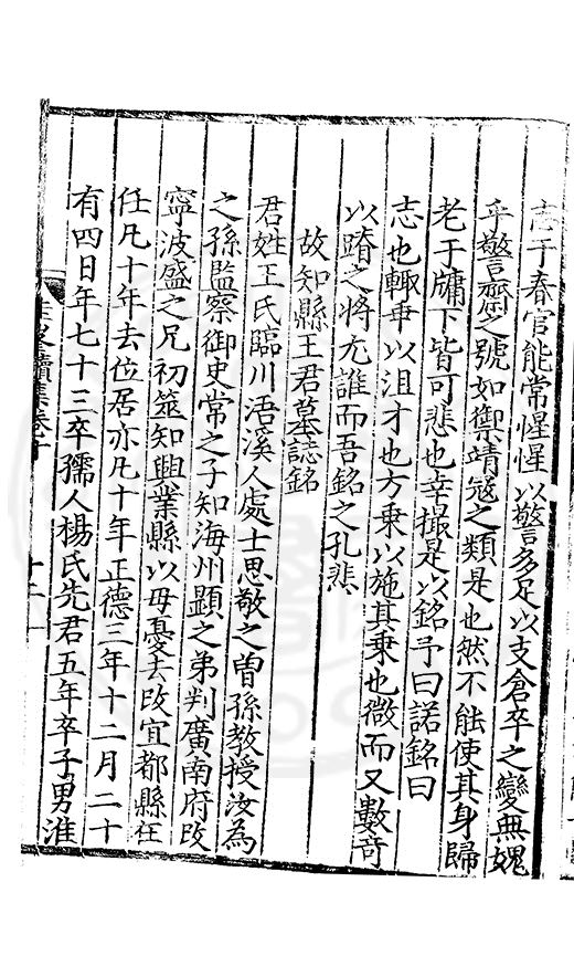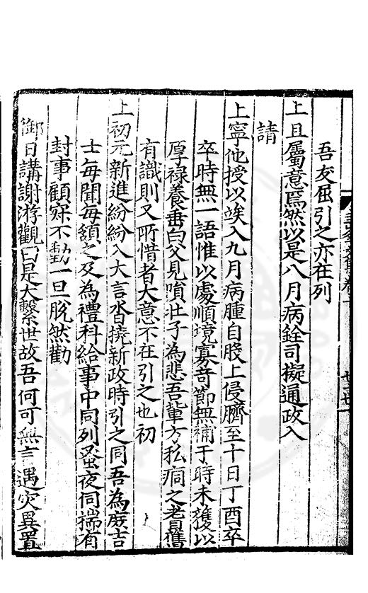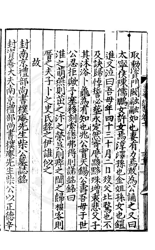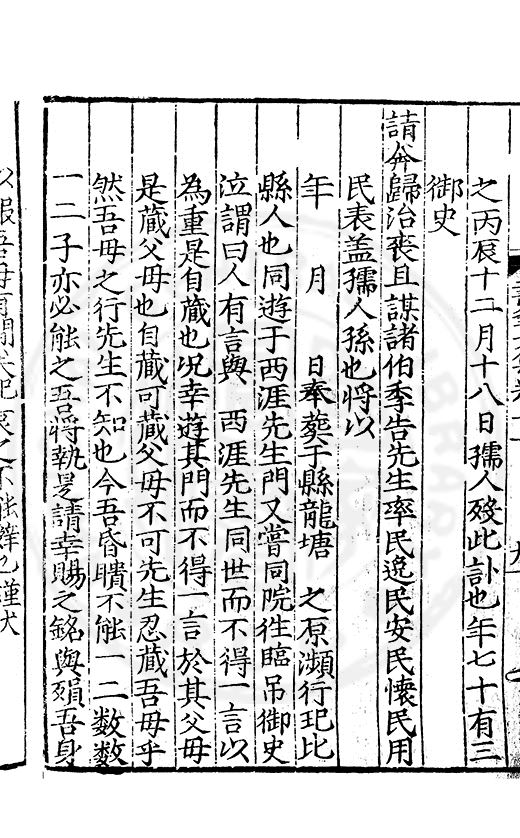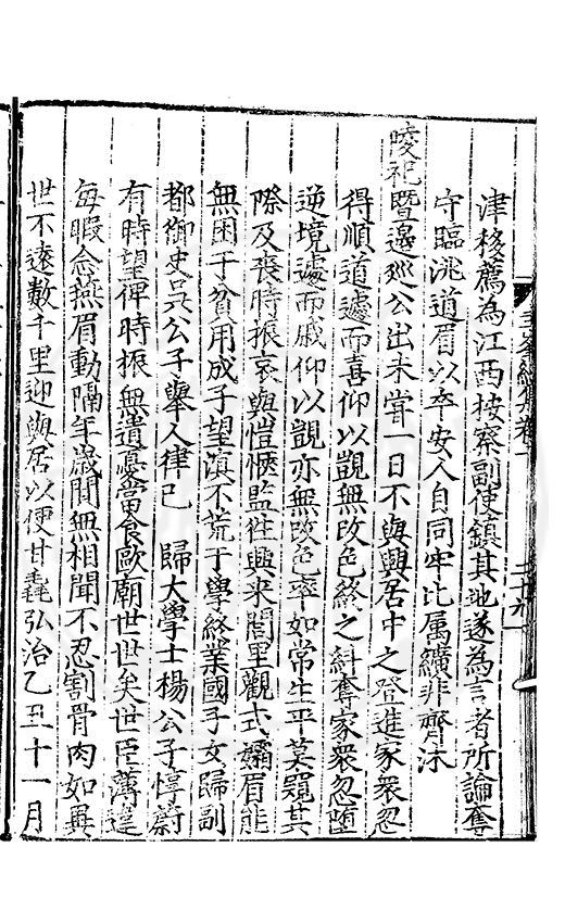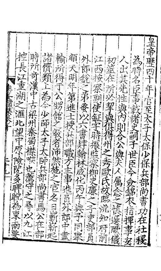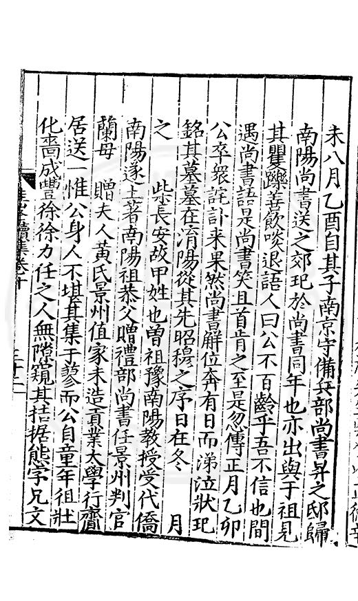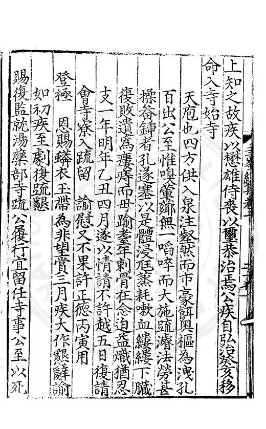 為乞恩休致以全殘喘事臣年六十六歳原籍江西建昌府南城縣人由進士除前任不開外南京太常寺少卿欽陞本寺卿正徳四年六月二十四日到任又自本寺卿欽陞南京吏部右侍郎正徳五年十月十六日到任通理前任扣該正徳七年五月二十三日三年考滿縁臣自