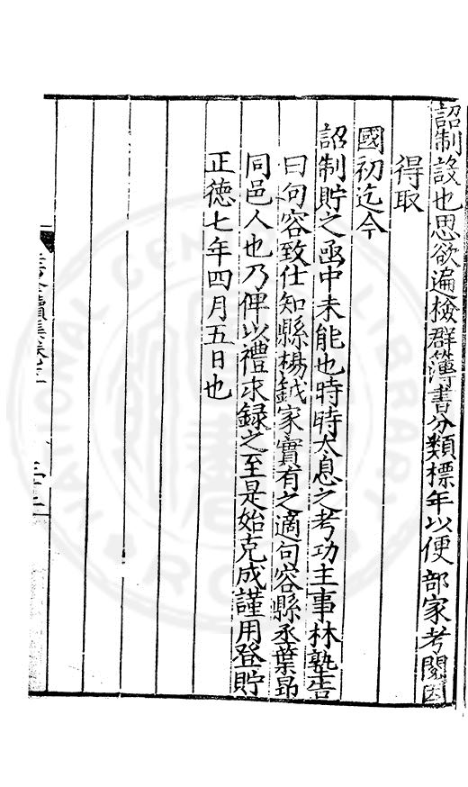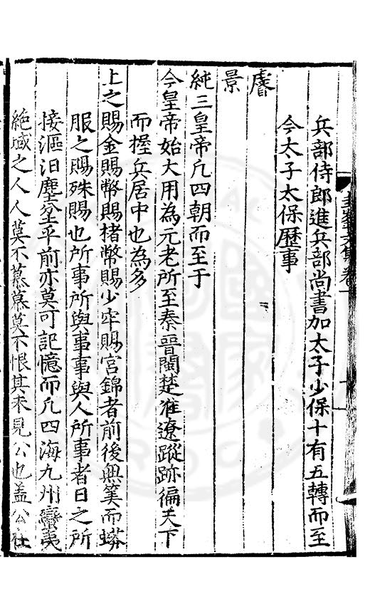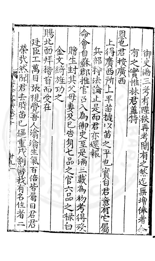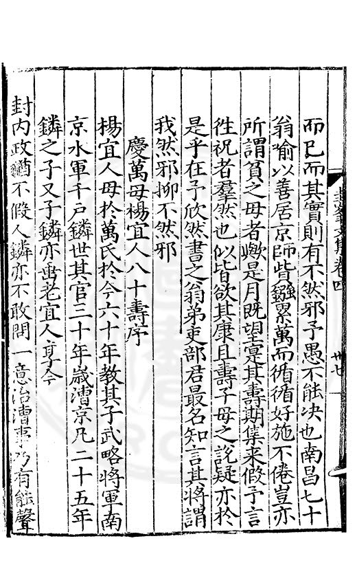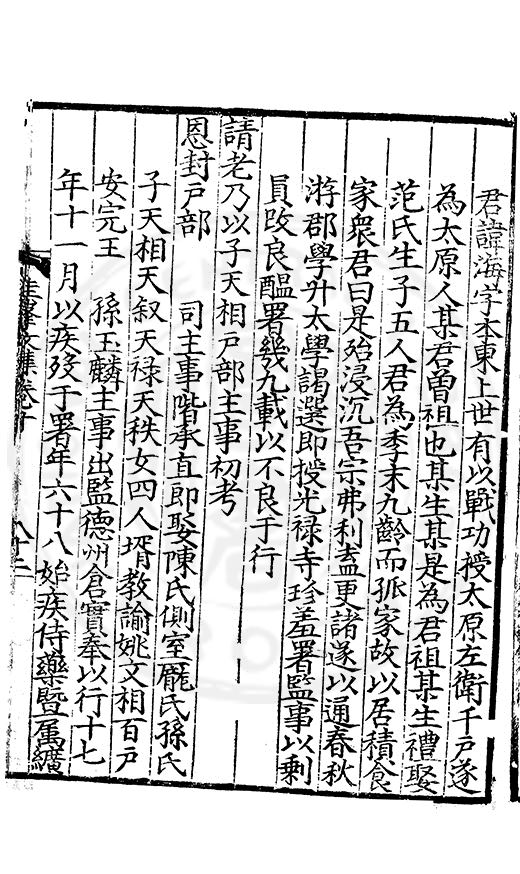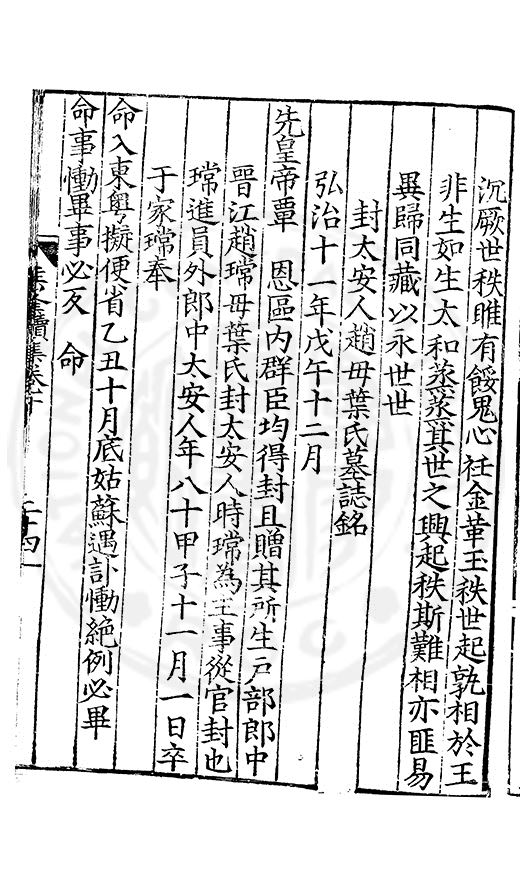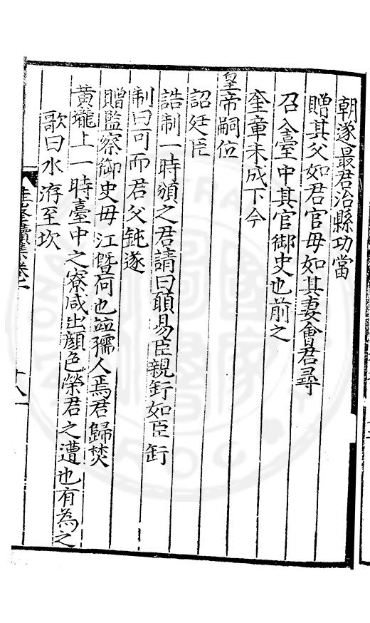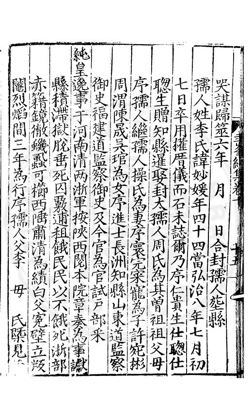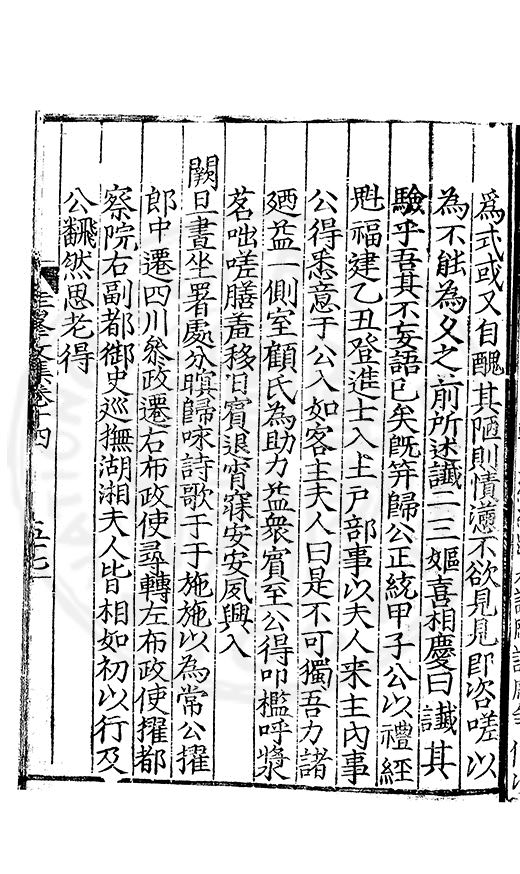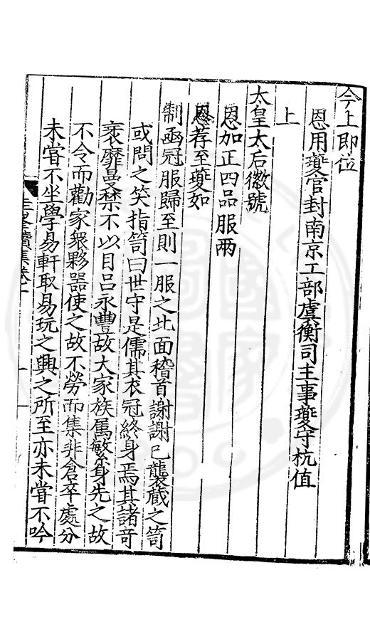 為乞恩休致以全殘喘事臣年六十六歳原籍江西建昌府南城縣人由進士除前任不開外南京太常寺少卿欽陞本寺卿正徳四年六月二十四日到任又自本寺卿欽陞南京吏部右侍郎正徳五年十月十六日到任通理前任扣該正徳七年五月二十三日三年考滿縁臣自
