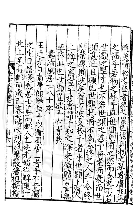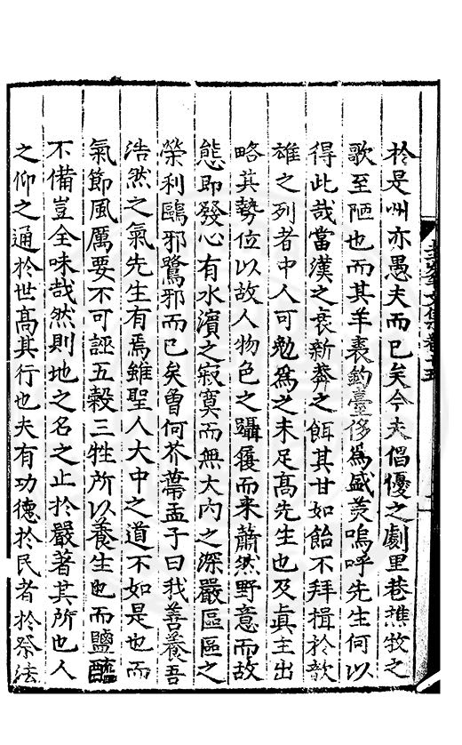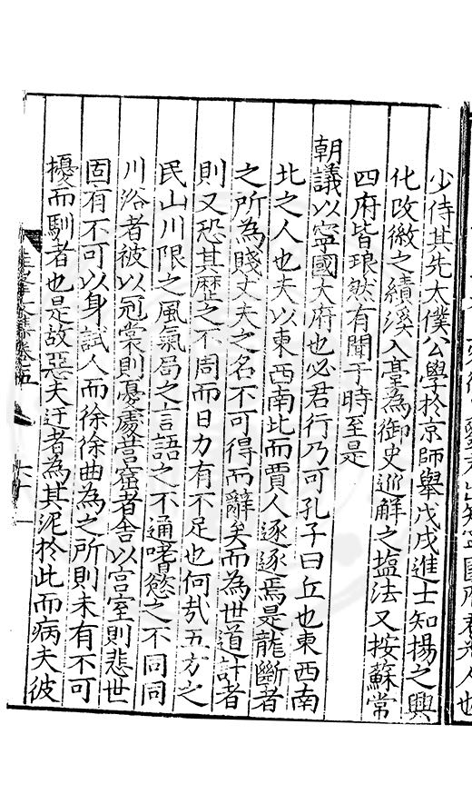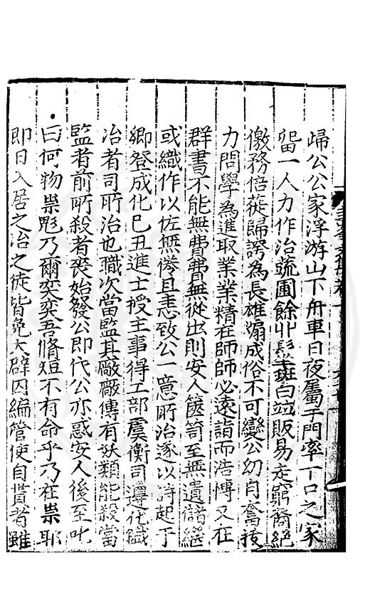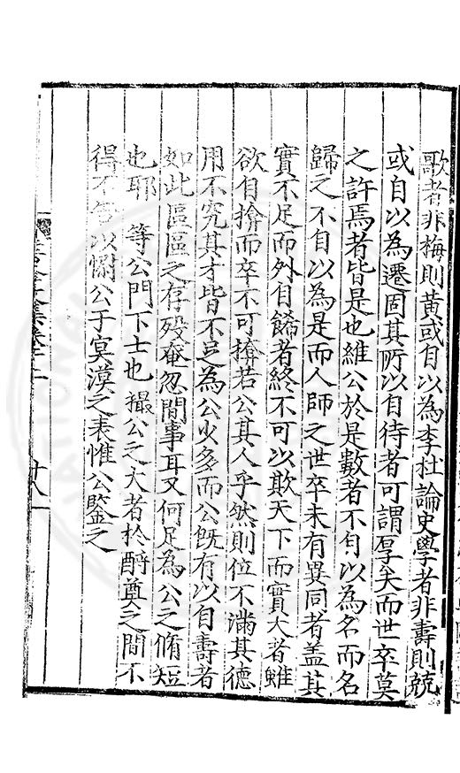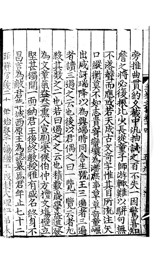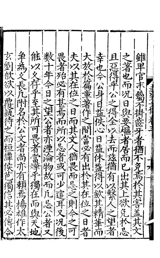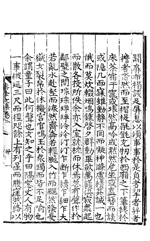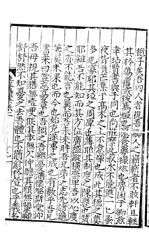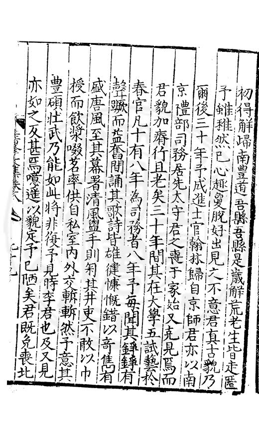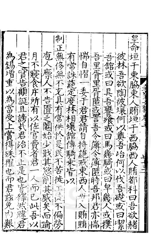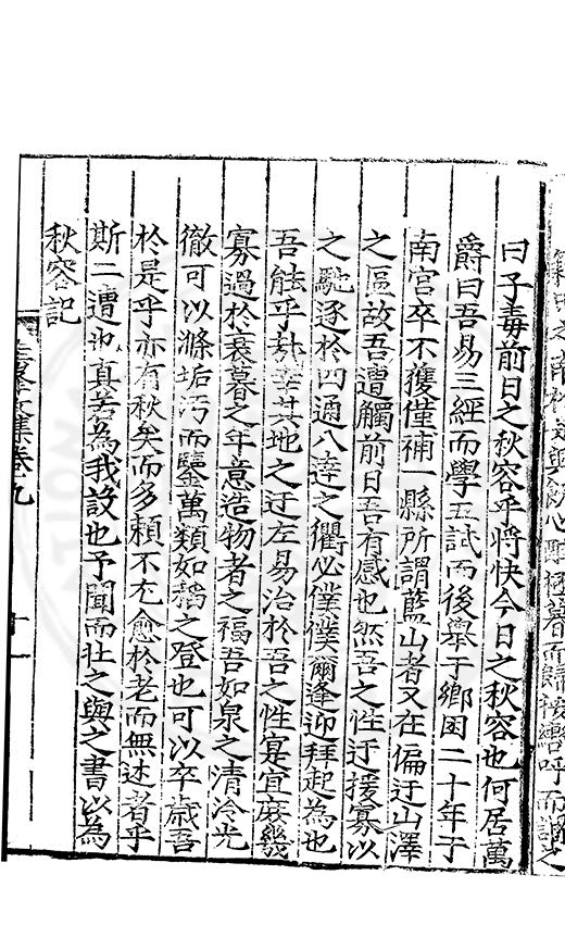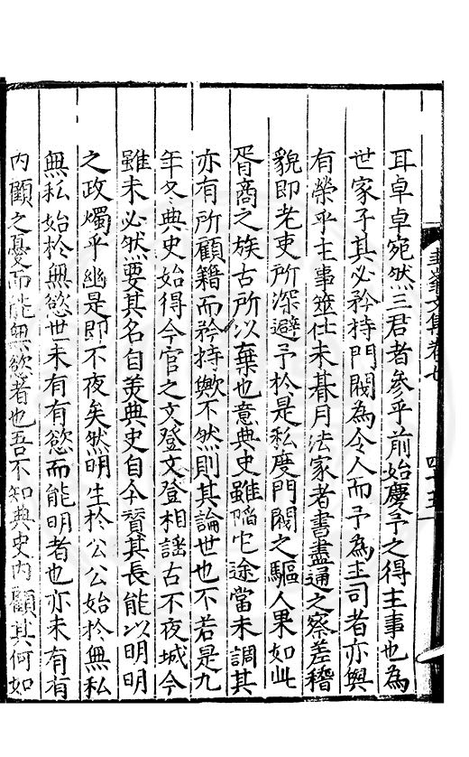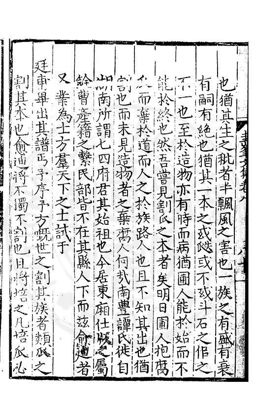 尋其脉絡則自龍門禹宂逺不可窺說者謂先生之言出左氏愚獨謂其直泝盤誥之支餘也雖然亦豈易能哉□者宋元君召畫史一史後至儃儃然獨就舘舎觧衣盤礴累日乃命筆則入神矣聞先生為文必嘔心積慮至扃戸牗或距木石隱度逾旬日或遲嵗時神生境具而後命筆稍渉扵萎陋詘誕之微雖