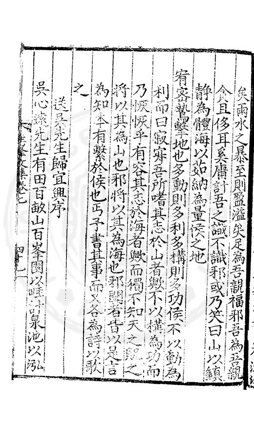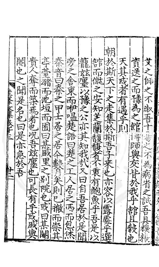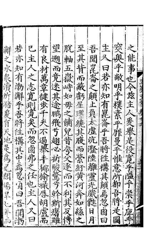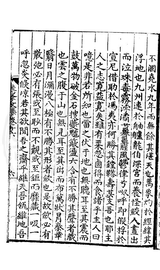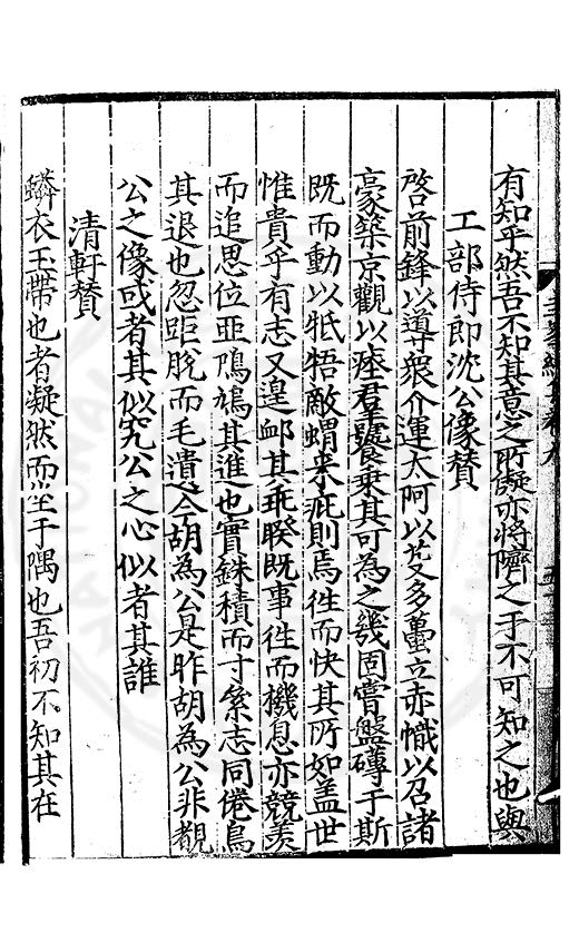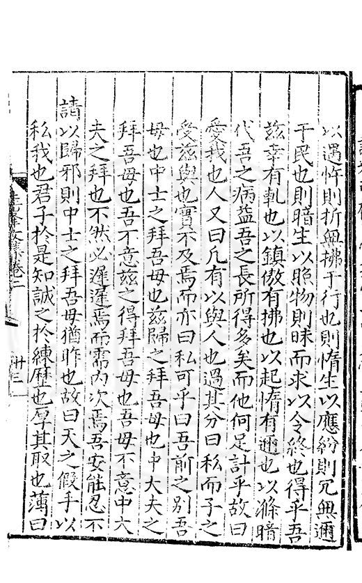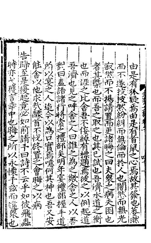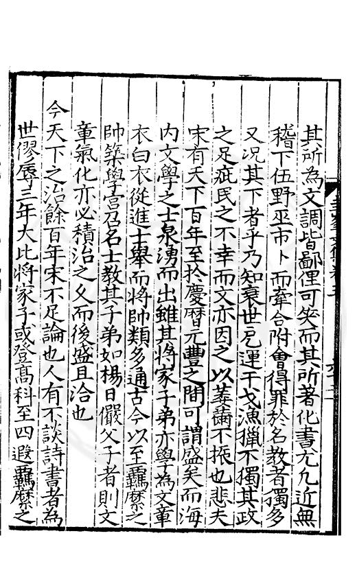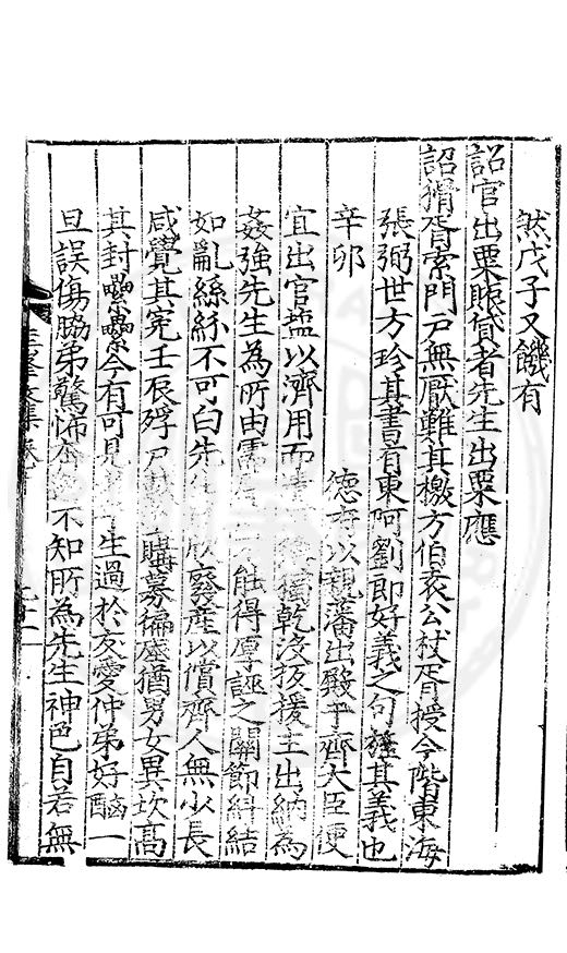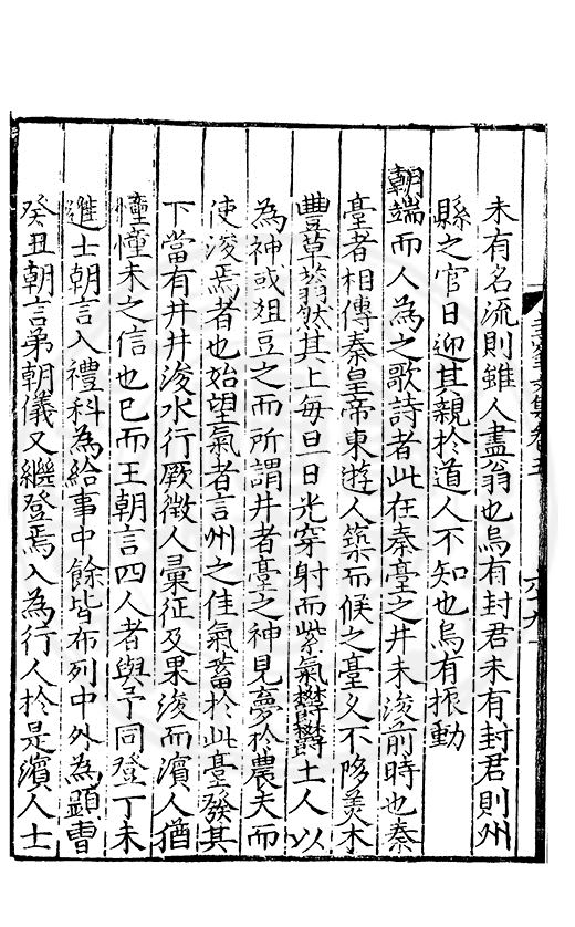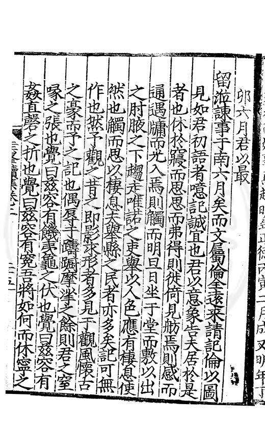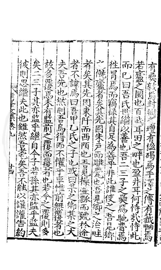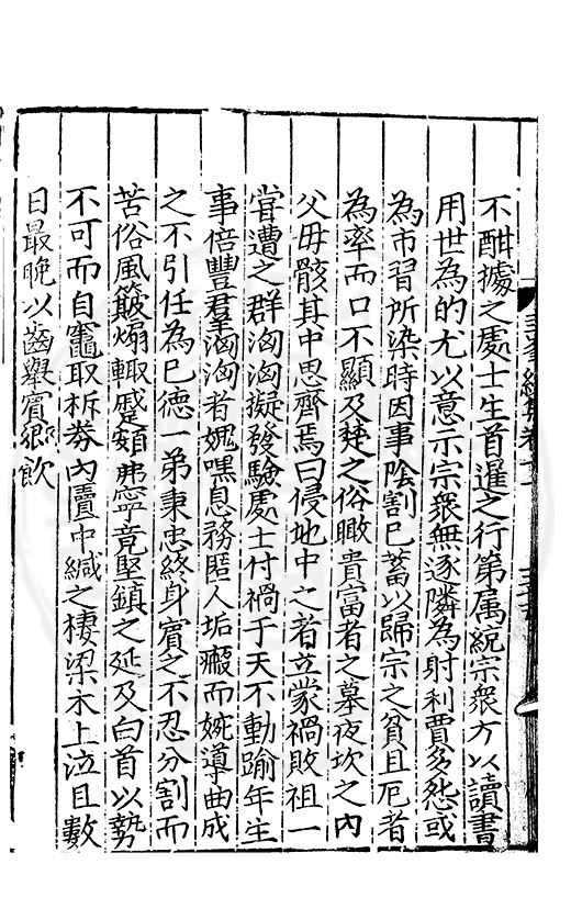 尋其脉絡則自龍門禹宂逺不可窺說者謂先生之言出左氏愚獨謂其直泝盤誥之支餘也雖然亦豈易能哉□者宋元君召畫史一史後至儃儃然獨就舘舎觧衣盤礴累日乃命筆則入神矣聞先生為文必嘔心積慮至扃戸牗或距木石隱度逾旬日或遲嵗時神生境具而後命筆稍渉扵萎陋詘誕之微雖