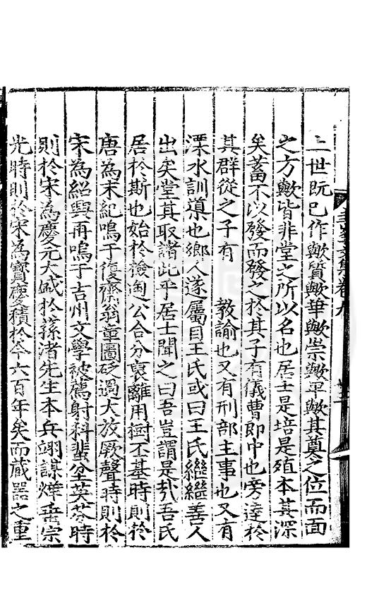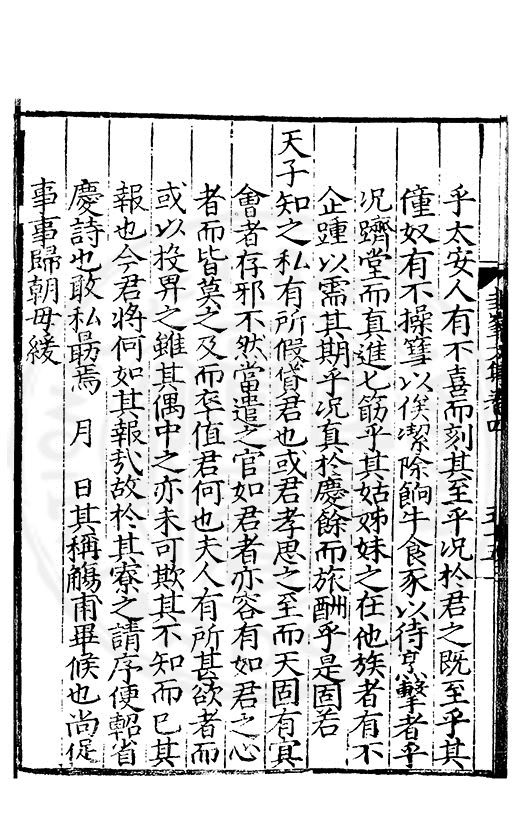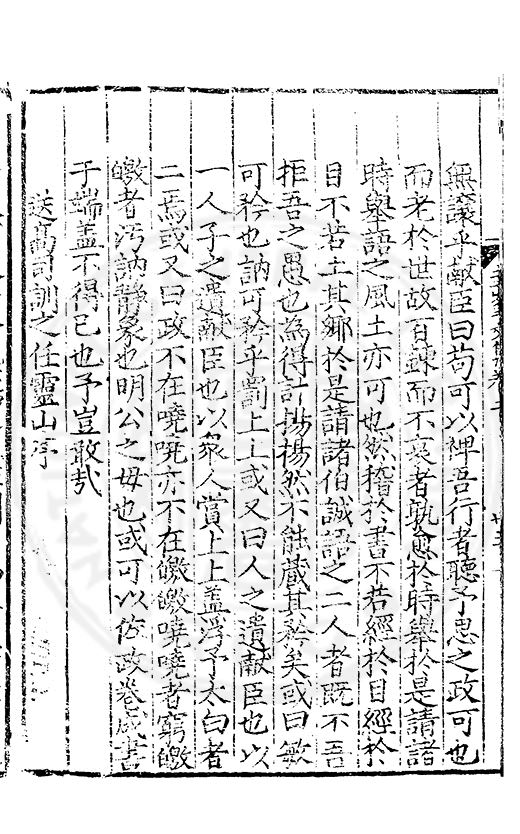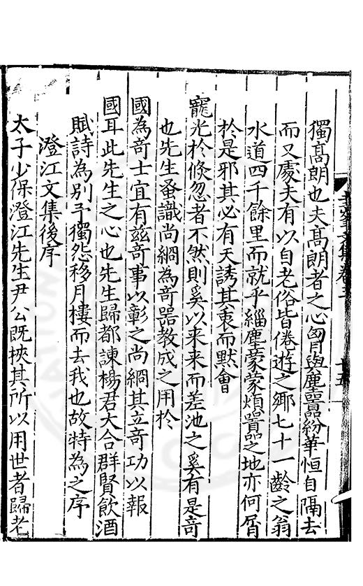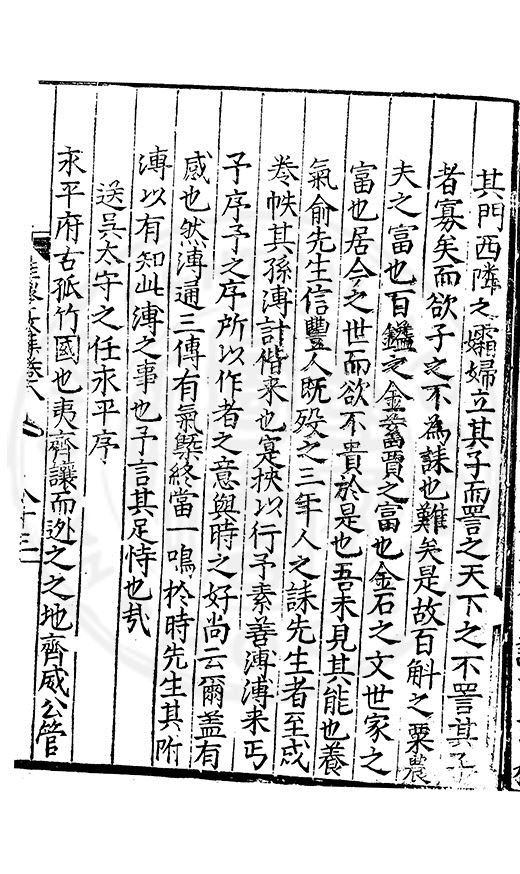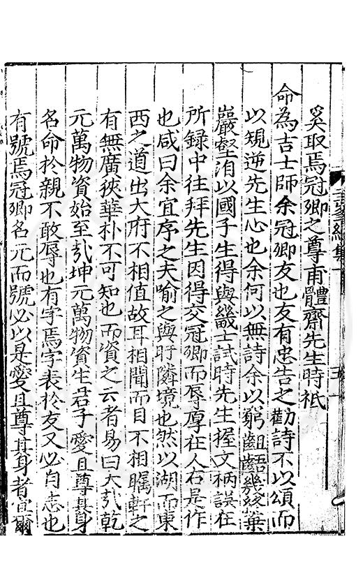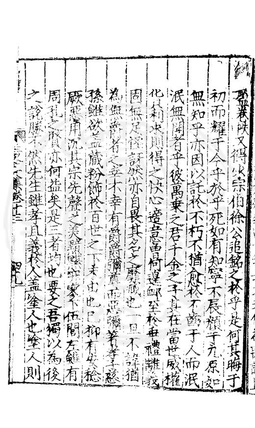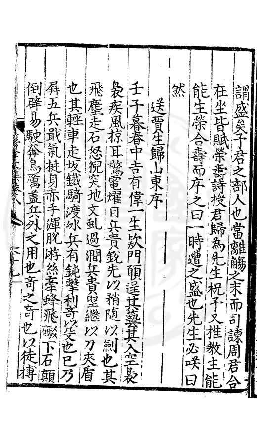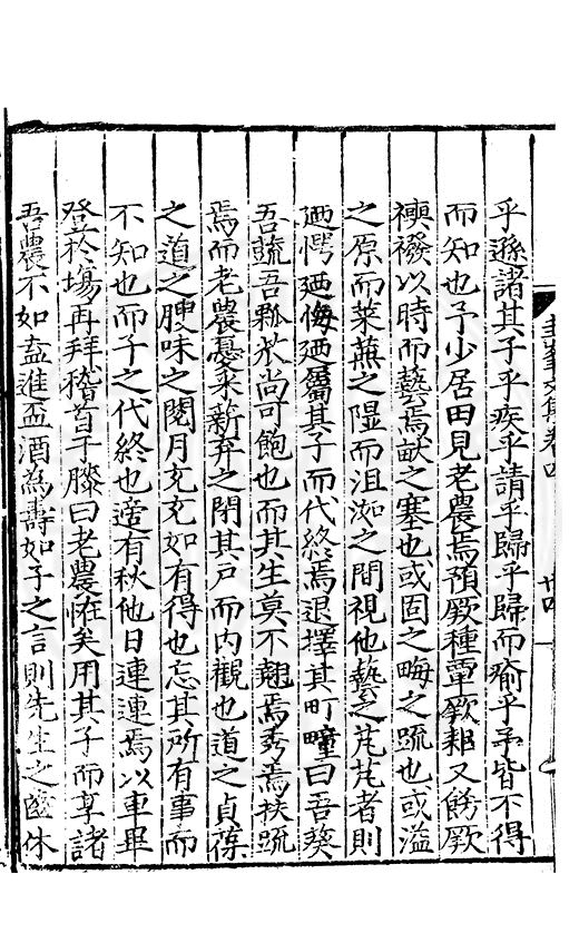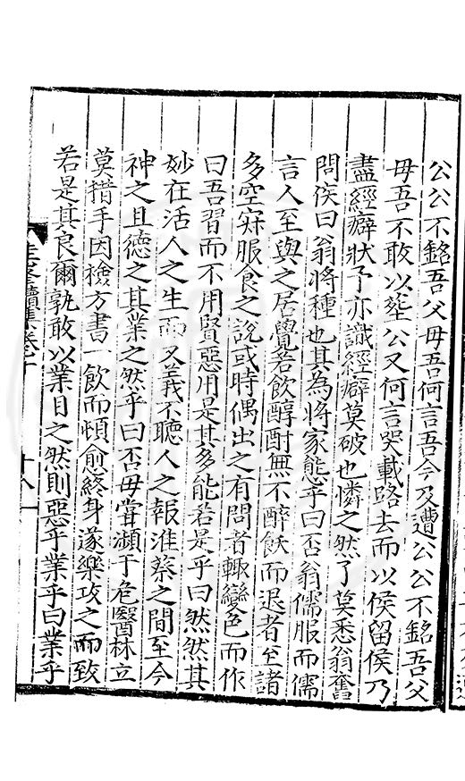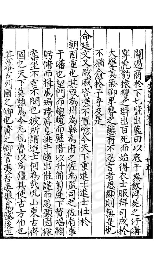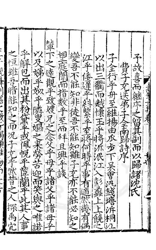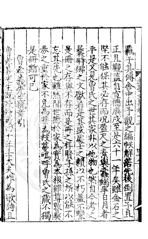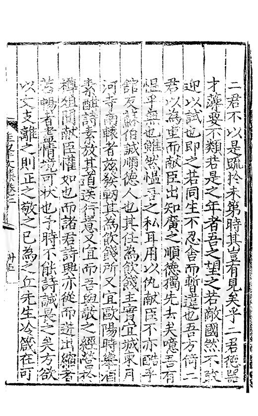 尋其脉絡則自龍門禹宂逺不可窺說者謂先生之言出左氏愚獨謂其直泝盤誥之支餘也雖然亦豈易能哉□者宋元君召畫史一史後至儃儃然獨就舘舎觧衣盤礴累日乃命筆則入神矣聞先生為文必嘔心積慮至扃戸牗或距木石隱度逾旬日或遲嵗時神生境具而後命筆稍渉扵萎陋詘誕之微雖