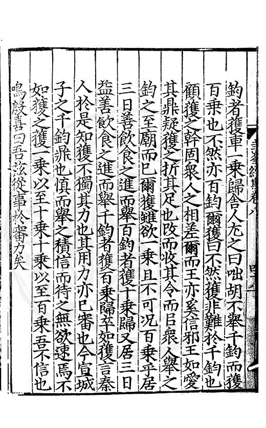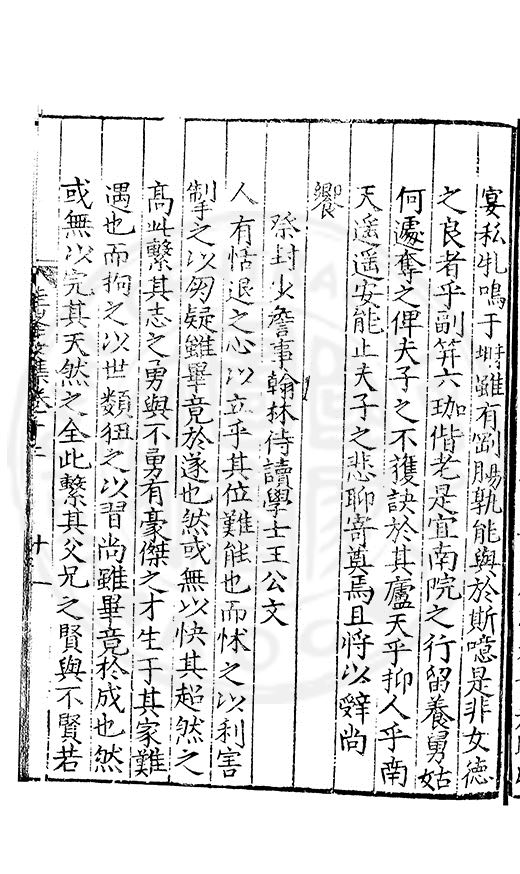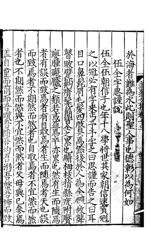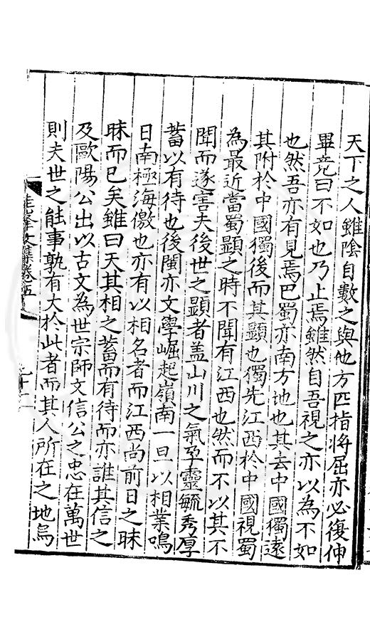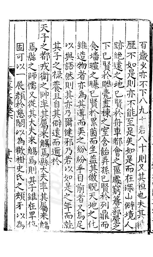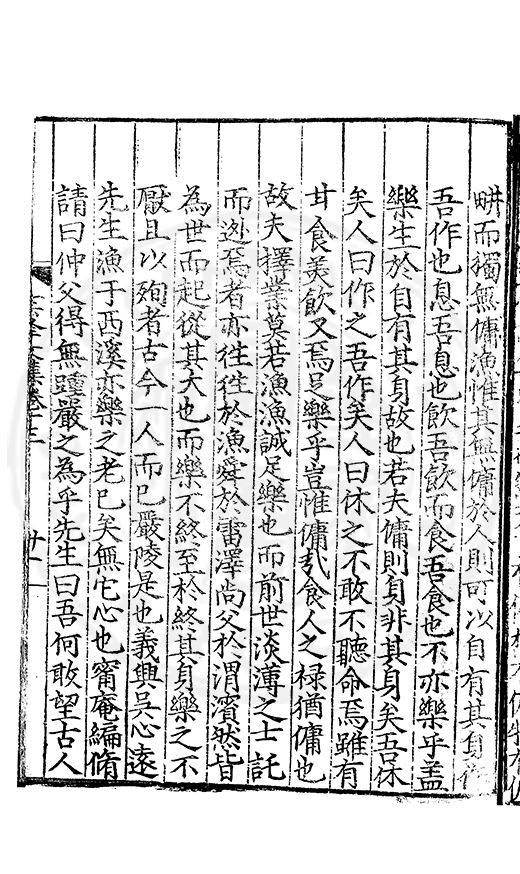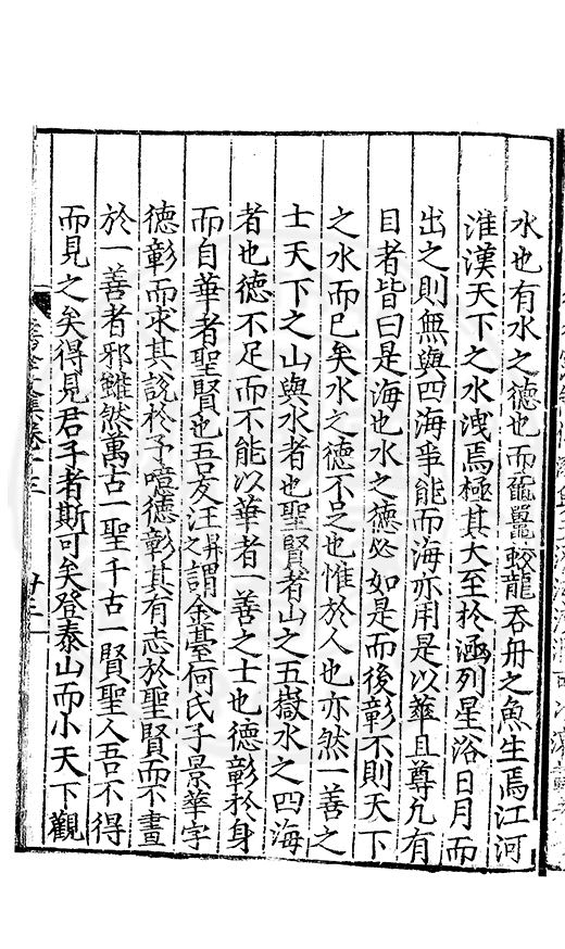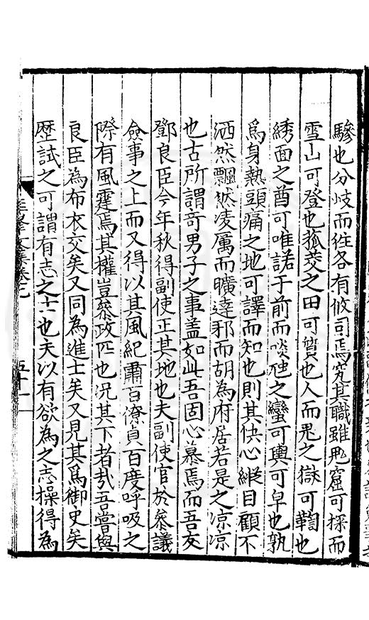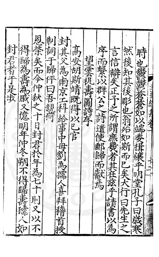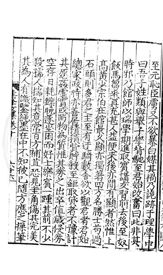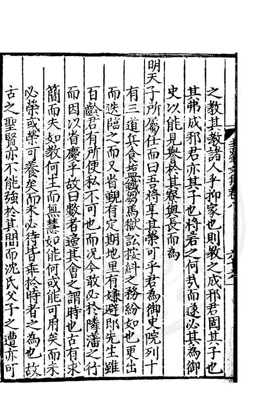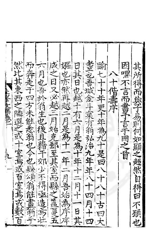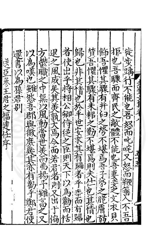 尋其脉絡則自龍門禹宂逺不可窺說者謂先生之言出左氏愚獨謂其直泝盤誥之支餘也雖然亦豈易能哉□者宋元君召畫史一史後至儃儃然獨就舘舎觧衣盤礴累日乃命筆則入神矣聞先生為文必嘔心積慮至扃戸牗或距木石隱度逾旬日或遲嵗時神生境具而後命筆稍渉扵萎陋詘誕之微雖