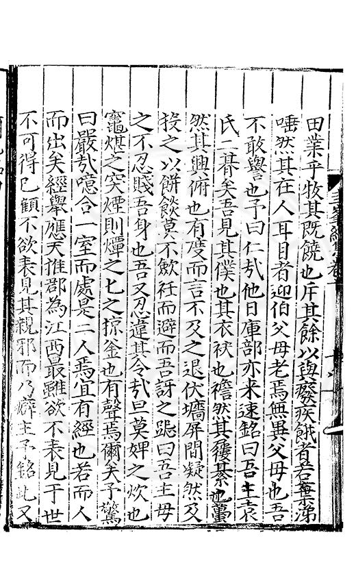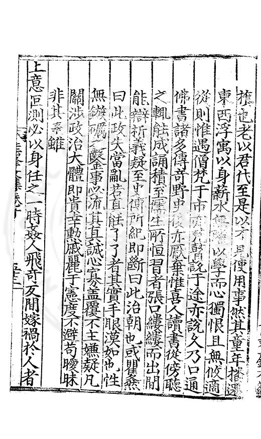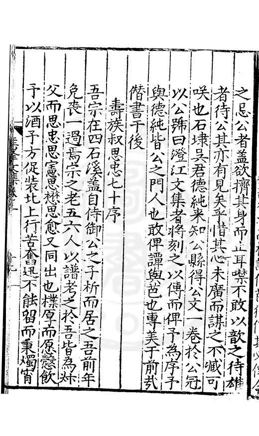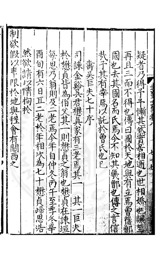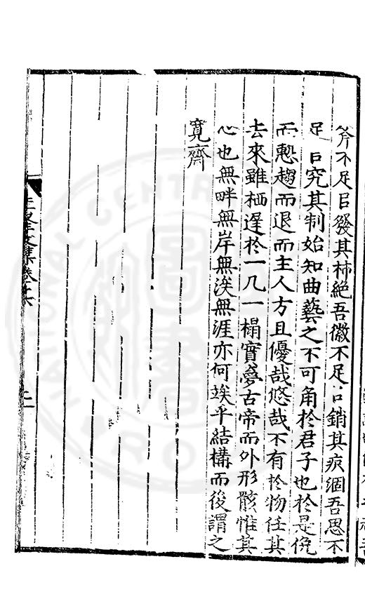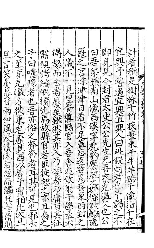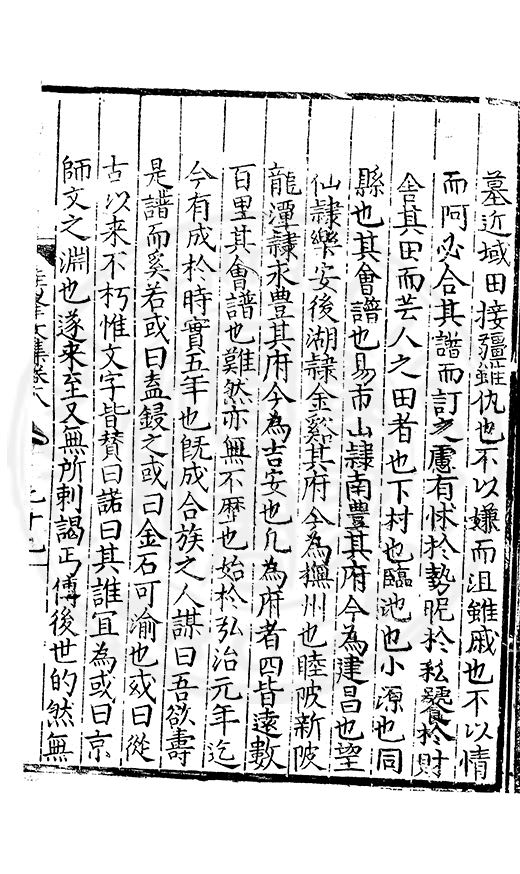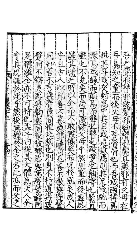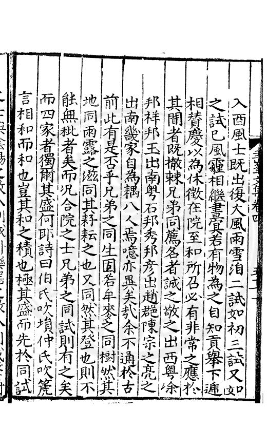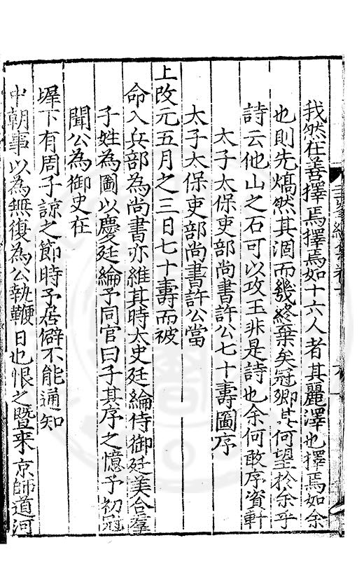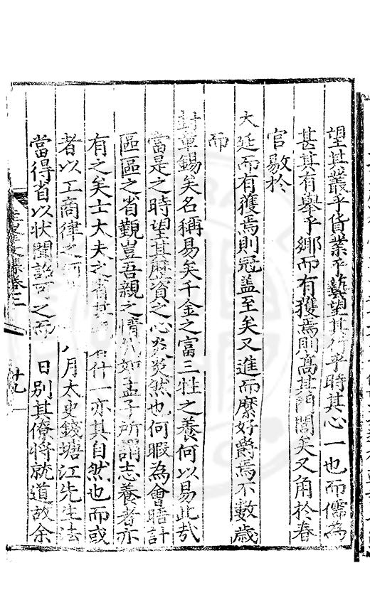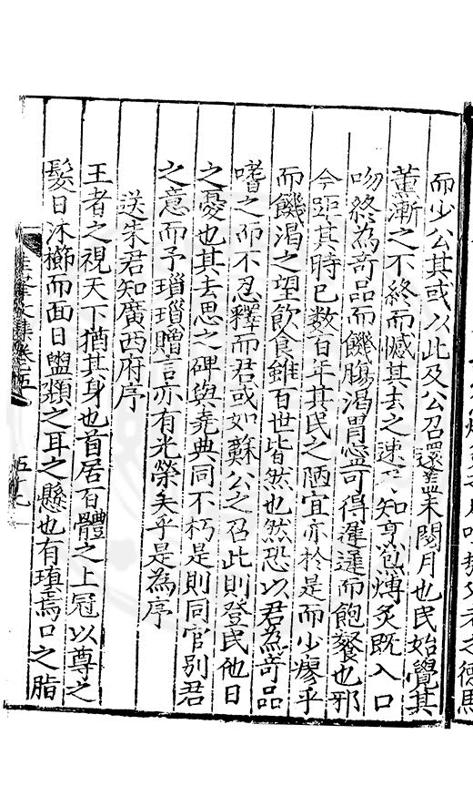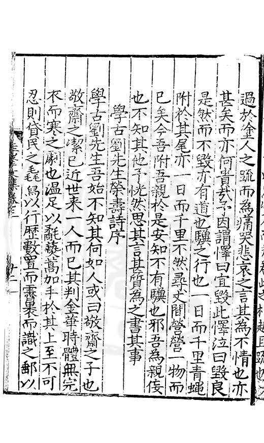 尋其脉絡則自龍門禹宂逺不可窺說者謂先生之言出左氏愚獨謂其直泝盤誥之支餘也雖然亦豈易能哉□者宋元君召畫史一史後至儃儃然獨就舘舎觧衣盤礴累日乃命筆則入神矣聞先生為文必嘔心積慮至扃戸牗或距木石隱度逾旬日或遲嵗時神生境具而後命筆稍渉扵萎陋詘誕之微雖