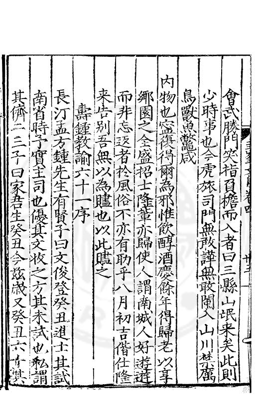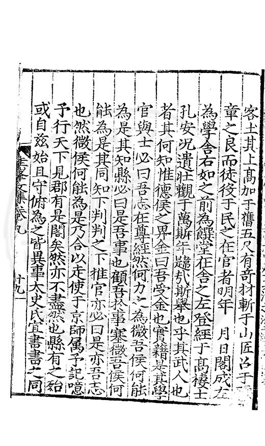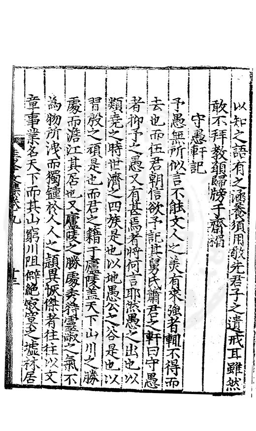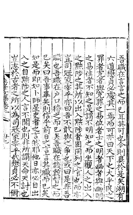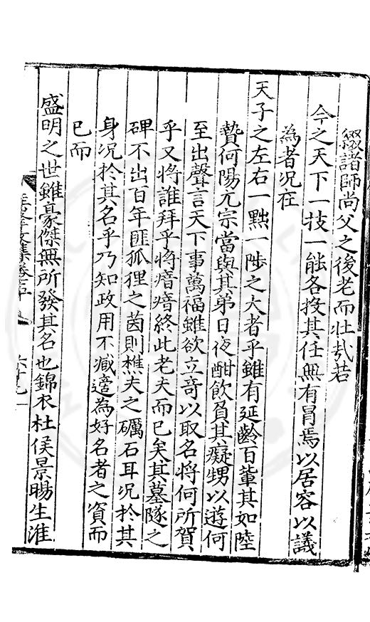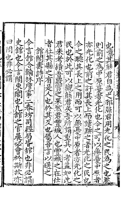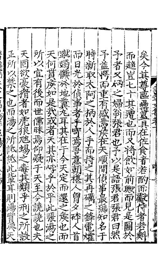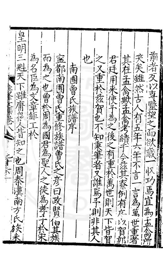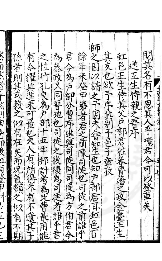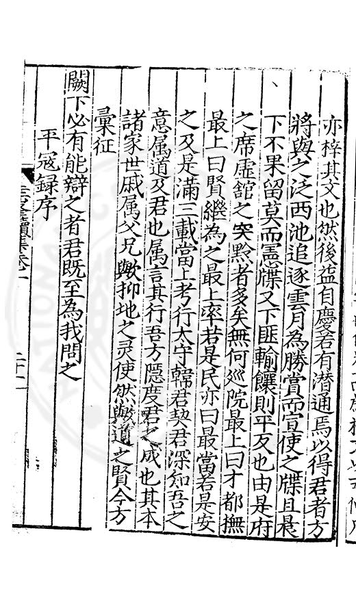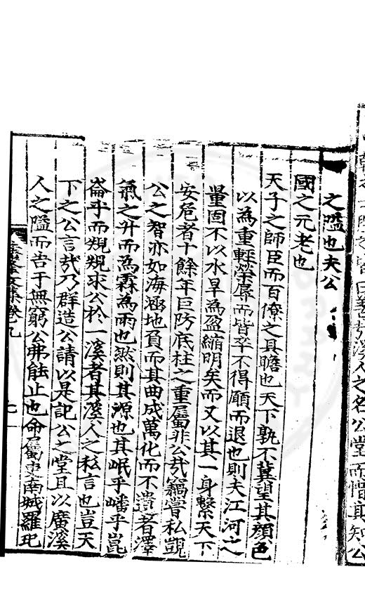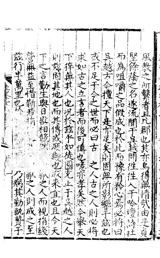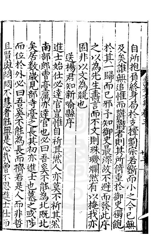 尋其脉絡則自龍門禹宂逺不可窺說者謂先生之言出左氏愚獨謂其直泝盤誥之支餘也雖然亦豈易能哉□者宋元君召畫史一史後至儃儃然獨就舘舎觧衣盤礴累日乃命筆則入神矣聞先生為文必嘔心積慮至扃戸牗或距木石隱度逾旬日或遲嵗時神生境具而後命筆稍渉扵萎陋詘誕之微雖