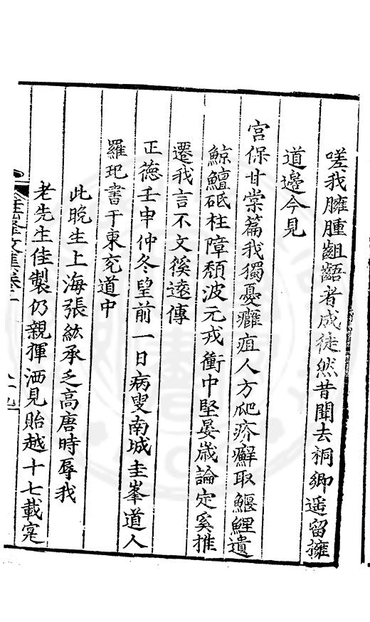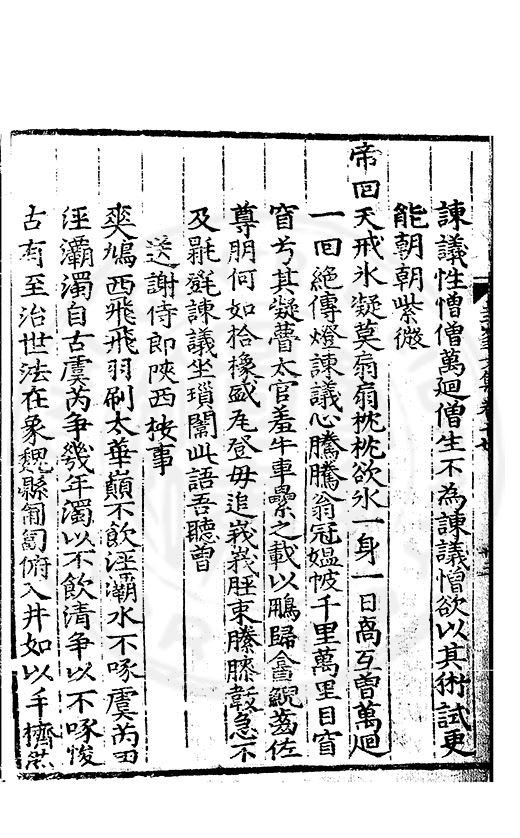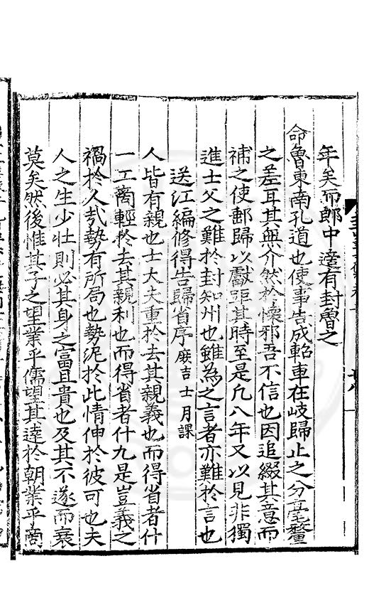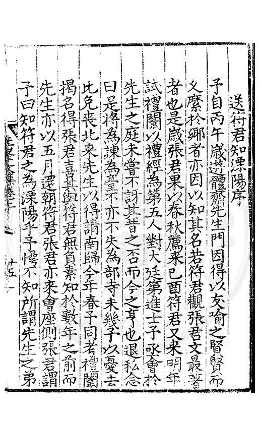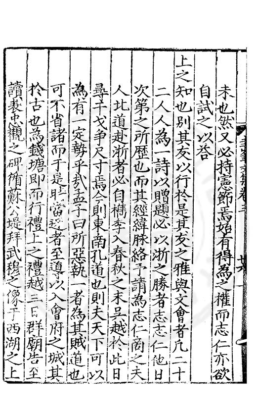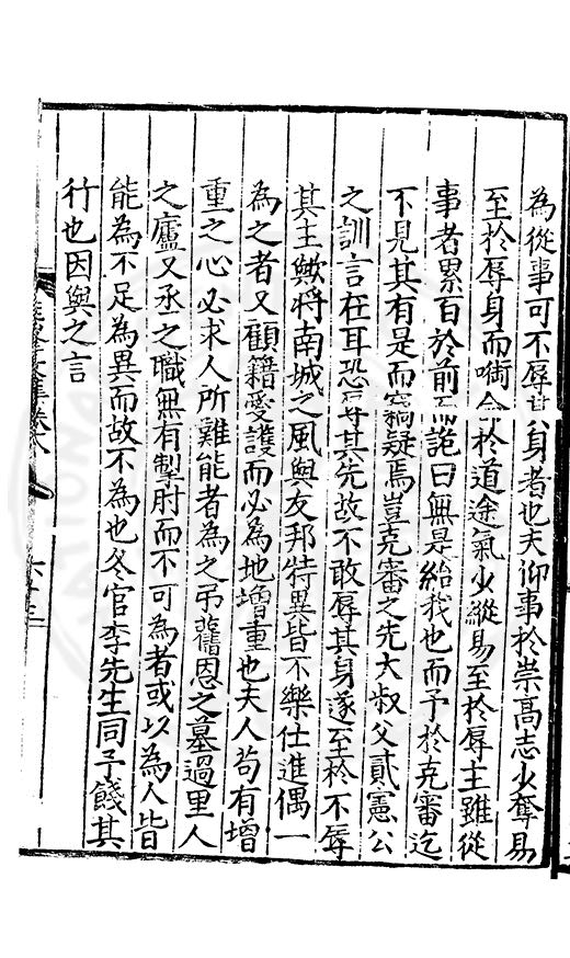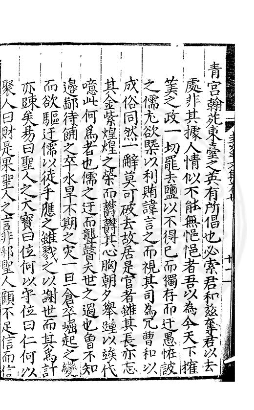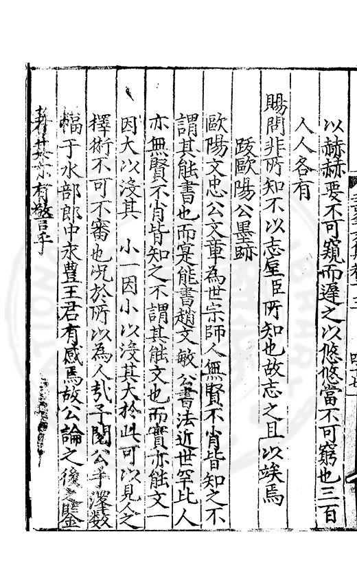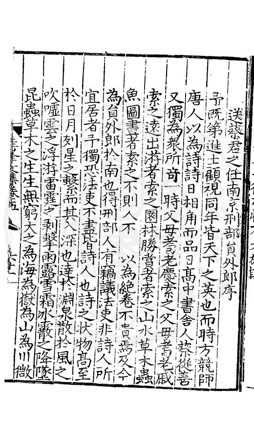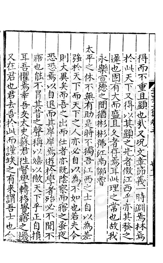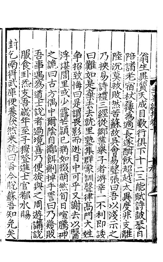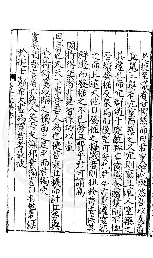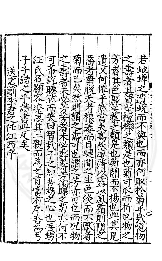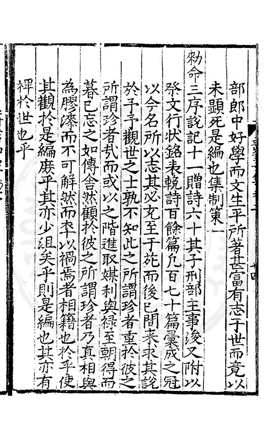 尋其脉絡則自龍門禹宂逺不可窺說者謂先生之言出左氏愚獨謂其直泝盤誥之支餘也雖然亦豈易能哉□者宋元君召畫史一史後至儃儃然獨就舘舎觧衣盤礴累日乃命筆則入神矣聞先生為文必嘔心積慮至扃戸牗或距木石隱度逾旬日或遲嵗時神生境具而後命筆稍渉扵萎陋詘誕之微雖
