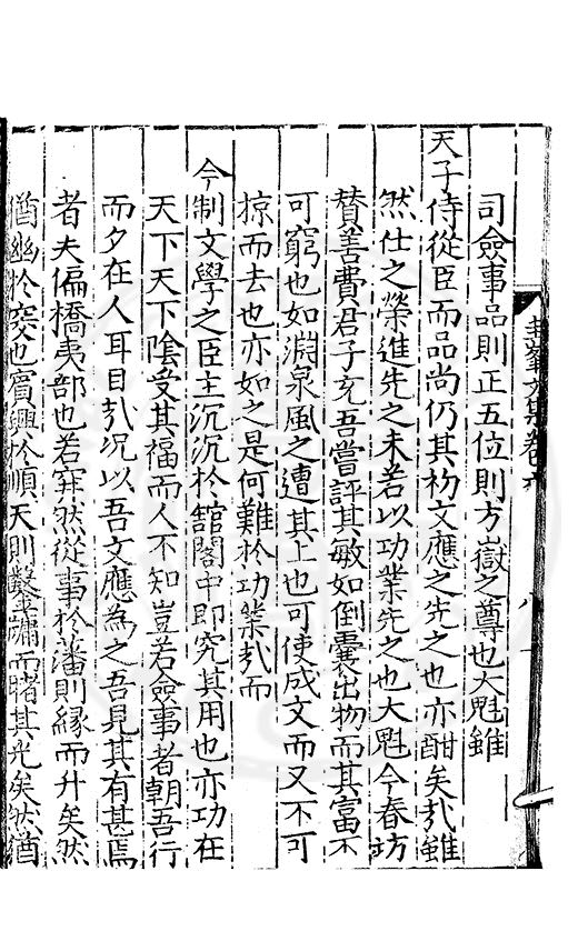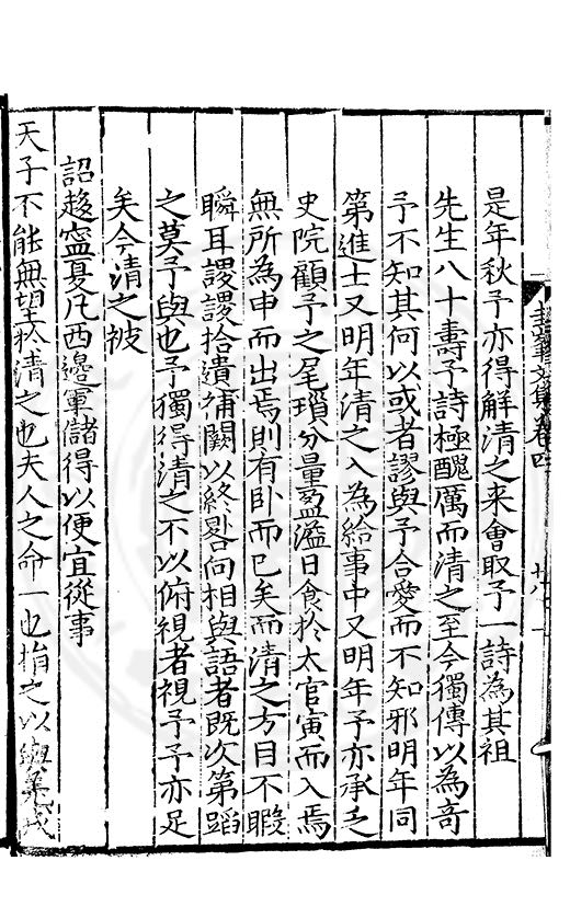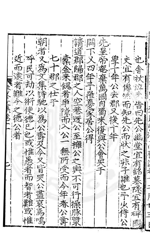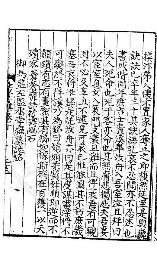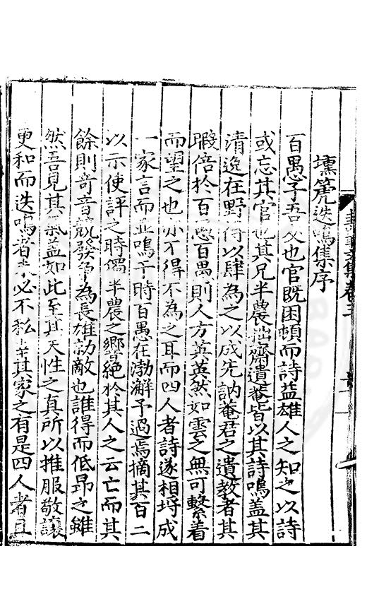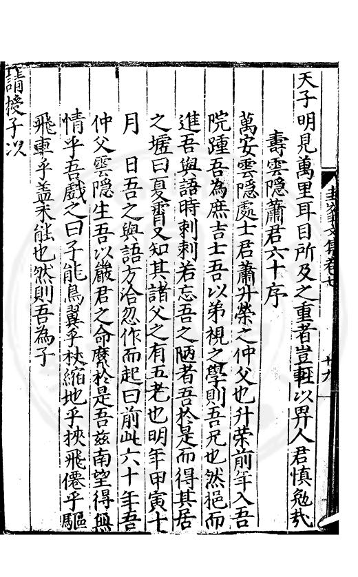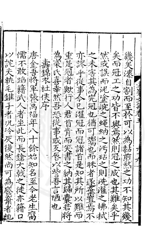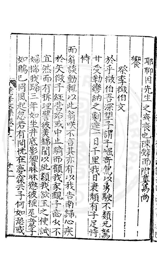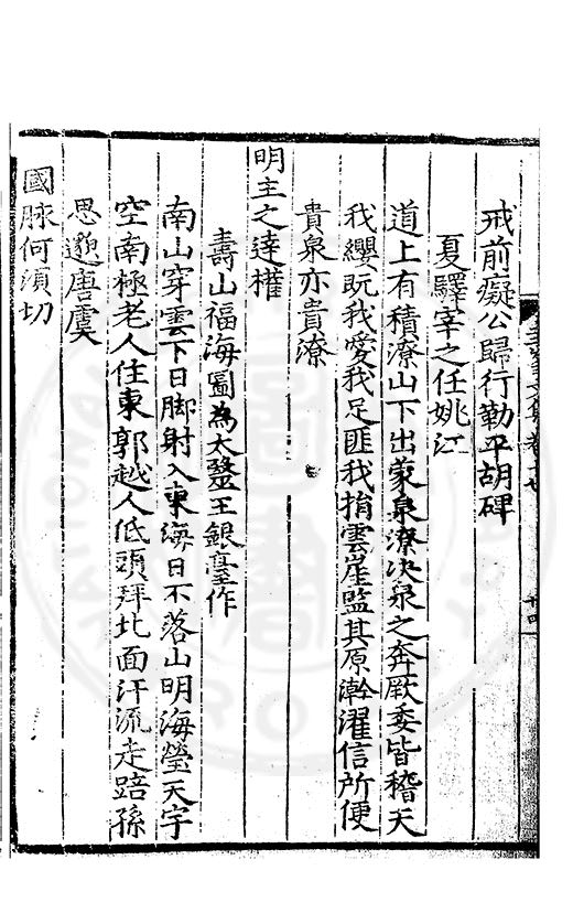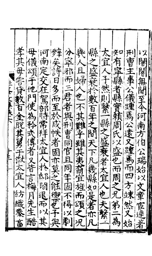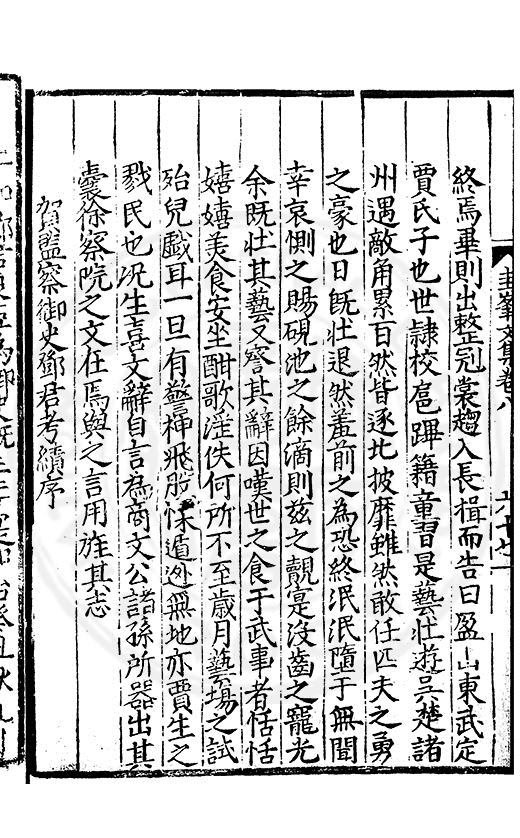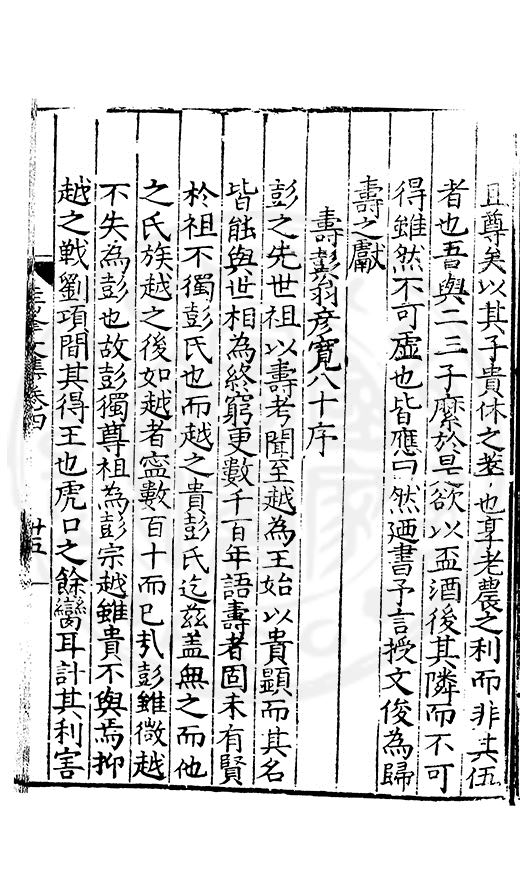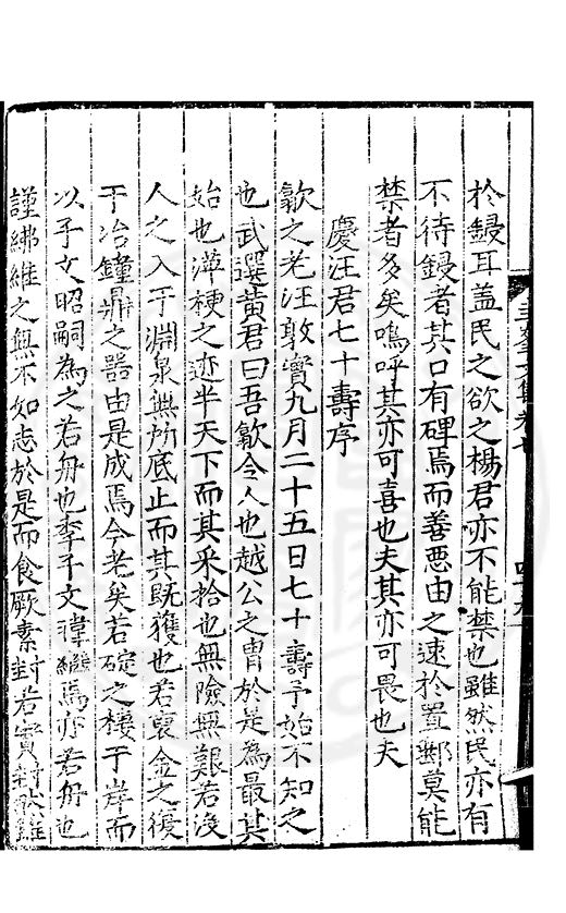 尋其脉絡則自龍門禹宂逺不可窺說者謂先生之言出左氏愚獨謂其直泝盤誥之支餘也雖然亦豈易能哉□者宋元君召畫史一史後至儃儃然獨就舘舎觧衣盤礴累日乃命筆則入神矣聞先生為文必嘔心積慮至扃戸牗或距木石隱度逾旬日或遲嵗時神生境具而後命筆稍渉扵萎陋詘誕之微雖