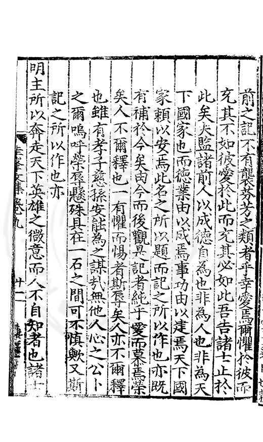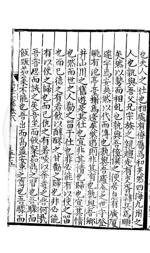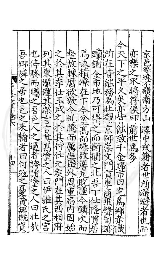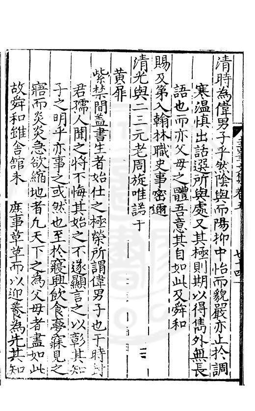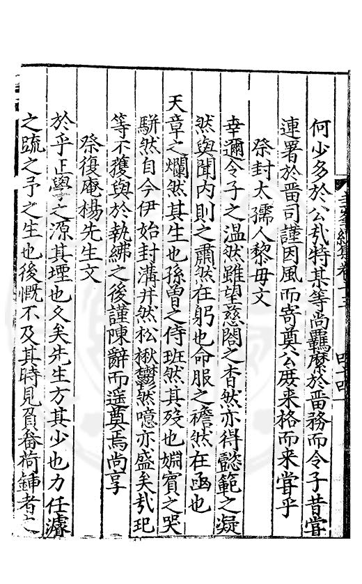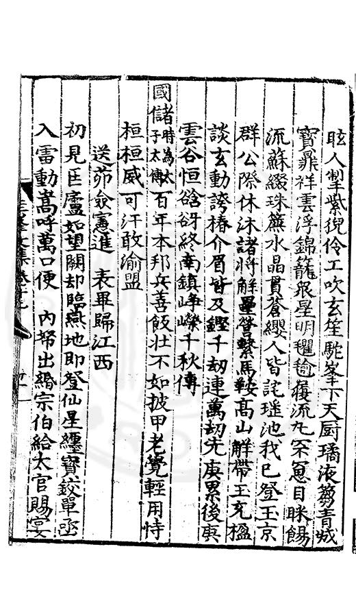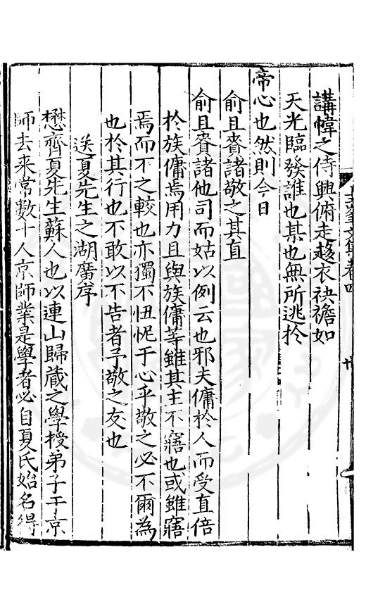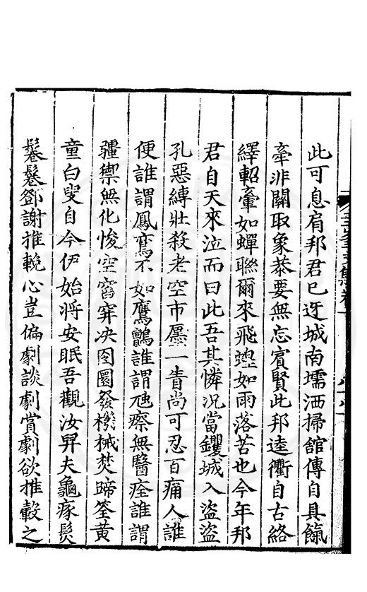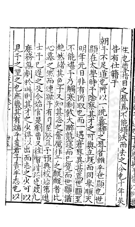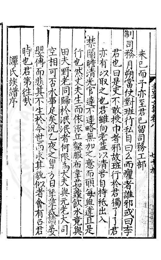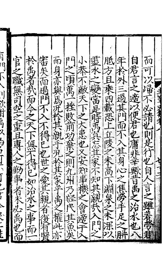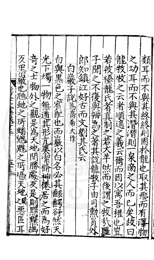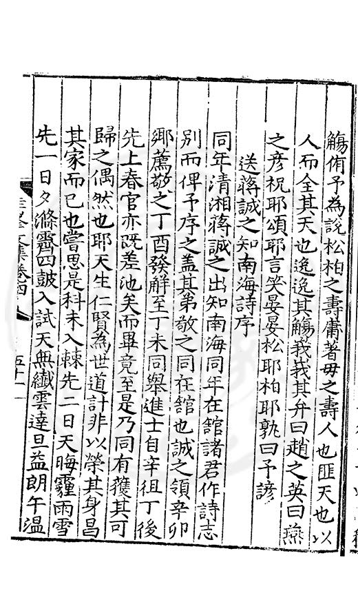 尋其脉絡則自龍門禹宂逺不可窺說者謂先生之言出左氏愚獨謂其直泝盤誥之支餘也雖然亦豈易能哉□者宋元君召畫史一史後至儃儃然獨就舘舎觧衣盤礴累日乃命筆則入神矣聞先生為文必嘔心積慮至扃戸牗或距木石隱度逾旬日或遲嵗時神生境具而後命筆稍渉扵萎陋詘誕之微雖