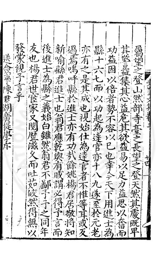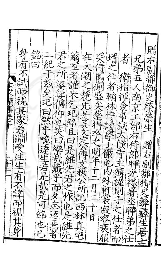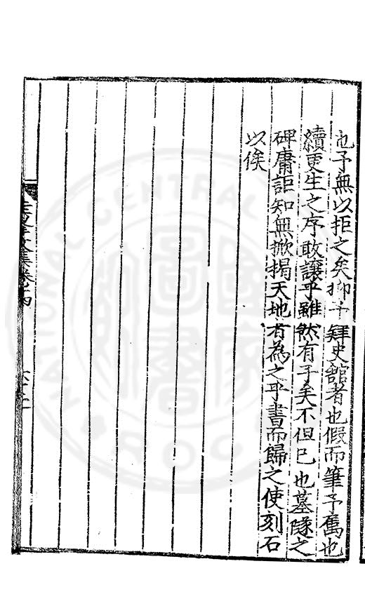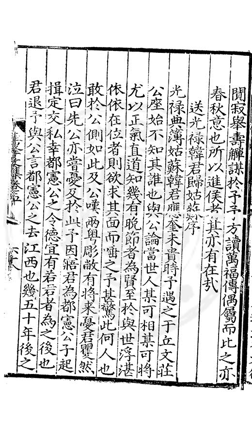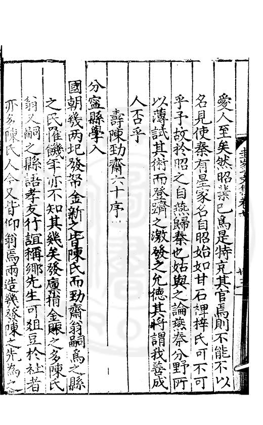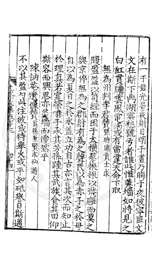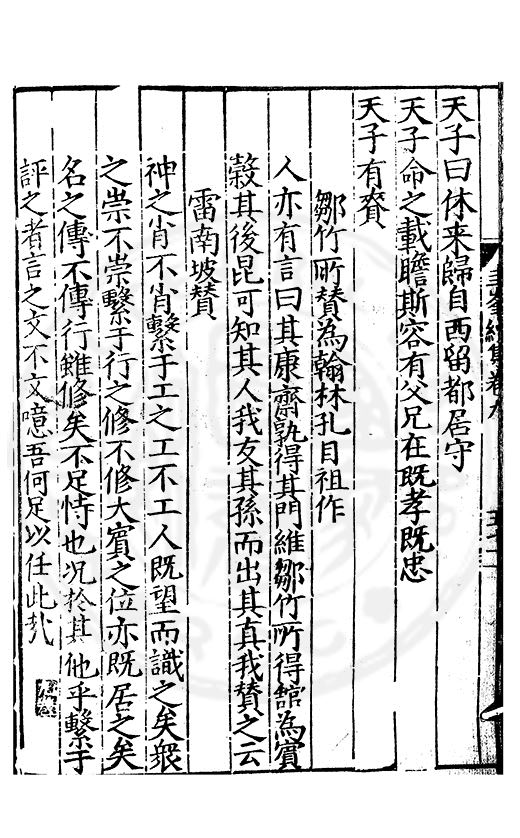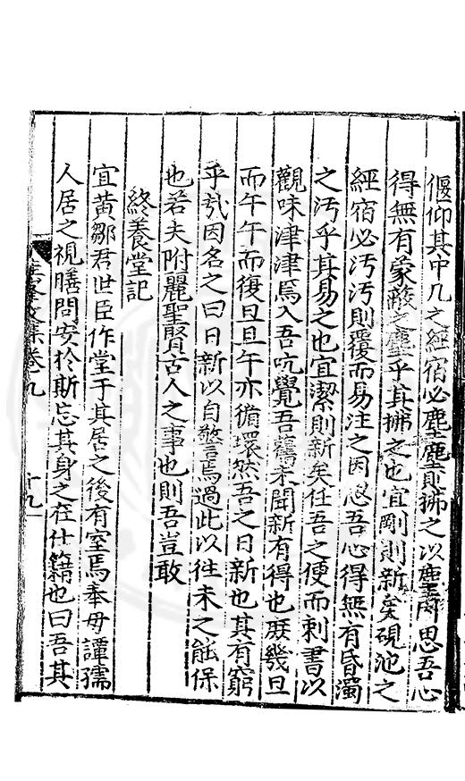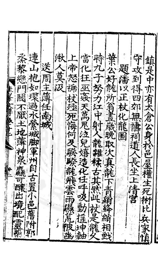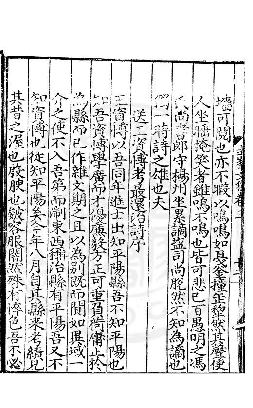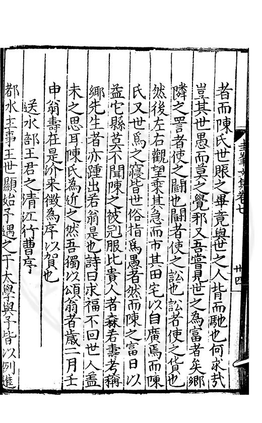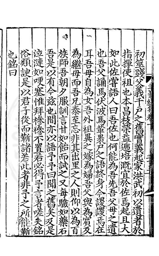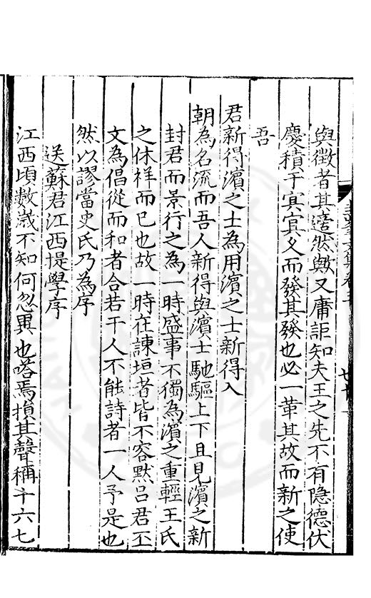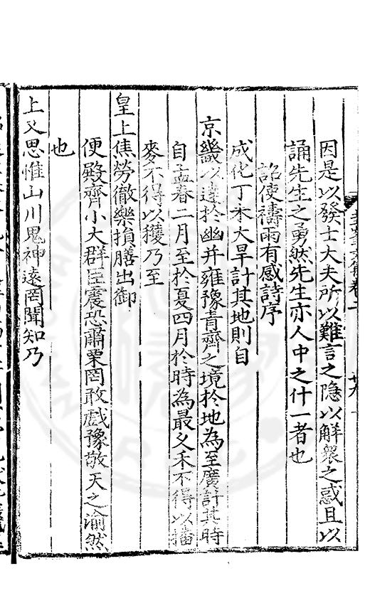 尋其脉絡則自龍門禹宂逺不可窺說者謂先生之言出左氏愚獨謂其直泝盤誥之支餘也雖然亦豈易能哉□者宋元君召畫史一史後至儃儃然獨就舘舎觧衣盤礴累日乃命筆則入神矣聞先生為文必嘔心積慮至扃戸牗或距木石隱度逾旬日或遲嵗時神生境具而後命筆稍渉扵萎陋詘誕之微雖