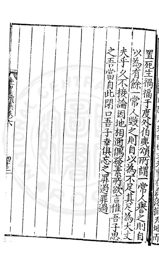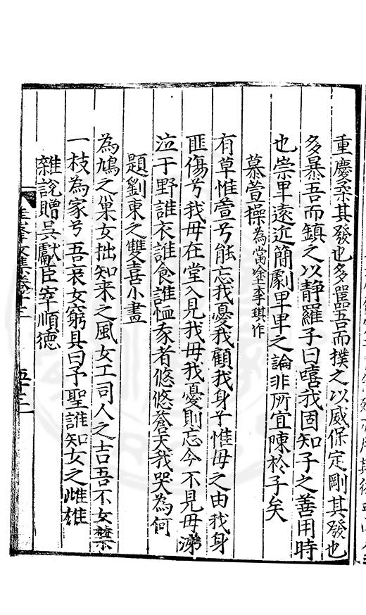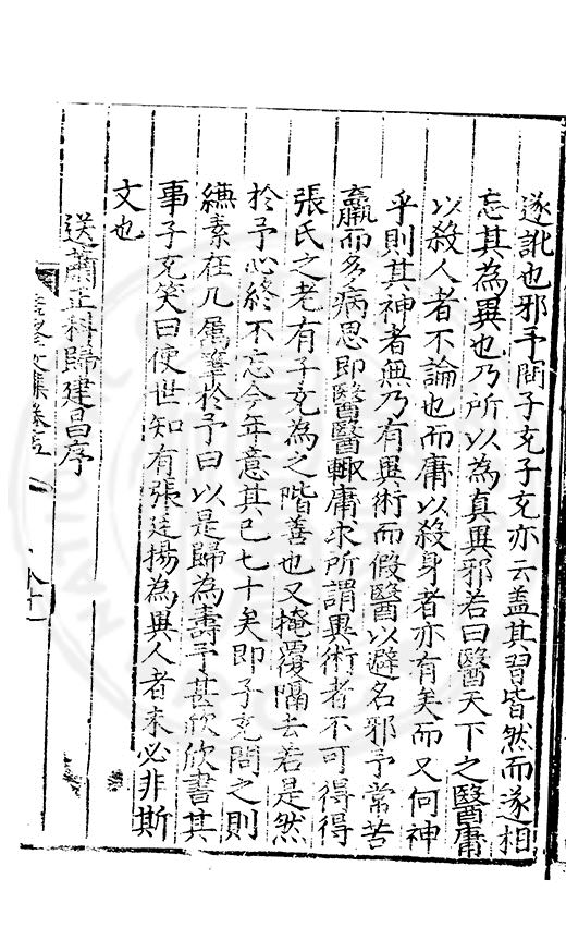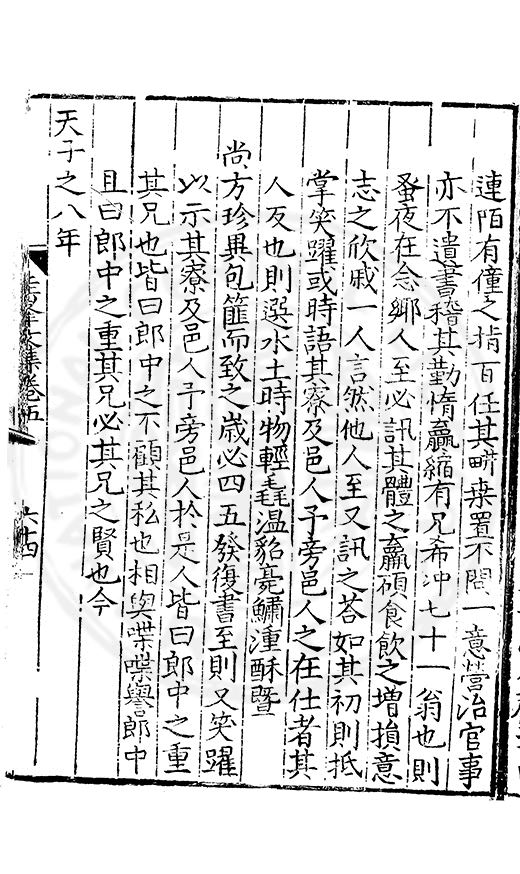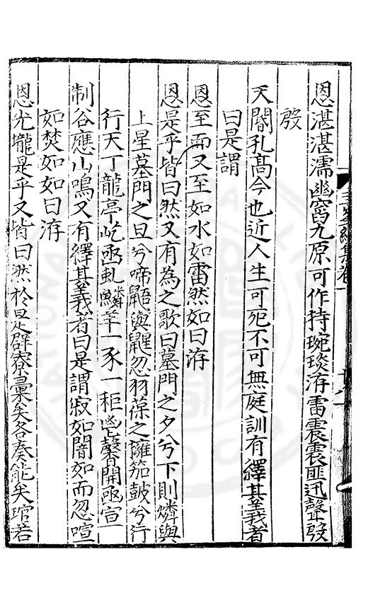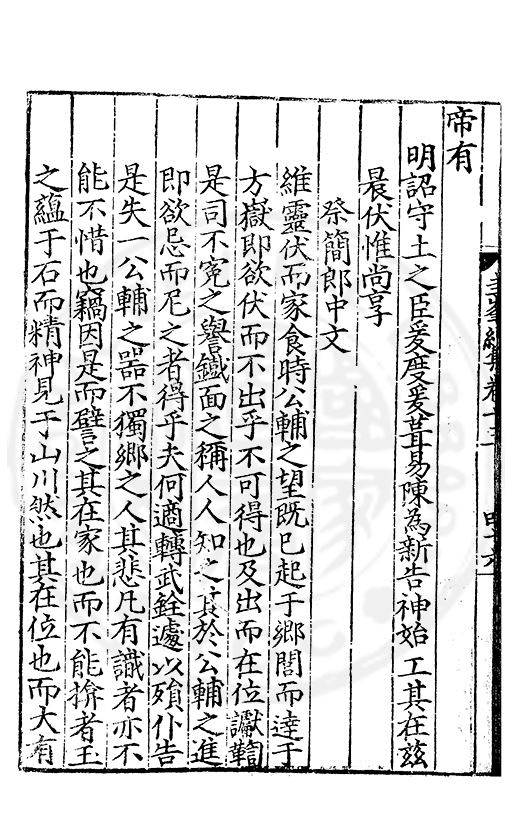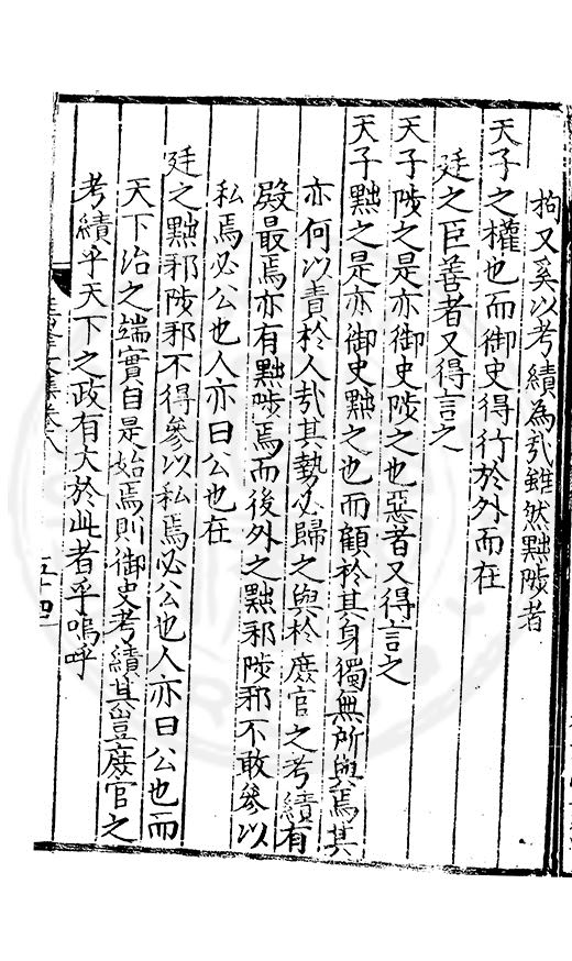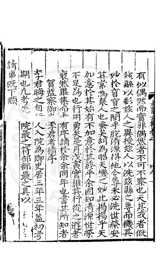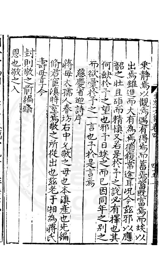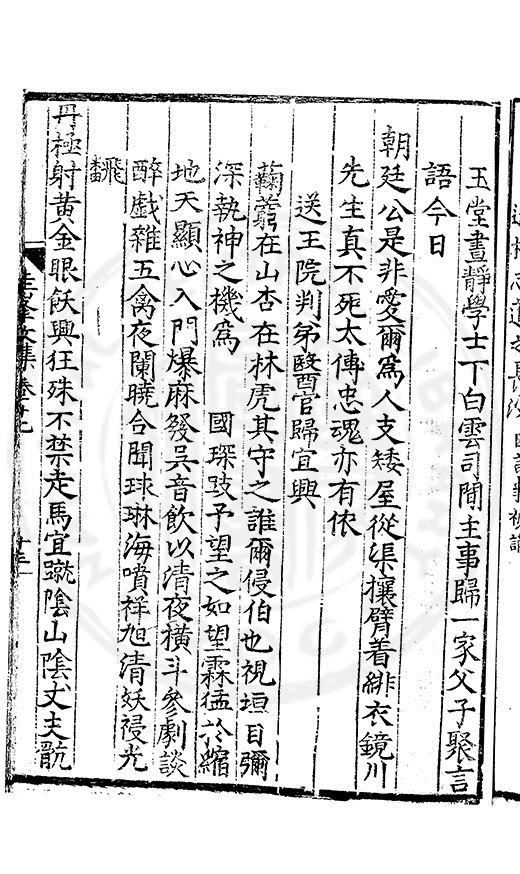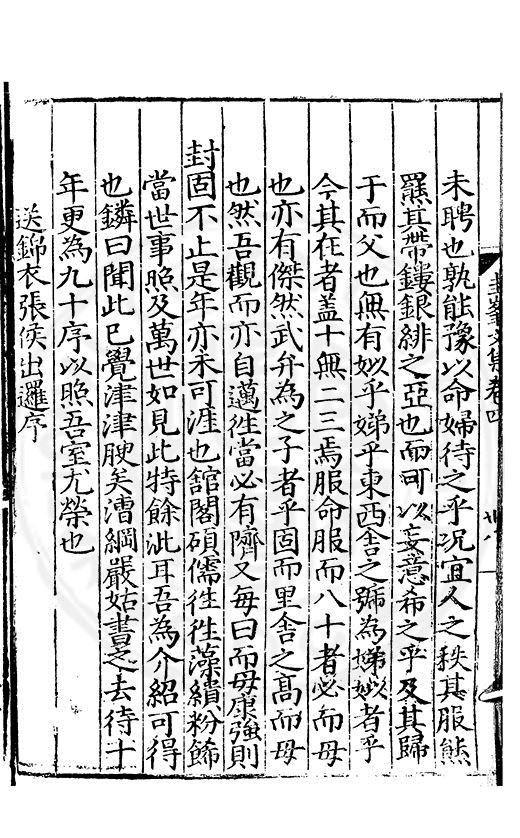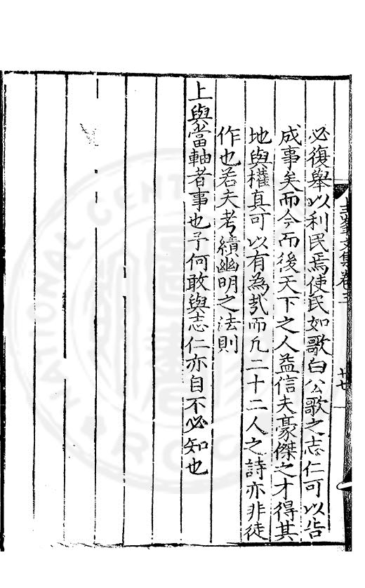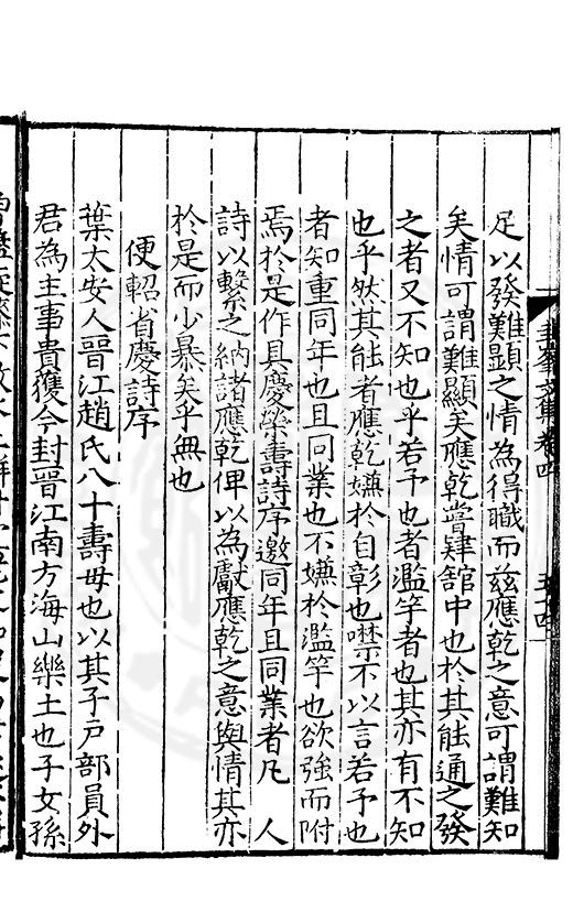 尋其脉絡則自龍門禹宂逺不可窺說者謂先生之言出左氏愚獨謂其直泝盤誥之支餘也雖然亦豈易能哉□者宋元君召畫史一史後至儃儃然獨就舘舎觧衣盤礴累日乃命筆則入神矣聞先生為文必嘔心積慮至扃戸牗或距木石隱度逾旬日或遲嵗時神生境具而後命筆稍渉扵萎陋詘誕之微雖