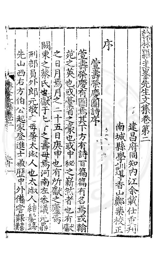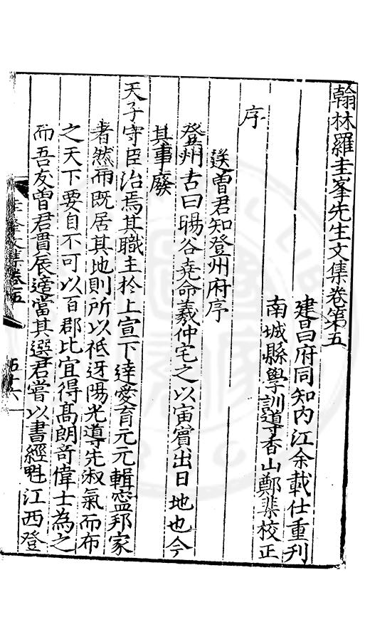 之序者圭峯之文難知也而况言之乎難言也而况言其所以爲文者乎是又天下文獻之遺也日者高吾先生撫循吾境稽逸弔古敦化右文以風士節爲治先搜致圭峯全集爰命郡丞余子行義刻于郡齋且盡發