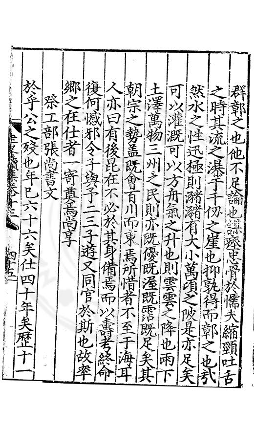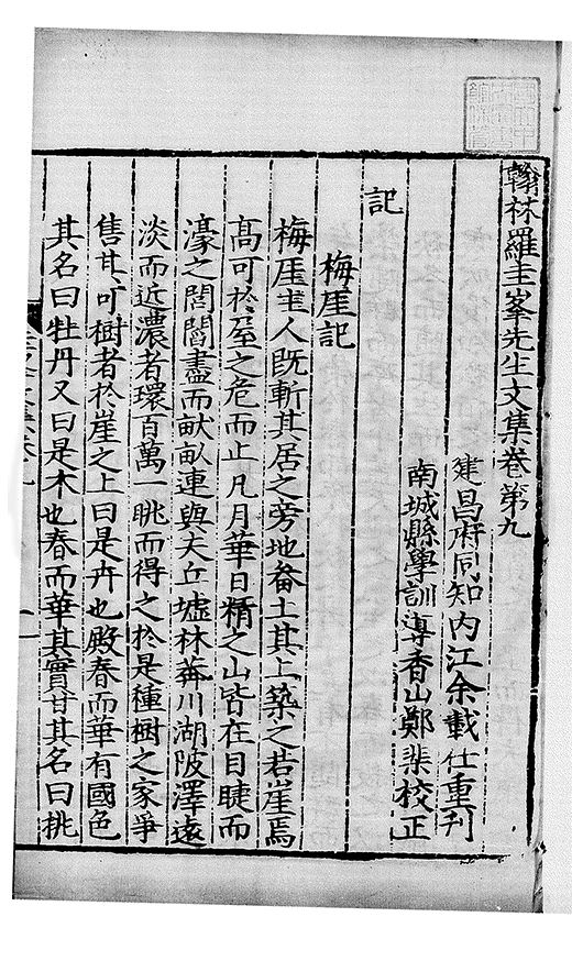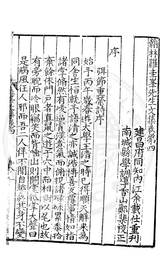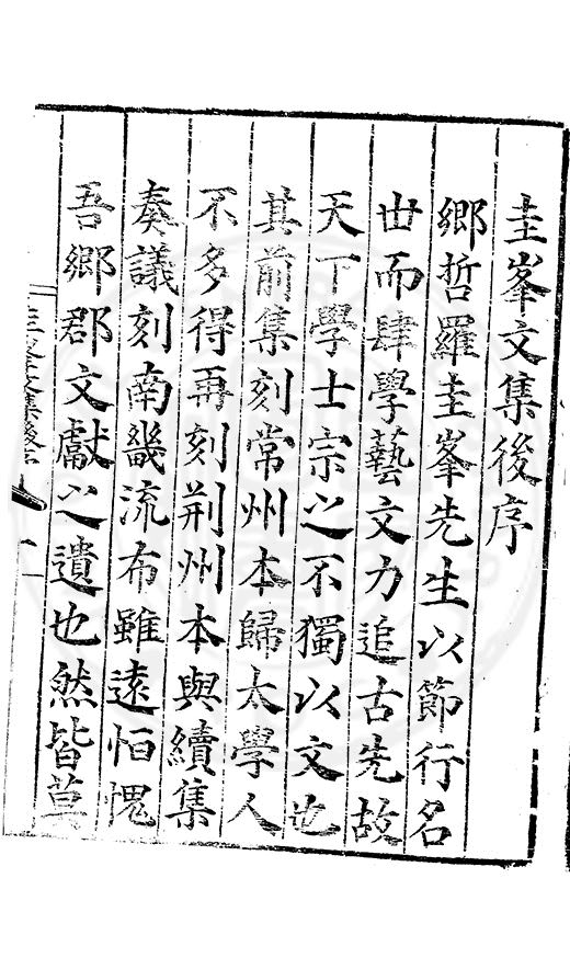 郷哲羅圭峯先生以節行名□而肆學藝文力追古先故天下學士宗之不獨以文也其前集刻常州本歸太學人不多得再刻荊州本與續集奏議刻南畿流布雖逺怕愧吾郷郡文獻之遺也然皆莫