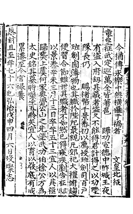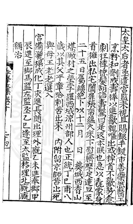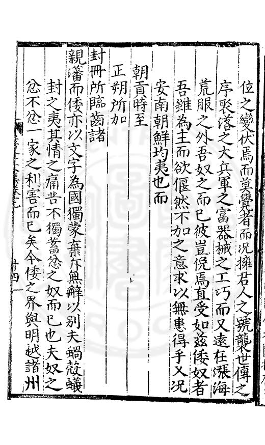日乗時觀望不忠之謀冀以感動宸衷即賜施行以慰海宇臣民之望以銷奸雄睥睨之心然後螽斯衍慶麟趾肇祥禮遣歸藩爰正主鬯臣雖譴死固其分也是後寂然不聞示諭臣料必是後宫儲祥將次弥月臣之私喜旦夕望之及今踰年更無影響徒聞大盗並興遍布天下連数拾城所過如洗運河两岸焚刼殆空前日縳殺方面明日射死將官近扵楊村剖剥叅將王昶大楊村去京城幾何而眼空如此臣謂國本不定姦雄睥睨今何如哉前月二十三日湖廣陽