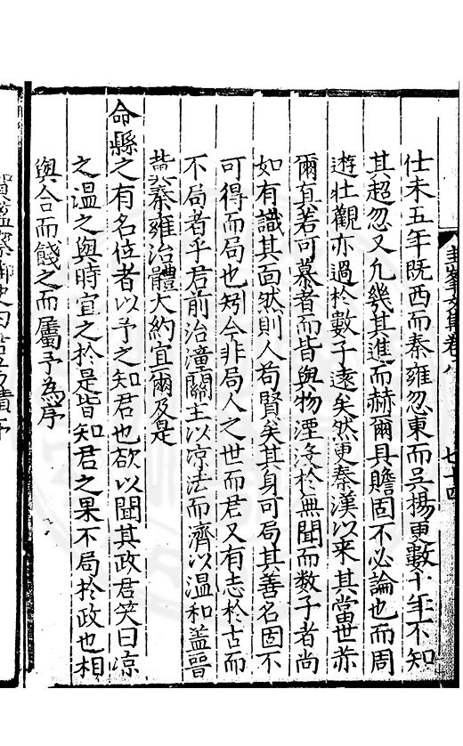 數易藁不憚人知先生之文之竒而不知由苦心中來也又可以易視乎哉舊刻本凡六卷予以為當存梓里日按旴方知爲荊本也本且遺佚郷士夫家亦罕有存焉者噫先生之文可俾其湮淪若此哉乃命郡官従其子姓復得續集二卷奏議一卷並鑱諸梓以傳郡官丐予題其首顧予學殖荒落惡能叙先生