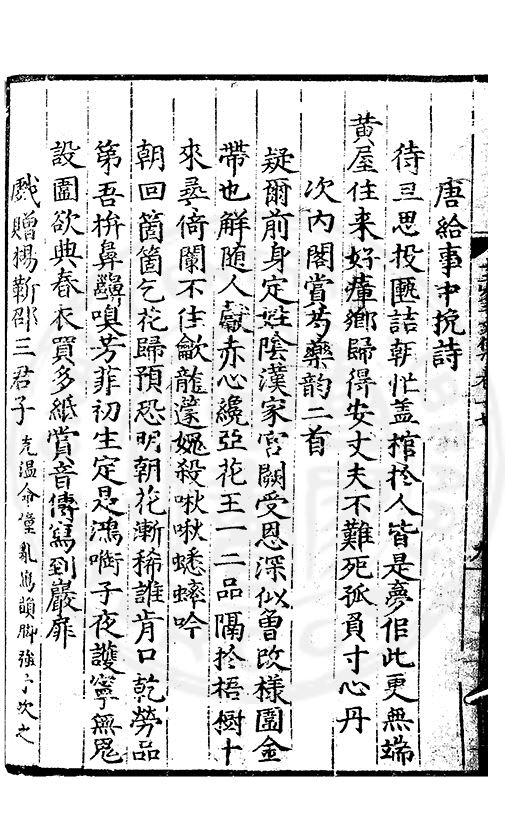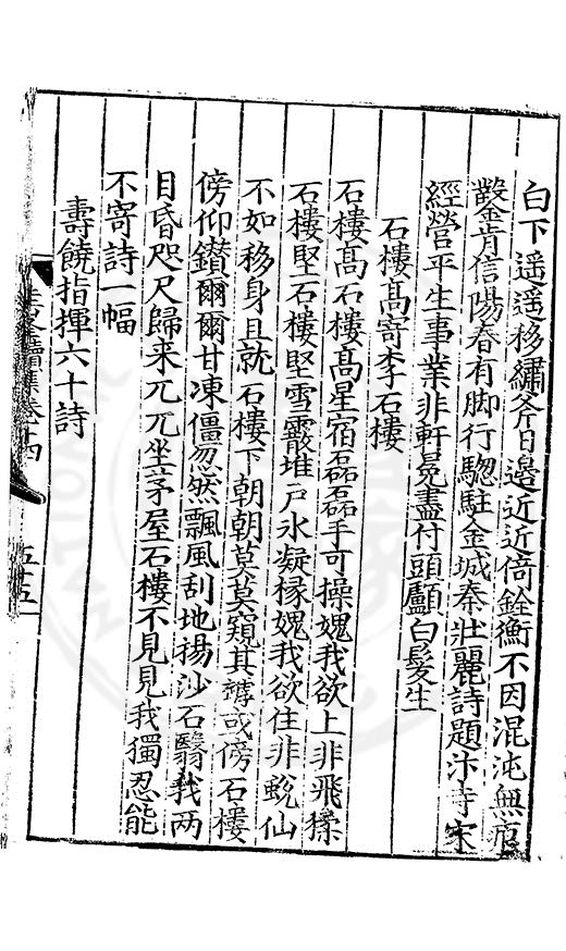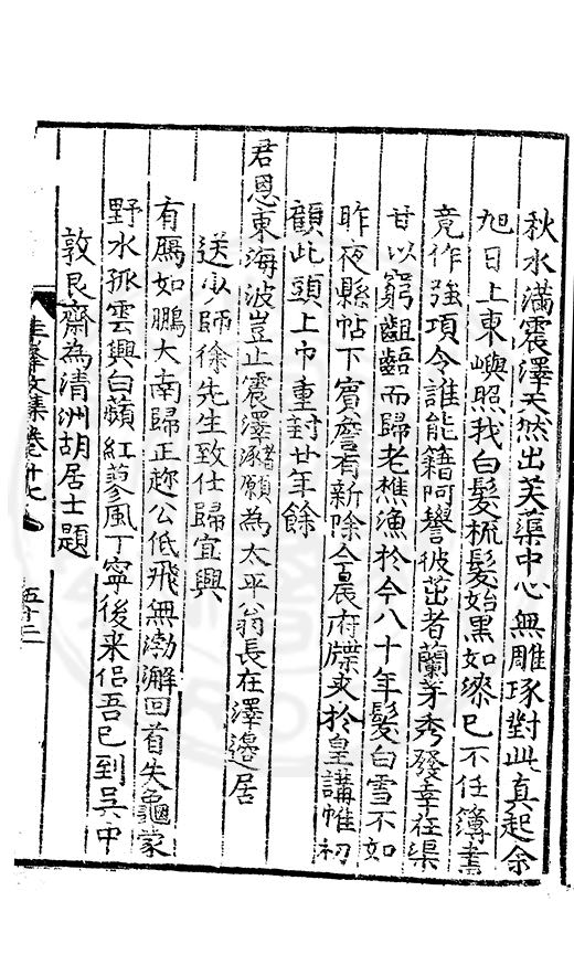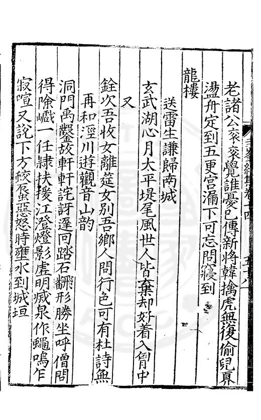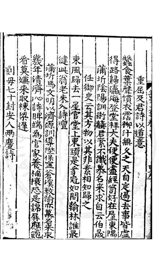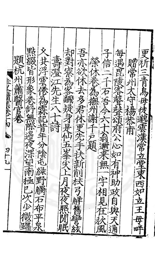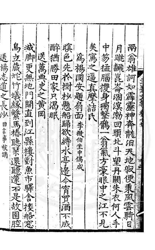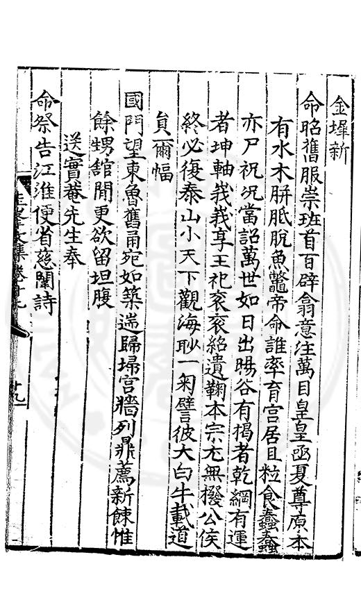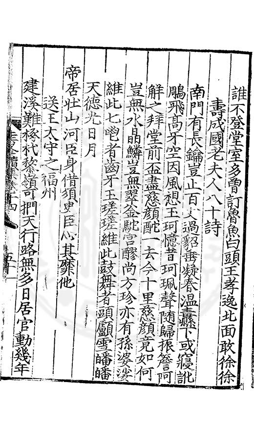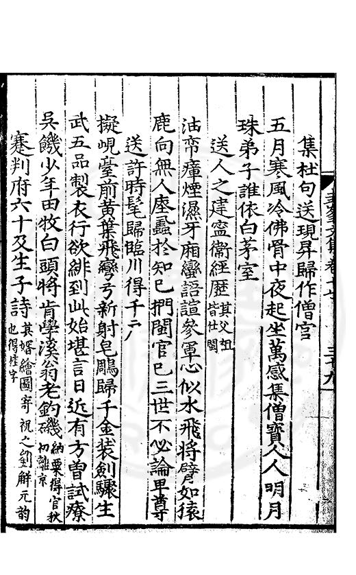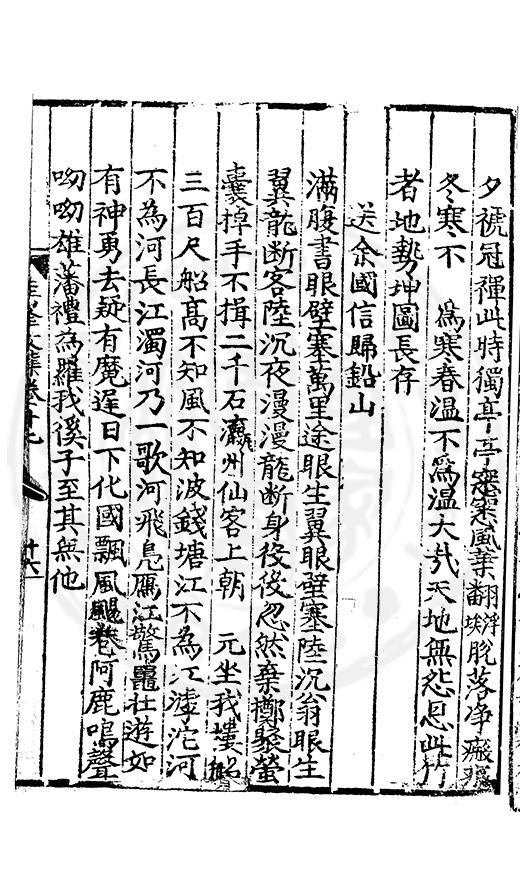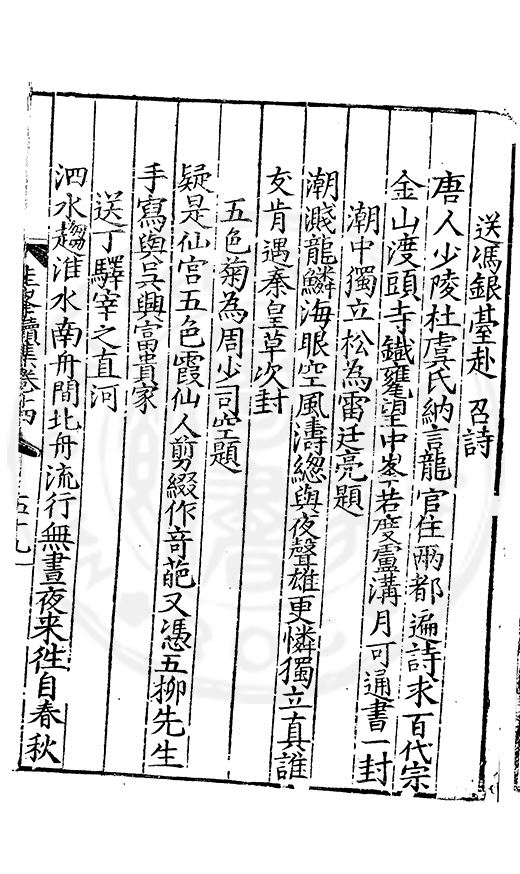 唐人少陵杜虞氏納言龍官住兩都遍詩求百代宗金山渡頭寺鐵甕望中峯若度盧溝月可通書一封