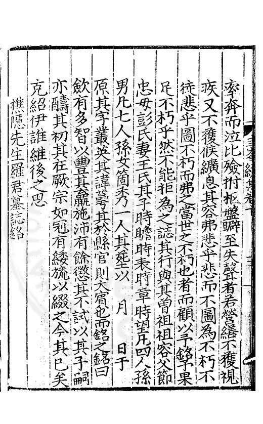 天地父毋憫臣逆旅之中瀕死之苦乞勅吏部將臣放歸田里俾正首丘或念臣先朝侍從講官未忍即棄止令臣還家養病以便醫藥萬一更生復來供職效尺寸之勞圖涓埃之報臣不勝感戴天恩之至為此昏迷中具本專差義男羅秀親齎謹具奏聞伏候勅旨