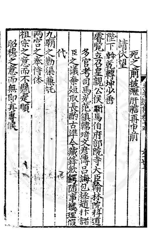死之前披瀝肝膽再申前請伏望陛下斡乾轉坤少垂睿覧立召皇親公侯駙馬伯府部院寺大臣翰林院科道多官考司馬光范鎮韓琦文彦博呂誨包拯趙抃諸臣之議棄短取長酌古凖今藏鋒歛鍔随事據理假代九廟之勤渠兼託两宫之奉侍体祖宗之意而不懸定順昭穆之意而無即真專候